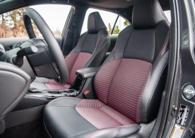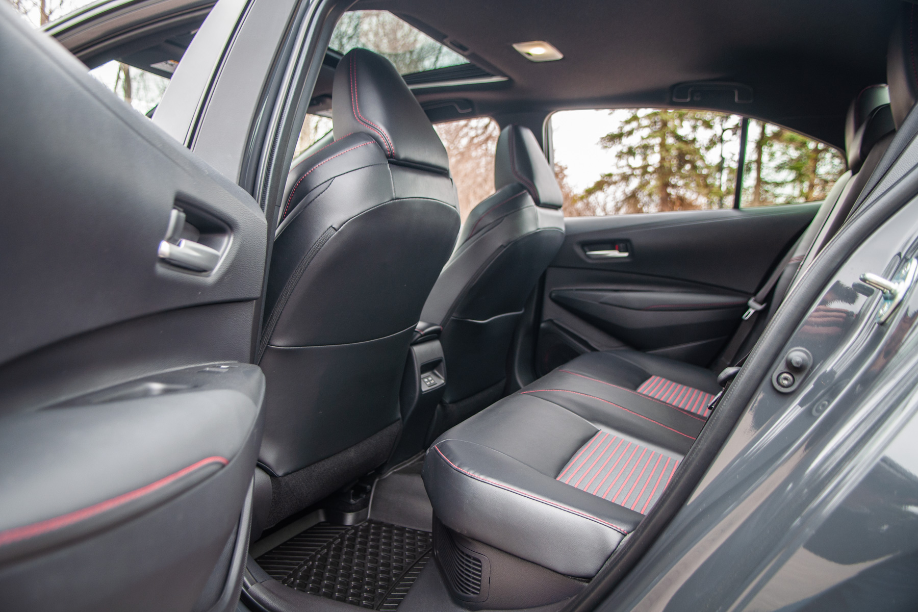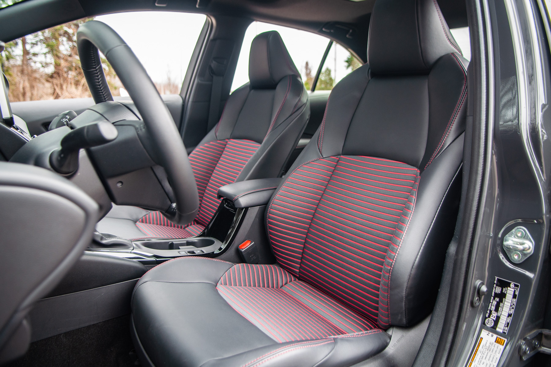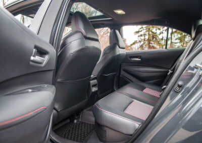 I’ll give the Corolla sedan this: it does feel quite solid and ergonomically sound inside. Materials and fit-and-finish look and feel good for the class, visibility all-around is excellent, and the so-called SofTex seats—read: pleather—actually look and feel nice. The upsized 10.5-inch touchscreen is a so-so upgrade; the added digital real estate means bigger and clearer icons and text on-screen, but the twisty volume knob is swapped out for a trio of buttons. Oh, and while I’m complaining, some more centre console storage would be nice.