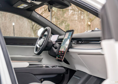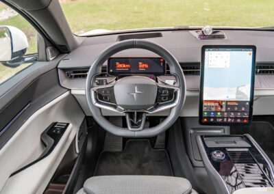 The cabin borrows a lot of DNA from Volvo’s new and newly minimalistic design ethos, as seen on vehicles like the EX90 and EX30. Unlike them, there is a distinct focus on fulfilling its mission statement of being “the SUV that drives like a sports car” with it’s low-slung greenhouse. Being that it’s priced and positioned roughly alongside the Porsche Macan Electric and BMW’s updated iX, there’s a keen focus on top-shelf style and decadent materials. It feels right at home among a tough crowd. Everything looks fantastic and feels excellent.