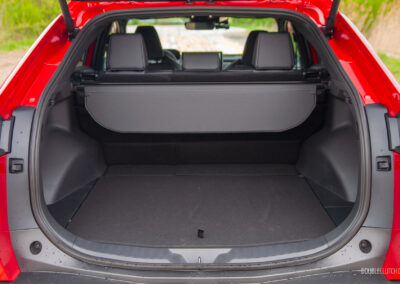 Further down, Toyota reworked the centre console to include two very large wireless charging pads, their new centre console cubby lid that opens from the driver and passenger side—and best of all, did away with almost all of the gloss black trim. Fit-and-finish feels solid, the overall layout is intuitive enough, there’s plenty of space regardless of where you sit, and the design doesn’t come across as needlessly futuristic for the sake of being needlessly futuristic. If we had to nitpick, Toyota’s material choices probably won’t blow you away as they would in, say, a Crown Signia, and the bZ still lacks a proper glove box. But by and large, these little updates go a long way to improve day-to-day livability. Did we mention there’s less gloss black trim?!