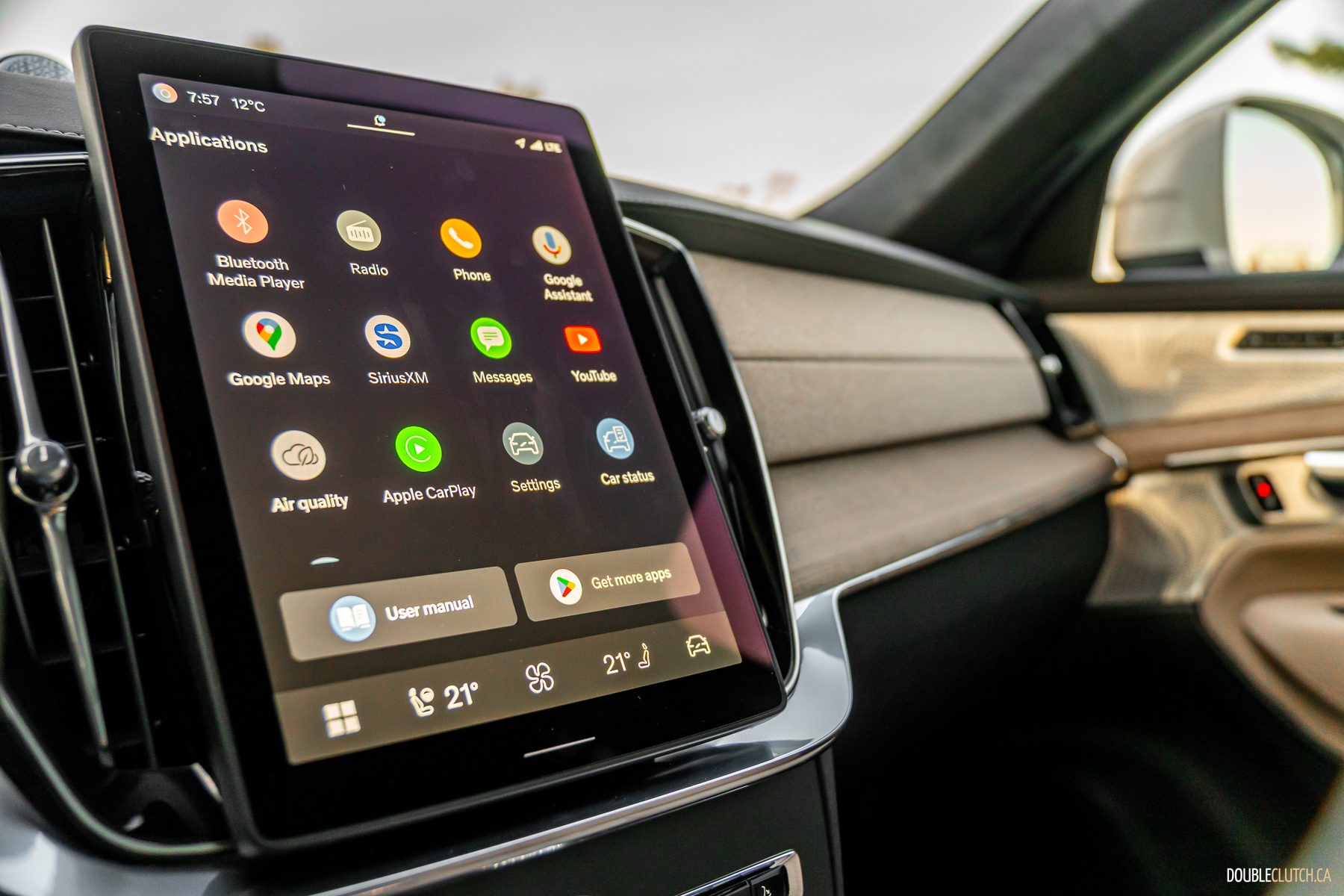 A much more obvious change is the large 11.2-inch central touchscreen. It very subtly floats over the dashboard, almost as if it’s spilling out of the old eight-inch screen’s opening. Said new screen is running the same Android Automotive software deployed in the newest Volvo and Polestar vehicles. It’s dominated by a thoughtfully laid-out home screen prominently featuring Google Maps, as well as smaller tiles for media, phone connectivity, and context-sensitive shortcuts that change with use.