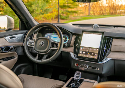 Combined output is 455 horsepower and 523 pound-feet of torque. It’s more than enough to make this XC90 properly quick, enabling it to sprint from rest to 100 km/h in five seconds. More than that, by a having a powertrain with completely separated combustion and electric propulsion, it truly provides a best-of-both-worlds experience. Power delivery is instantaneous and impeccably smooth like an electric vehicle, with the added shove and range-increasing backup plan that is the fuel-fired engine when needed.