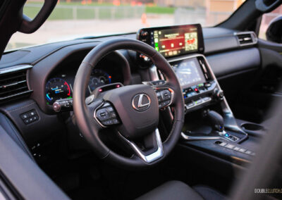 Powering this 6,200-pound chariot is a 3.4-litre twin-turbocharged V6 making 409 horsepower and 479 pound-feet of torque. It’s similar to what you would find in the GX 550, as well as the Toyota Tundra and Sequoia siblings. New for 2025 is the addition of a hybrid system; a single electric motor and a nickel metal-hydride battery pack bumps output to a combined 457 hp and 538 lb-ft of torque. That is sent to all four wheels via an extremely smooth-shifting 10-speed automatic transmission. Similar to its siblings, the hybrid powertrain here isn’t meant to maximize fuel economy, but rather performance while cementing the LX as the top dog in the Lexus sport-ute lineup. With a quoted 6.4-second sprint from zero to 100km/h, the LX 700h pulls effortlessly like a Japanese bullet train.