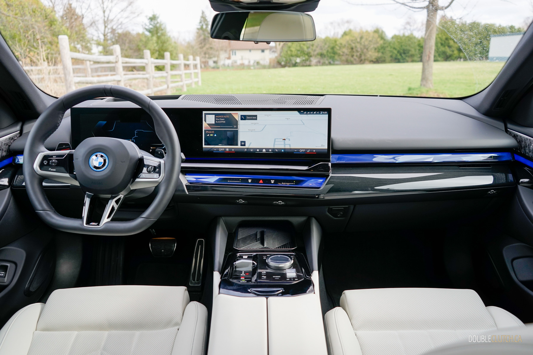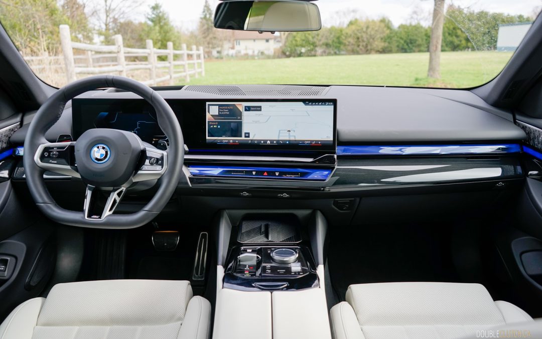 Interior view showing the dashboard design and layout on a 2025 BMW 550e