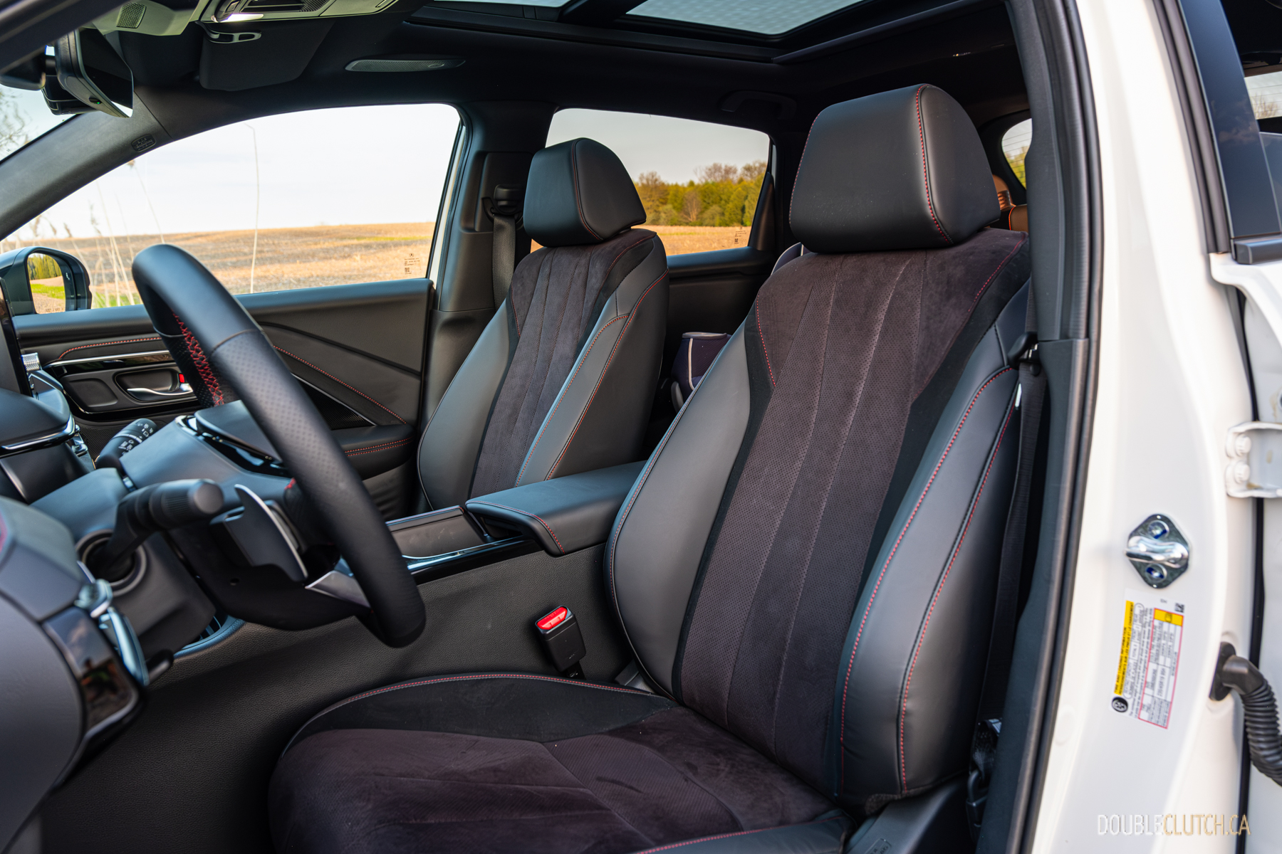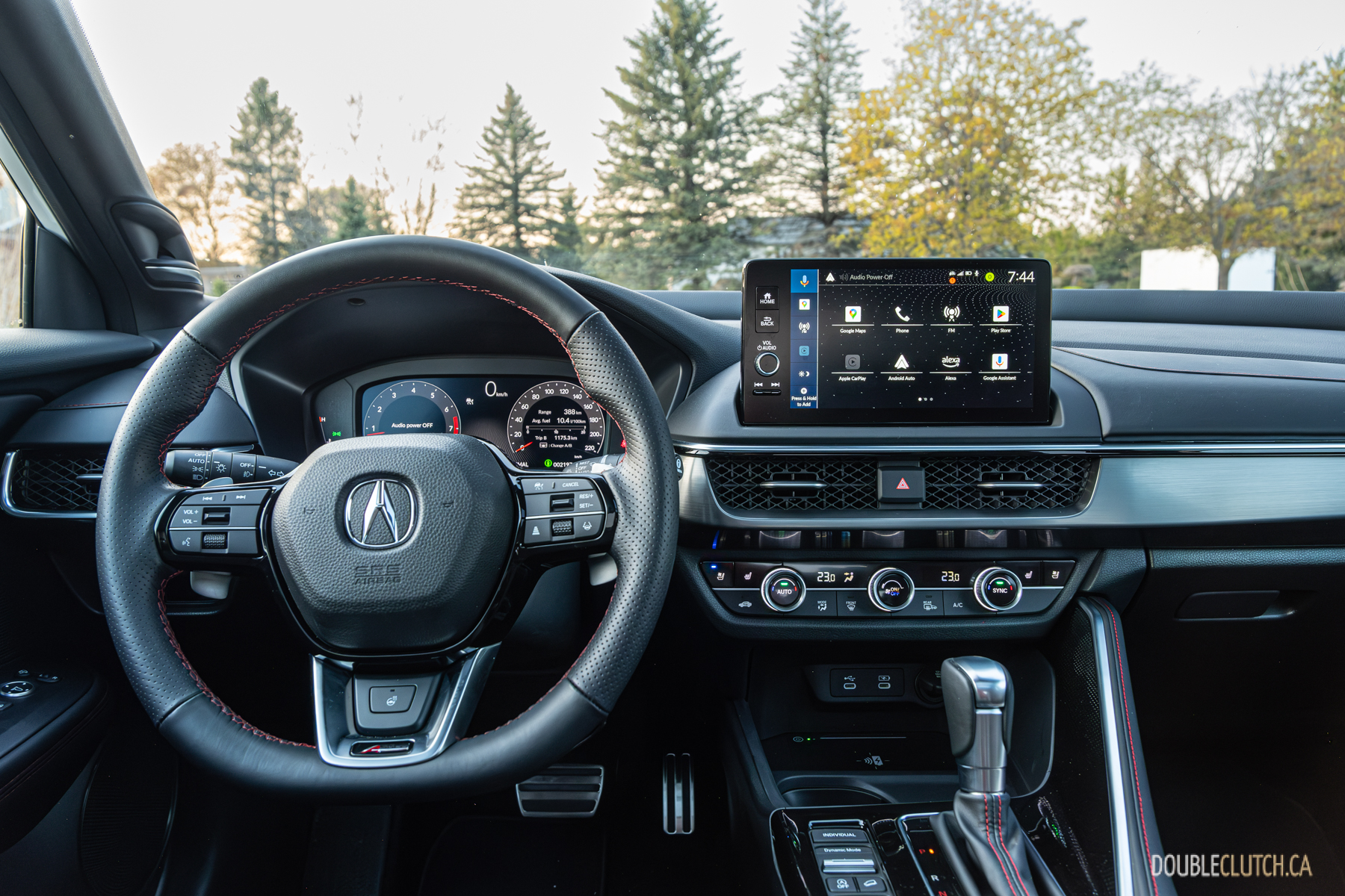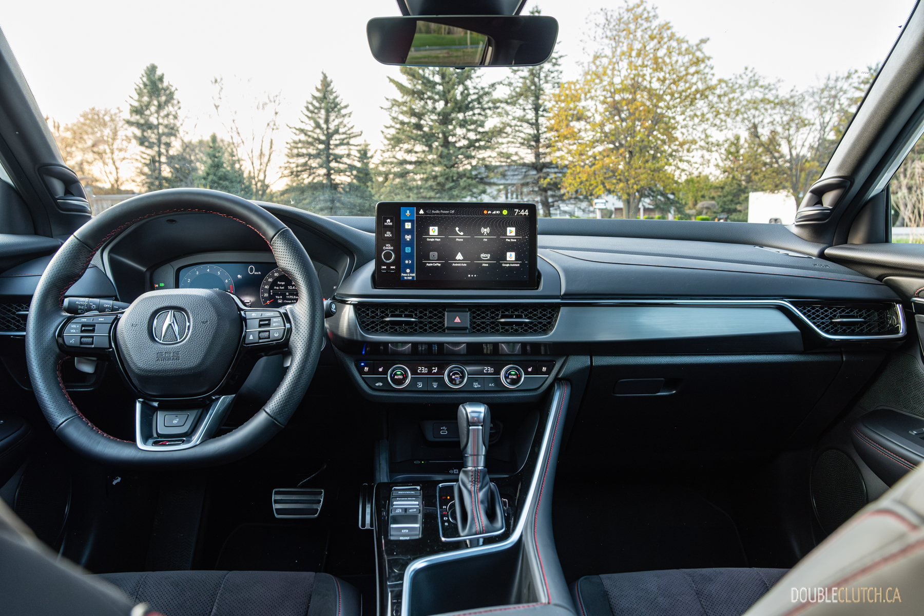 Like other, more junior models in the lineup, the 2025 ADX’s interior is more Honda than Acura. It borrows essentially the entire cabin from its Honda stablemate, changes up a few panels and trim pieces here and there, and replaces the H on the steering wheel with an A. This isn’t inherently a bad thing, because Honda’s interiors have been punching in well above their weight lately. They’re good-looking, materials and build quality are excellent, and their logical layouts and generous amount of physical controls makes the ADX very easy to live with. The seats are finished in a grippy ultrasuede on A-Spec trims, which both looks and feels good. If I had to nitpick, the all-black cabin could use some additional brightening outside of some red stitching and two lone strips of white ambient lighting that can’t be customized, and there’s a fair amount of scratchy plastics lower in the cabin, but they’re mostly inconspicuous.