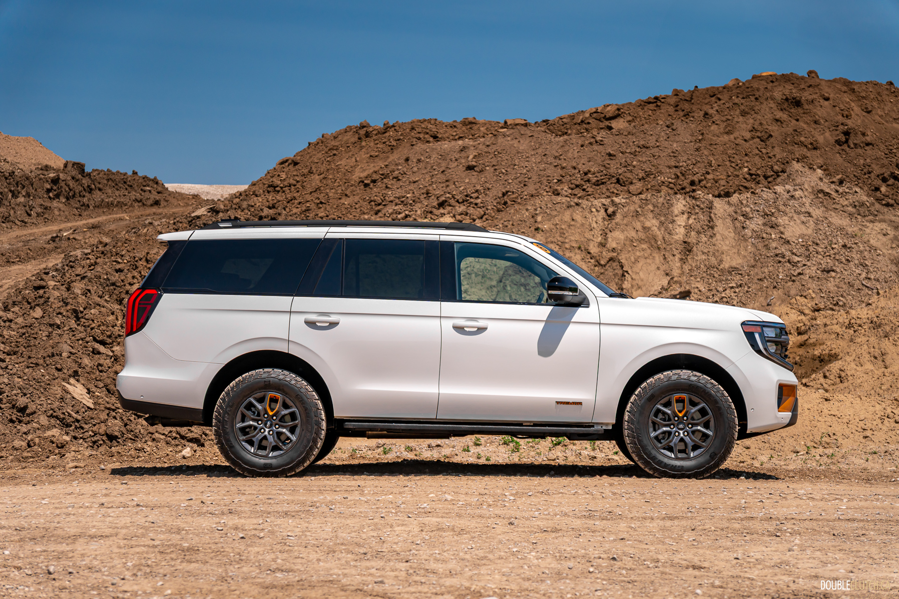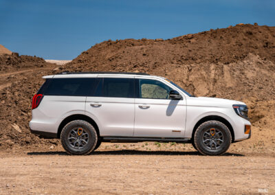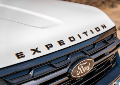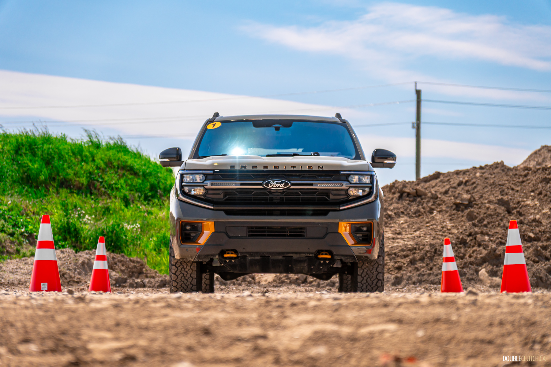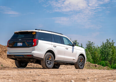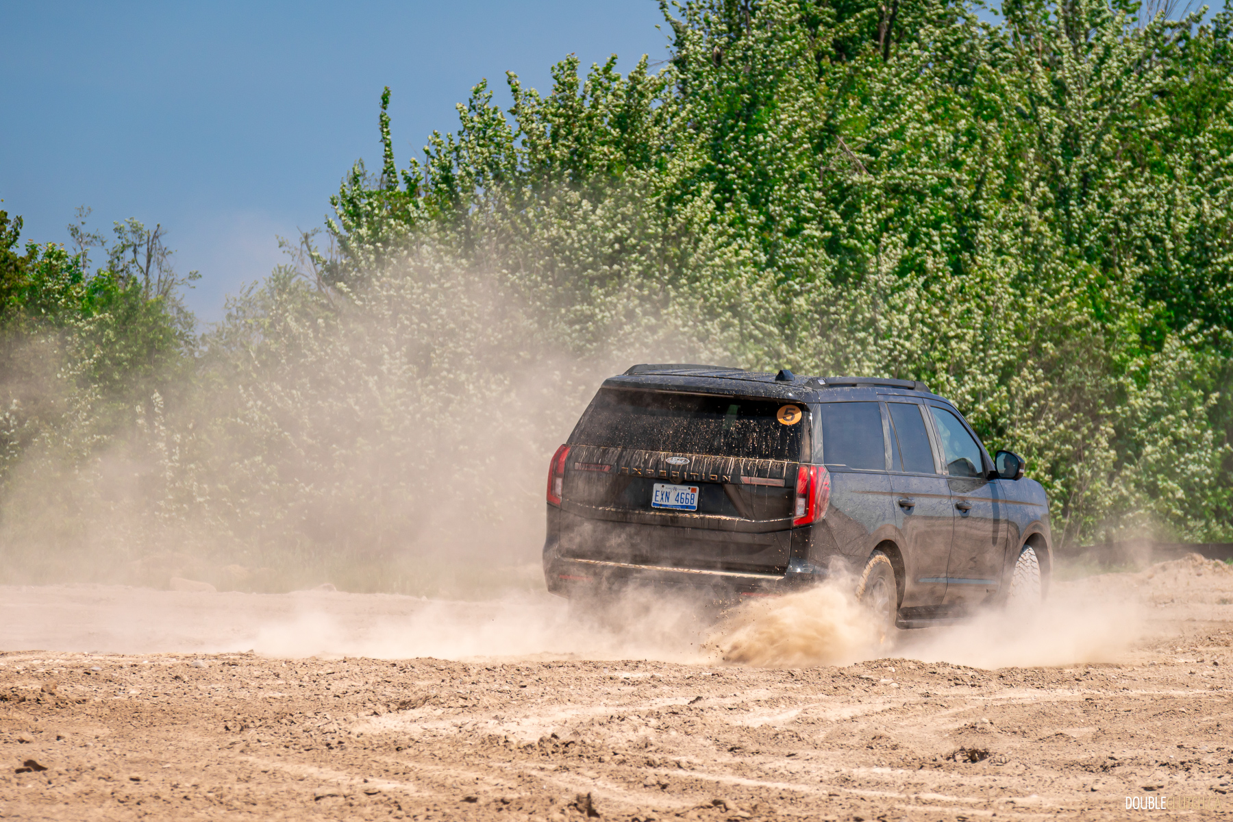 Also new for 2025 is the Expedition Tremor, a new and much-demanded off-road-centric trim level. In keeping with other Tremor models, it receives orange accents inside and out, 33-inch General Grabber all-terrain tires, unique suspension tuning with 10.6 inches of ground clearance, revised front and rear bumpers with heavy-duty extraction hooks and better approach and departure angles, a 3.73 rear axle ratio with an electronic locker, and lots of skid plates to protect vitals — which definitely got used and abused on Ford’s off-road test course. Suffice to say, not much will be able to stop an Expedition Tremor.