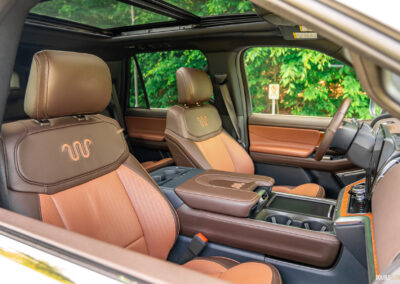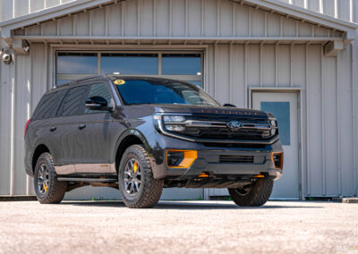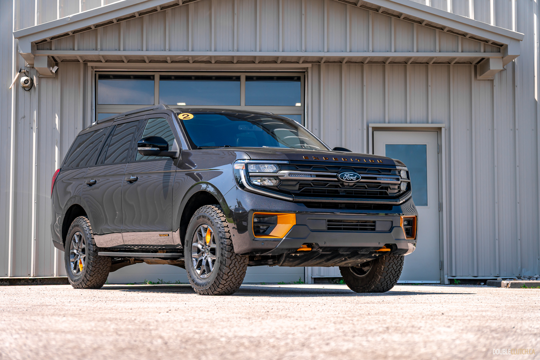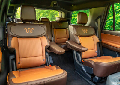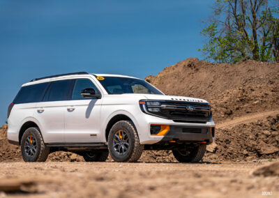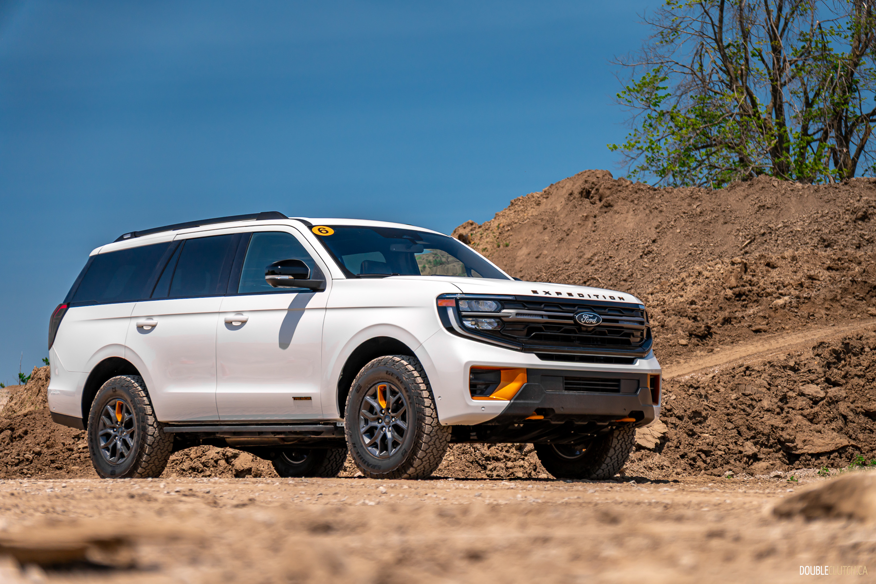 Also new for 2025 is the Expedition Tremor, a new and much-demanded off-road-centric trim level. In keeping with other Tremor models, it receives orange accents inside and out, 33-inch General Grabber all-terrain tires, unique suspension tuning with 10.6 inches of ground clearance, revised front and rear bumpers with heavy-duty extraction hooks and better approach and departure angles, a 3.73 rear axle ratio with an electronic locker, and lots of skid plates to protect vitals — which definitely got used and abused on Ford’s off-road test course. Suffice to say, not much will be able to stop an Expedition Tremor.