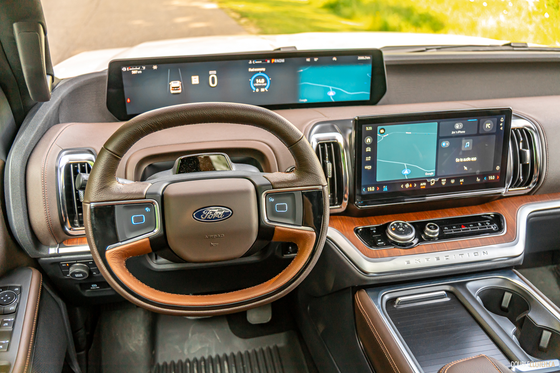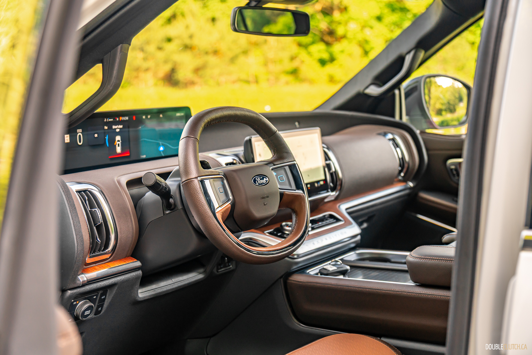 The only engine available with the 2025 Expedition is Ford’s venerable 3.5L EcoBoost V6. Bt’s offered in standard and high-output levels of tune, with 400 horsepower and 440 pound-feet of torque, or 440 hp and 510 lb-ft, respectively. Ford’s 10-speed automatic transmission has been updated to provide smoother shifts and more consistent behaviour. Throughout our long drive through cottage country, I’m happy to report that if it wasn’t pointed out to me, I wouldn’t have noticed it working, and I mean that in the best way. It’s slick.