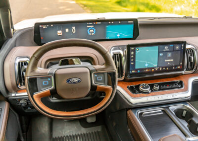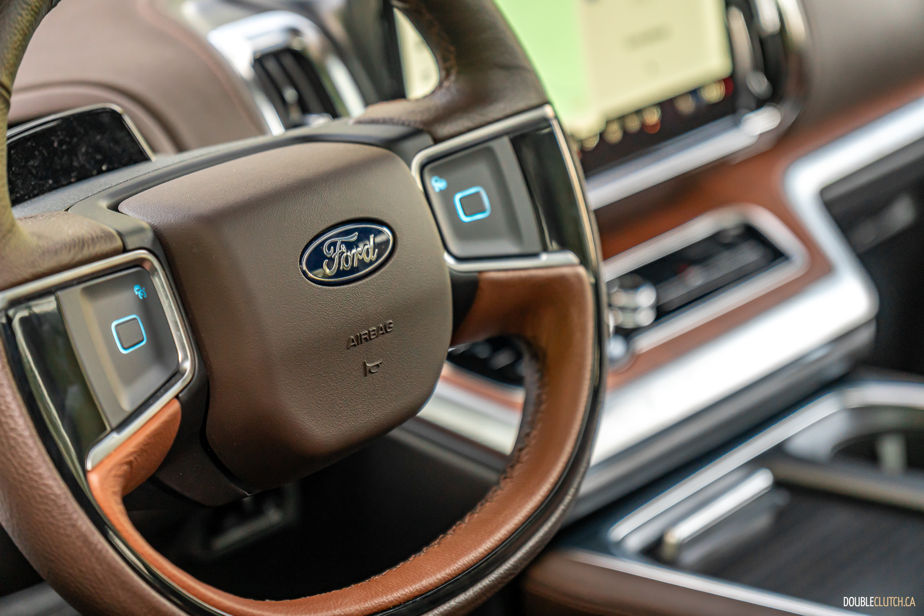 The centre display is a 13.2-inch touchscreen powered by Ford’s Sync 4 software. It’s the same as what we liked so much in the updated Explorer, and it works just as well here. Its core functions and shortcuts are easy to use core functions and shortcuts, it’s snappy, and it seamlessly integrates into the gauge cluster screen. I was worried it would be too much tech-for-tech’s sake, but it actually makes a lot of sense and feels less screen-centric than the massive portrait in the outgoing Expedition.