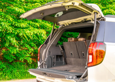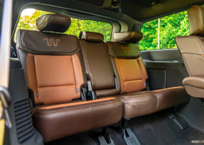 A key convenience feature new to the 2025 Expedition, and indeed new to the class, is a split-folding tailgate. It’s proudly accentuated by being painted black; the jury is still out on whether or not we actually like the look, but it’s a distinct practical advantage by helping facilitate easier loading of cargo. It’s kind of surprising that Toyota, Stellantis, and General Motors haven’t caught on to this. Ford was keen to highlight that the lower portion of the tailgate can support 500 pounds, is flanked by several power ports, and is augmented by an optional flip-up seat that also doubles as a table.