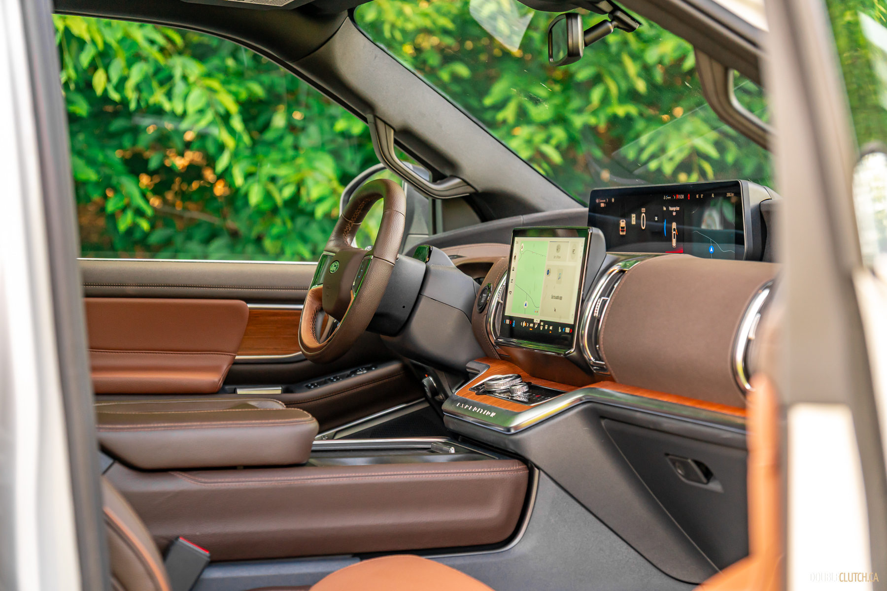 The gauge cluster is replaced with a 24-inch widescreen incorporating Google Maps and a configurable widget that shows pretty much whatever you want, be it fuel economy, weather, media, auxiliary gauges, and more. It’s parked right under the windshield to put everything in a clear line of sight with the road; this is also why the steering wheel is squared off, to promote visibility. Admittedly. it never stopped looking awkward to my eyes, but it felt natural pretty quickly, and the context-sensitive touch controls are more user-friendly than you’d expect.