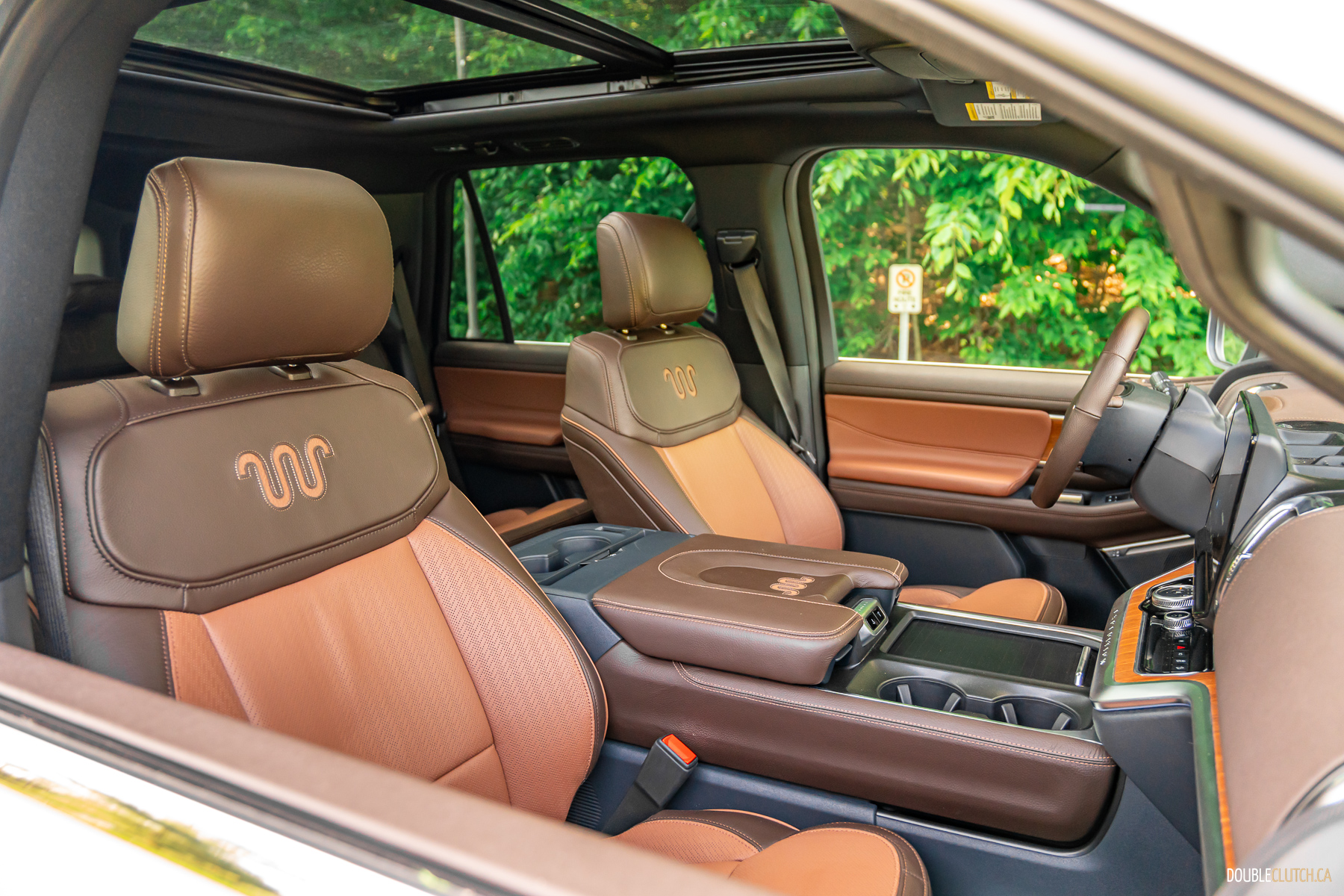 Despite being more comfortable than before, the 2025 Ford Expedition now has a max towing capacity of 9,600 pounds, up 300 from the previous truck. Ford’s own research indicates people actually use their Expeditions for towing, and typically lug around 7,000 pounds — think a boat, camper, or horse trailer. To that end, Ford has gone to some length to make towing easier than ever. “Flatter novices and reward veterans,” as they say. To that end, the hitch cover is easier to remove than before, and it’s easier than ever to load a trailer without levelling bars. Ford’s trick reverse tech from the F-Series trucks is standard as well, taking out a lot of the challenges with backing up a boat. Canadian-spec Expeditions also come standard with the heavy-duty tow package, regardless of the engine or trim.