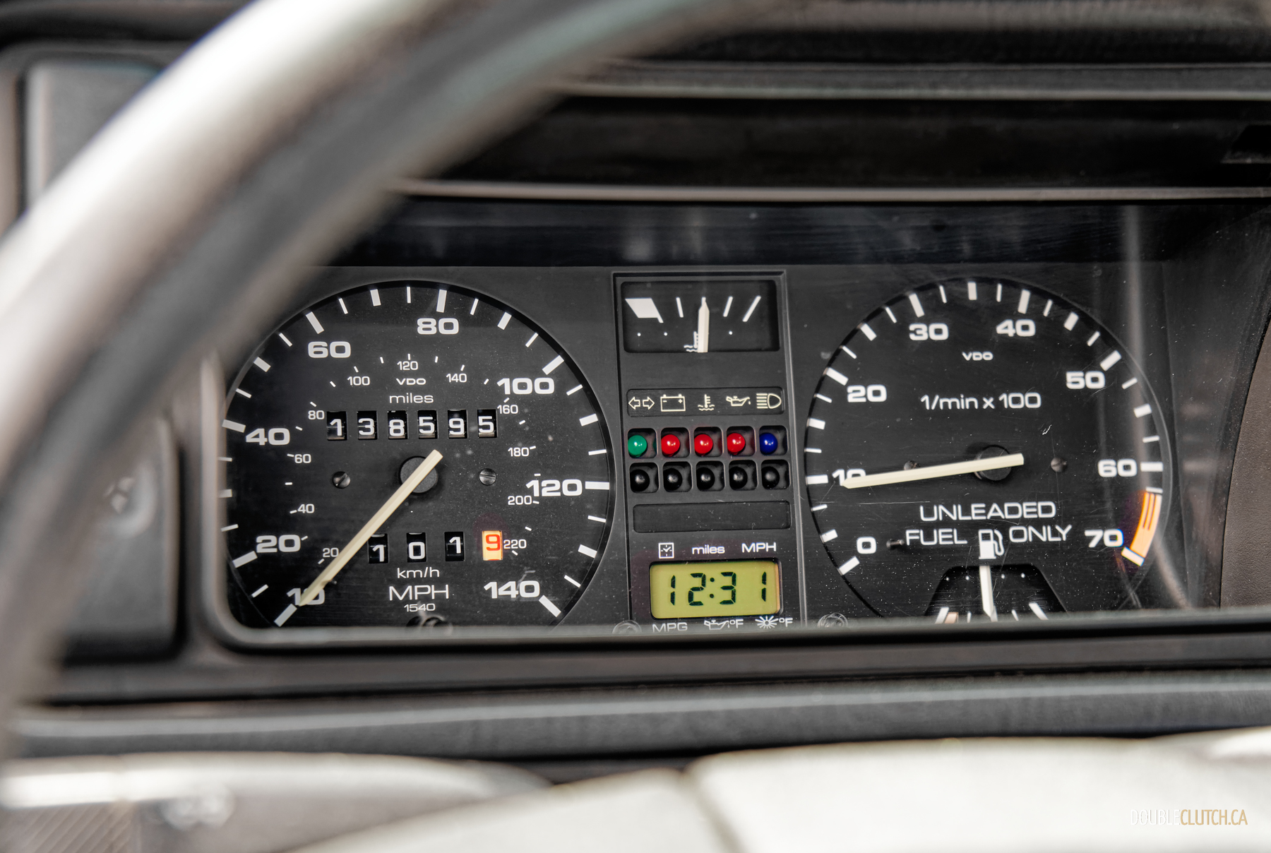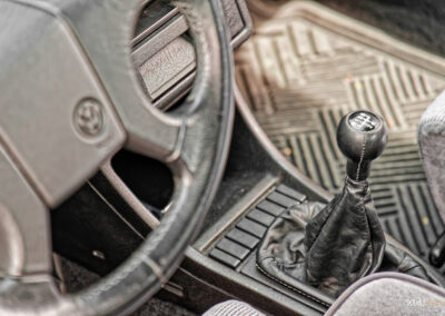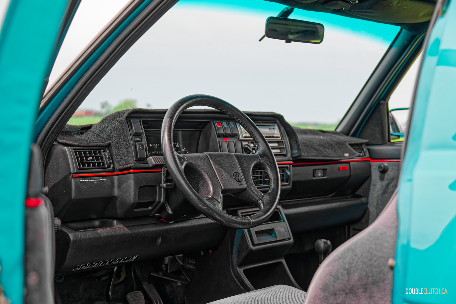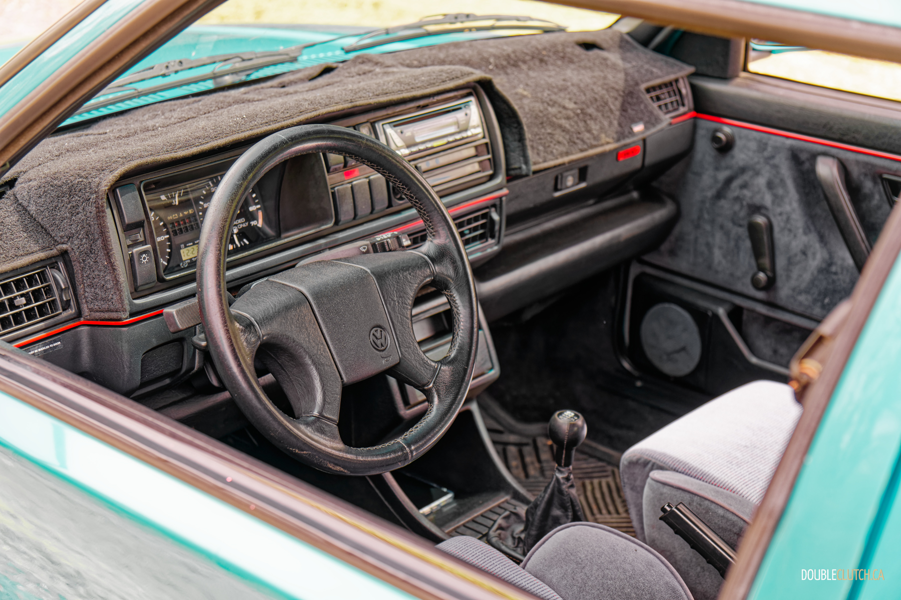 This MK2 GTI is a touchy-feely thing. All the touches feel as though they’re imbued with an intrinsic rightness. Everything is direct, light, intuitive, and immediately digestible. The feel through the thin vinyl steering wheel is organic, with an eager on-center feel that begs you to chuck it through a corner. The throttle response is similarly crisp, the shifter is light and long in its travel but not awkwardly so, the clutch is easy to read, and the brake response is a touch on the overboosted side but reassuring nonetheless.