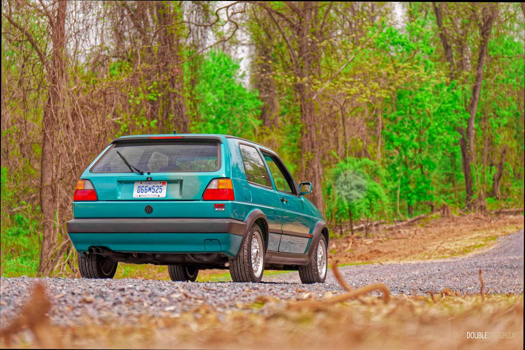 SOMEWHERE IN W.V. – I’m not sure exactly where I was, but it was some winding rural road in West Virginia on a beautiful spring day. I had just flicked this lovely 1992 Volkswagen GTI over a crest around a fast left-hander. I had my foot to the floor, winding up the high-strung 16-valve engine and slotting it into fourth gear. I was beaming, laughing, overjoyed, and barely doing highway speeds. I was having the best time I’ve had piloting a car in a long time—which is important, because just 45 minutes prior to this moment, I was in a new Golf R with triple the power of this old GTI, going full-tilt around Summit Point’s Raceway’s fast Jefferson Circuit.