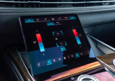 Luxury means technology in the Escalde. It leans rather heavily on tech to deliver on the luxury experience for anyone inside. Powered running boards greet you, and Rolls Royce-style doors that open and close automatically come at all four corners. Once you’re seated up front, you’re treated to a 55-inch end-to-end screen up front, along with dual monitors for the second-row captain’s chairs. I’m not big on the screen. It’s clearly split two-thirds of the way through, and the look in general is becoming a bit too common industry-wide. The gauge cluster graphics are rather dated and uninspired, too. There’s also a secondary control screen in the center console for HVAC and other controls within the car, the coolest being the ability to swipe to open any of the doors.