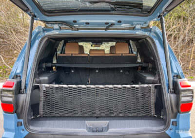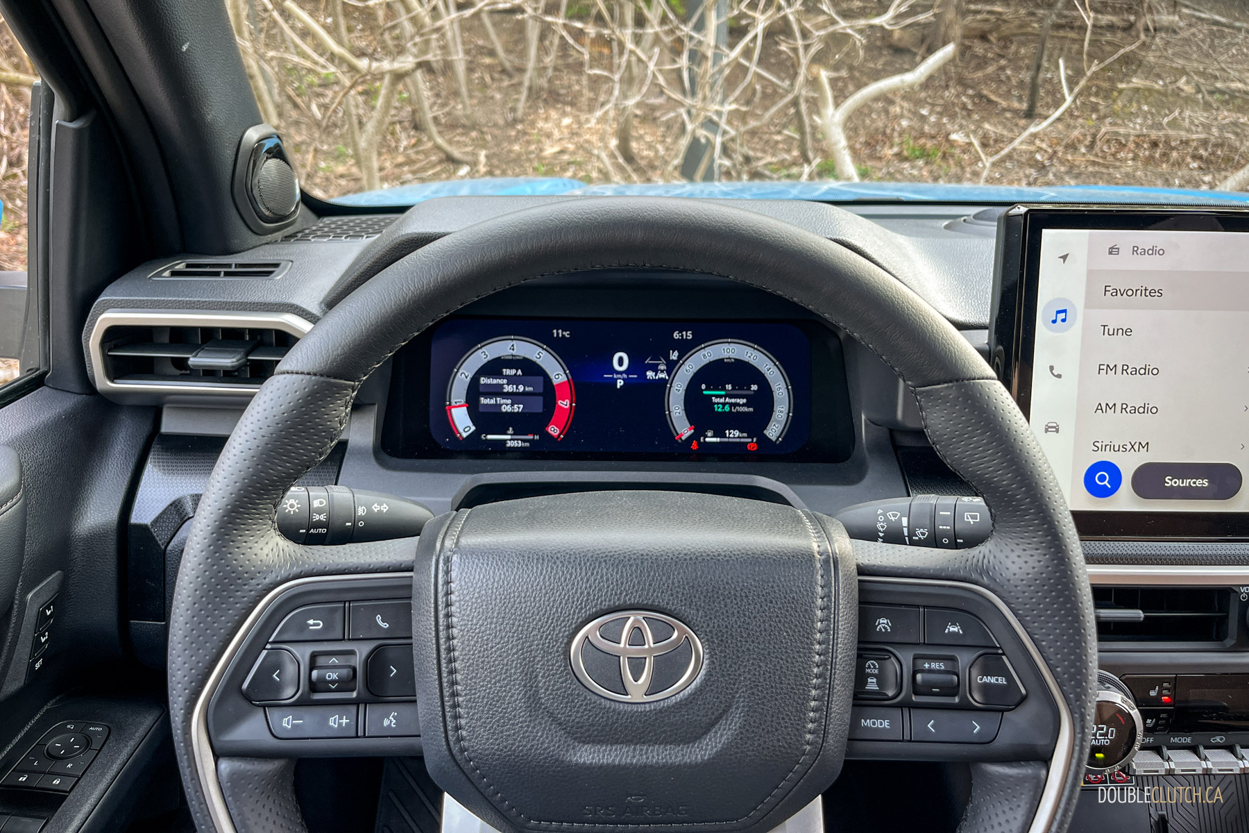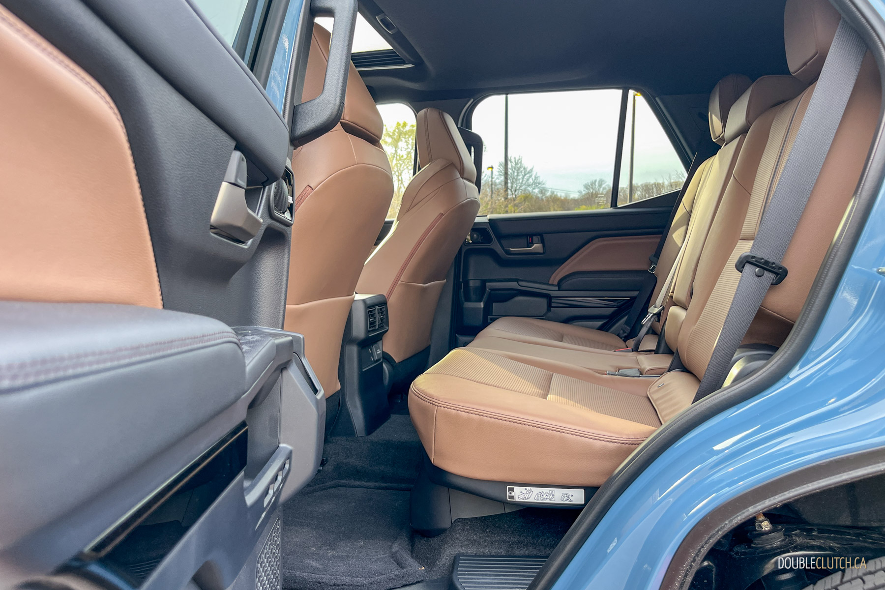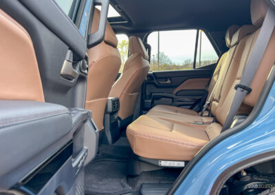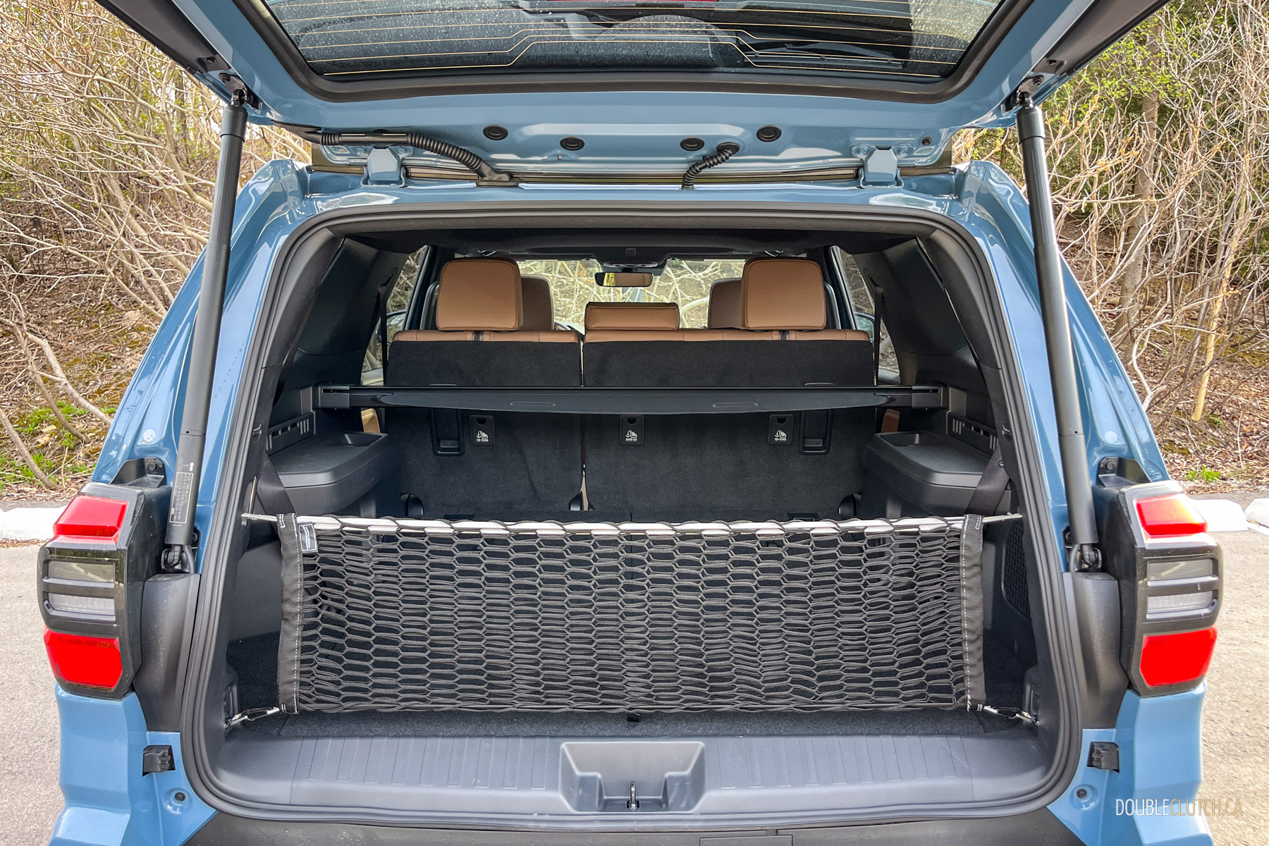 The biggest area of improvement inside the new 4Runner is infotainment. Losing the analog gauge cluster stings a bit, but the 12-inch digital instrument cluster is easy to read, highly configurable, and works with an equally fresh-for-the-4Runner 14-inch touchscreen display. This setup isn’t anything we haven’t seen before — Toyota more or less uses this interface everywhere else in the lineup, save for the GR86 and Supra — but it works well and modernizes the space quite a bit. Elsewhere inside, there’s plenty of headroom and legroom in the first and second rows, though we wouldn’t spend too much time in the optional third row. Cargo space ranges from 343 litres with the third row up to 2,381 with everything stowed, though the floor’s still quite high. If you’re loading heavier junk into the 4Runner’s trunk, lift with your legs.