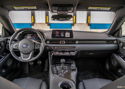 Inside, the 2025 Supra was a mixed bag for me. With a mix of soft-touch surfaces, black leather, carbon fibre trim, and white stitching, it wasn’t much to really get excited about, especially compared to the Z4. In fact, the BMW influence is very strong here: the infotainment interface and most, if not all buttons and switchgear are all BMW. But it all works well, and though the infotainment is a few generations behind and the 8.8-inch display is small for today’s standards, it’s still quite easy to navigate. The gauge cluster is unique to the Supra; unlike the all-digital display in the Z4, the Supra’s is slightly smaller and laid-out differently.