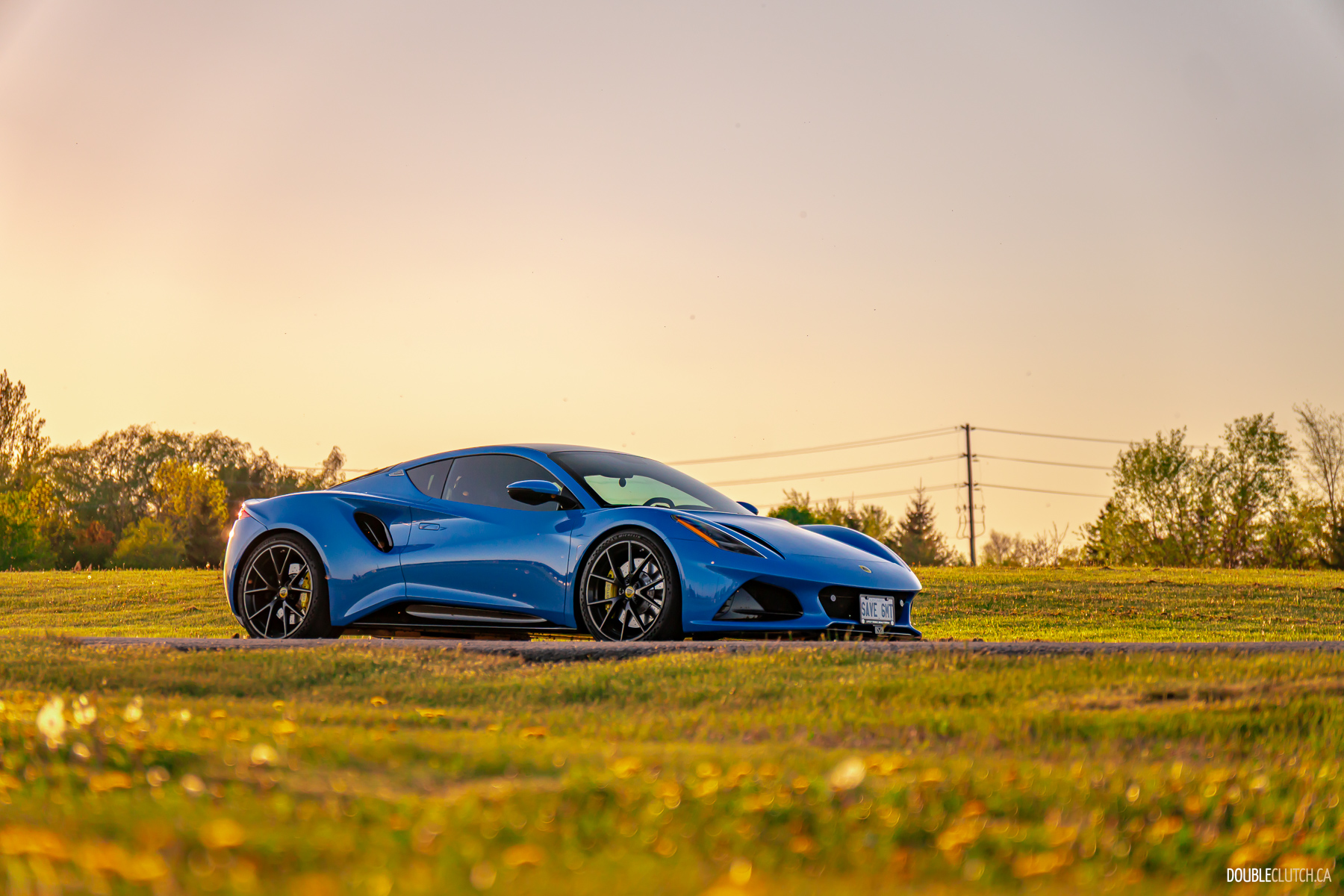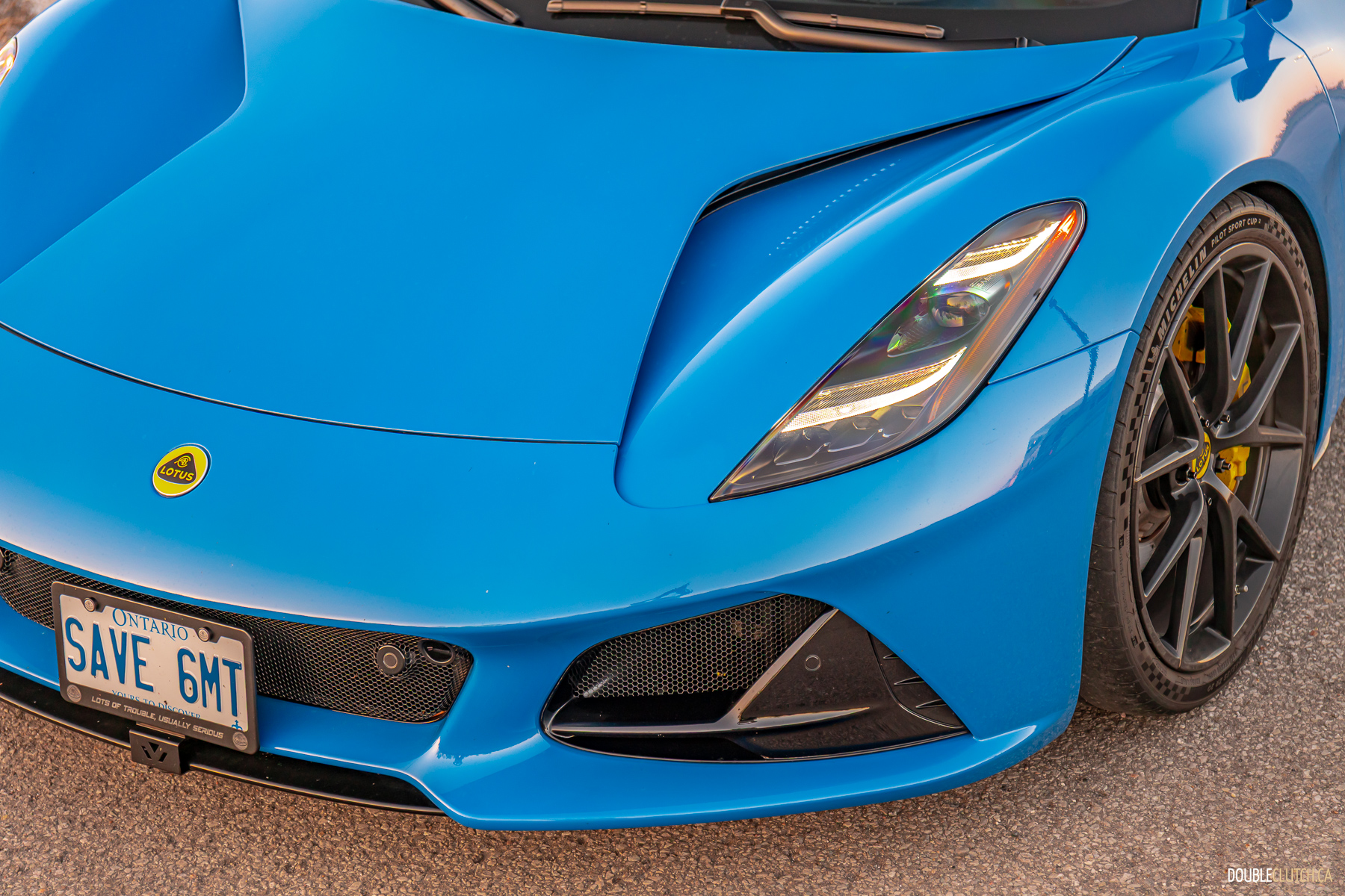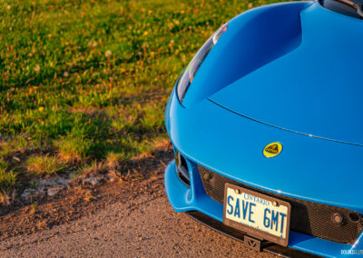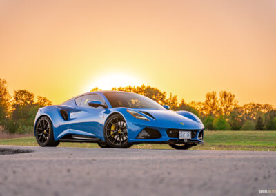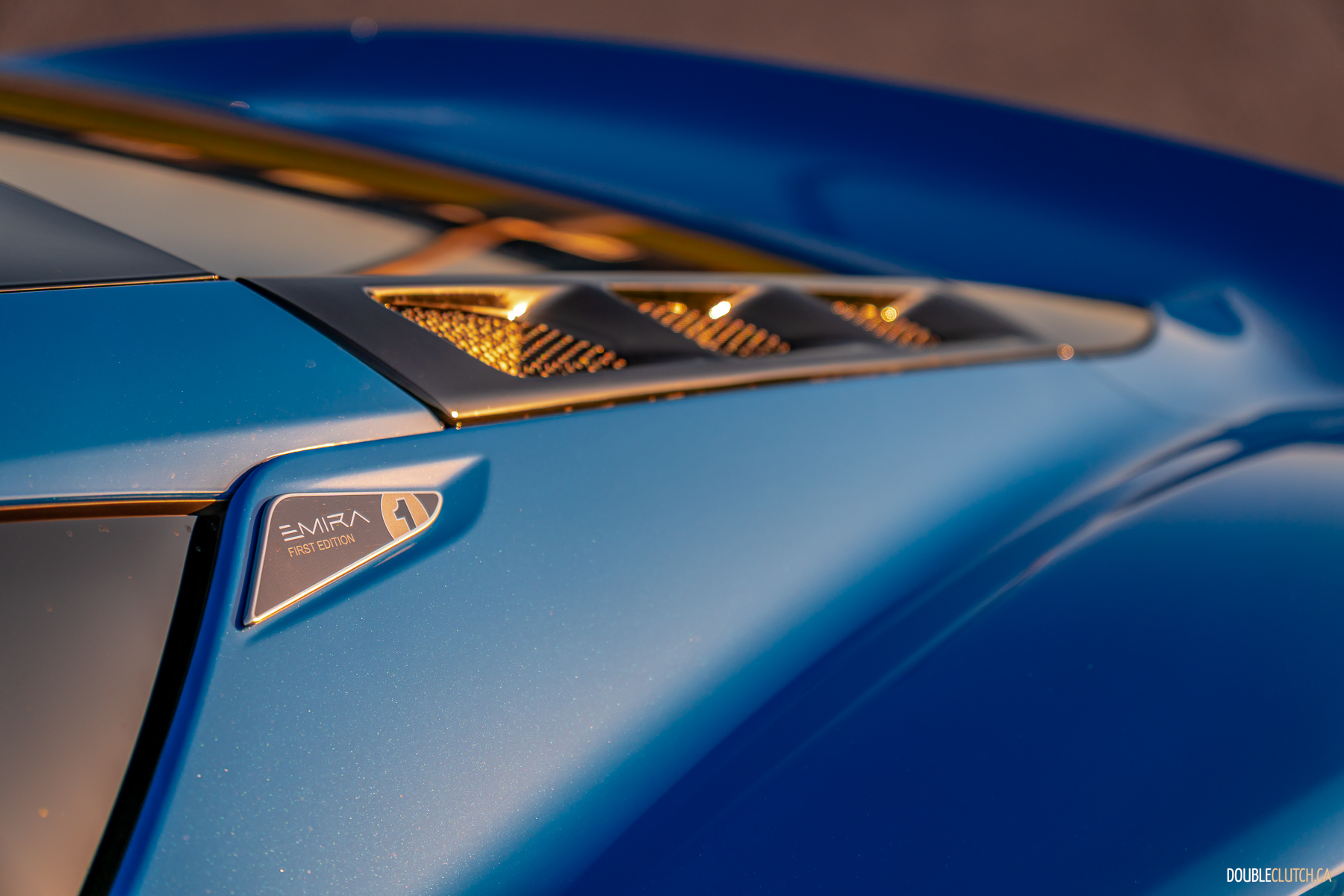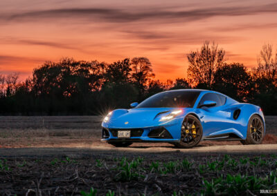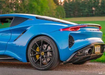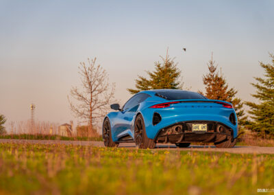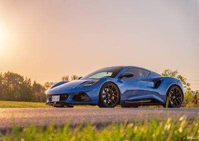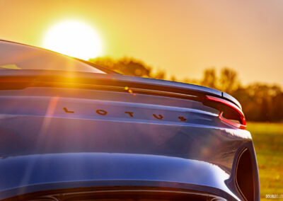 I pulled up at the location with the sun perched low over the tree line. I had lots of space to work with and little in the way of visual distraction, so I knew it was going to be a relatively straightforward shoot that made the most of the Emira’s natural curvature, intricate details, and sparkling Seneca Blue metallic paint. Shooting a car tends to reveal its beauty, and despite things going so well, I wish I had more time with more light. I kept finding new details and angles to play with, absorbing the car’s inspiration and falling more in love with every minute.