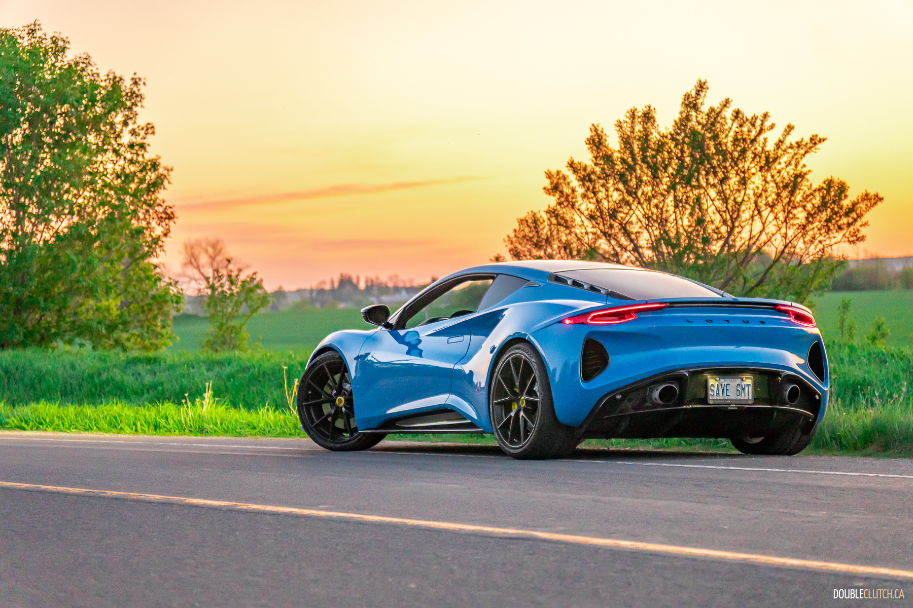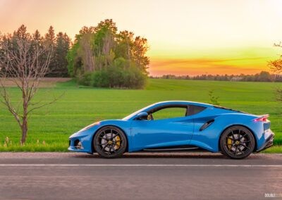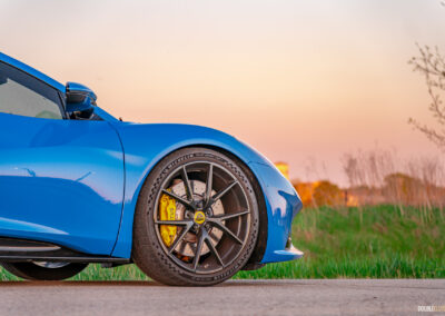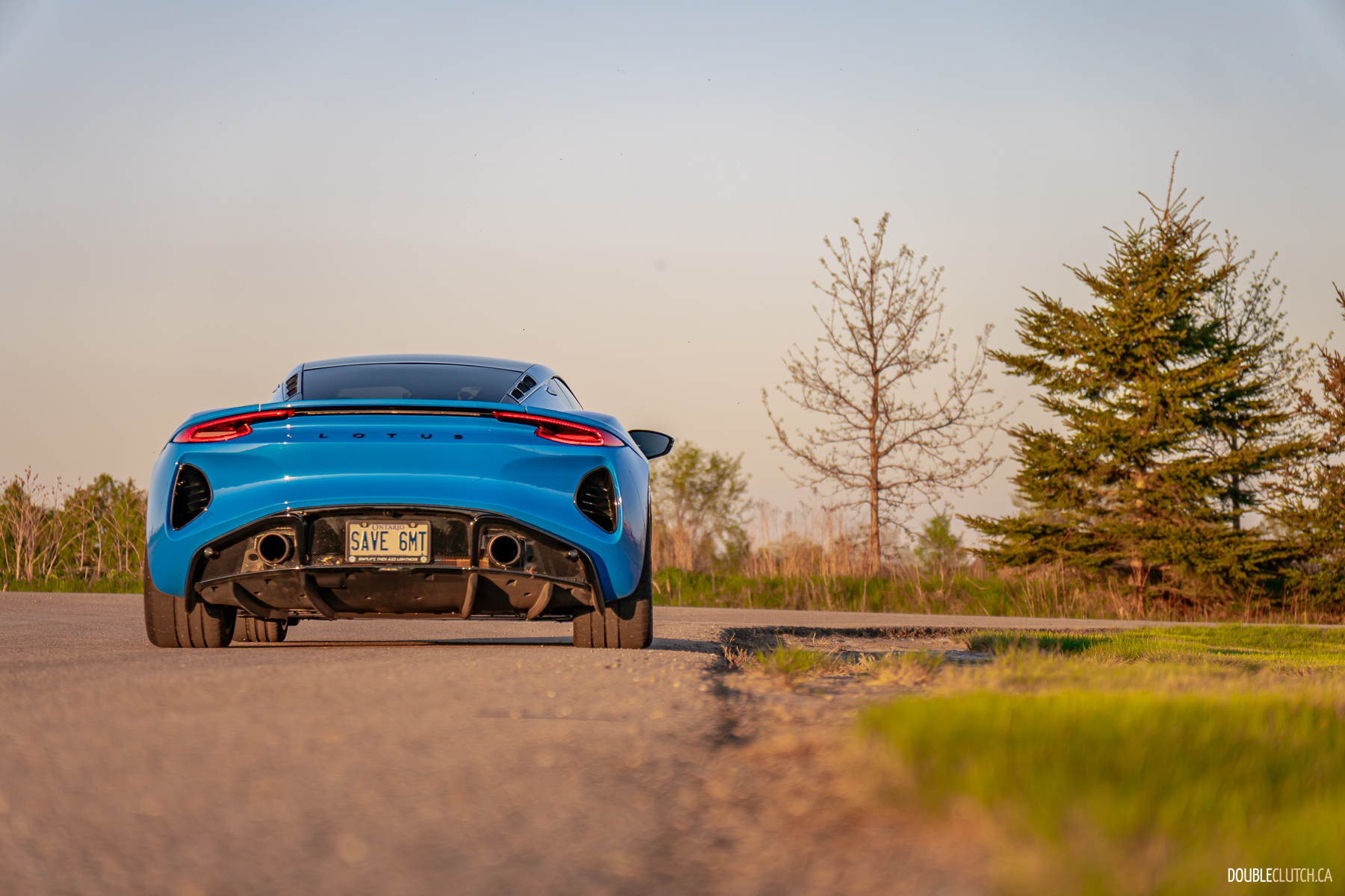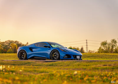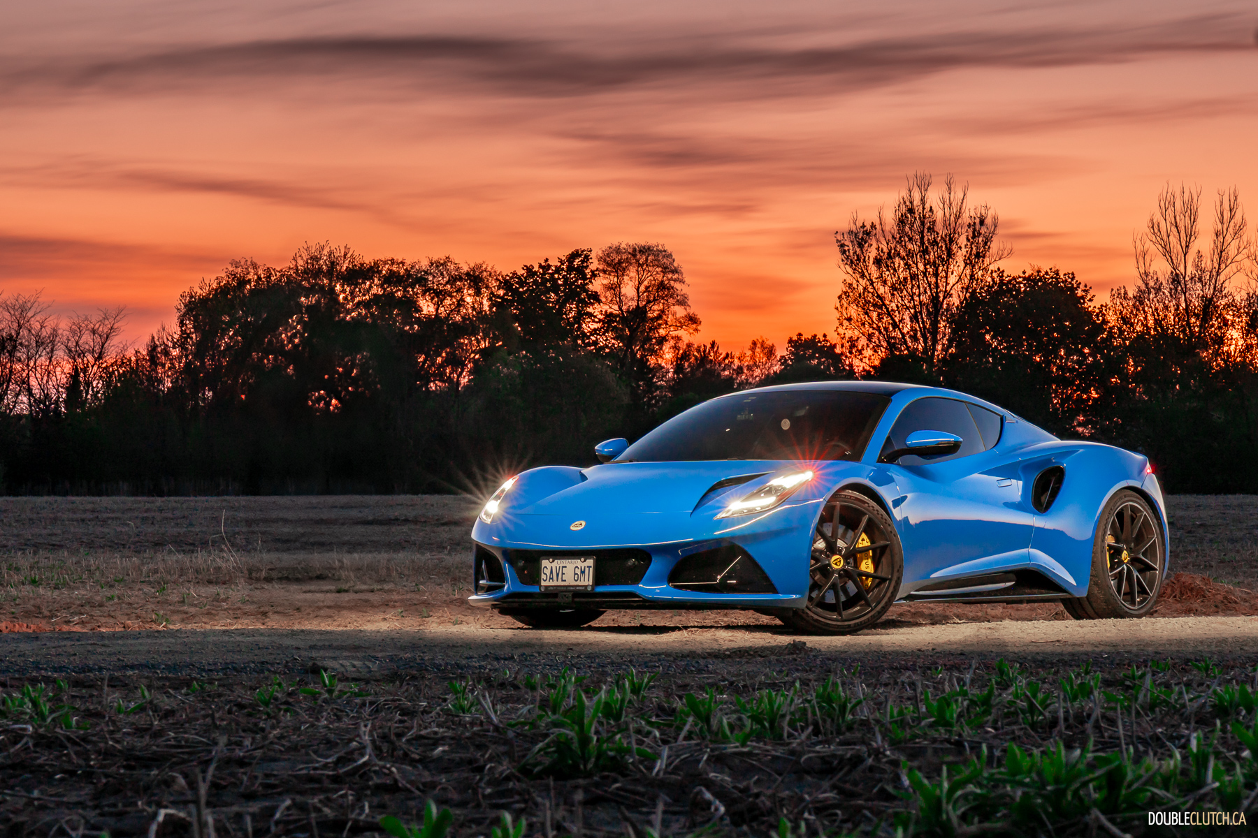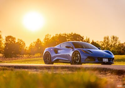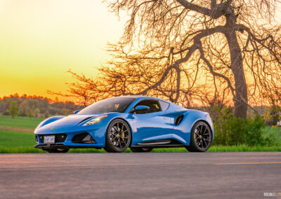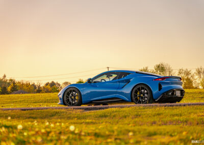 I pulled up at the location with the sun perched low over the tree line. I had lots of space to work with and little in the way of visual distraction, so I knew it was going to be a relatively straightforward shoot that made the most of the Emira’s natural curvature, intricate details, and sparkling Seneca Blue metallic paint. Shooting a car tends to reveal its beauty, and despite things going so well, I wish I had more time with more light. I kept finding new details and angles to play with, absorbing the car’s inspiration and falling more in love with every minute.