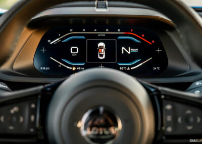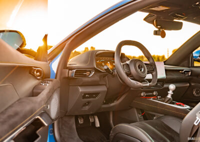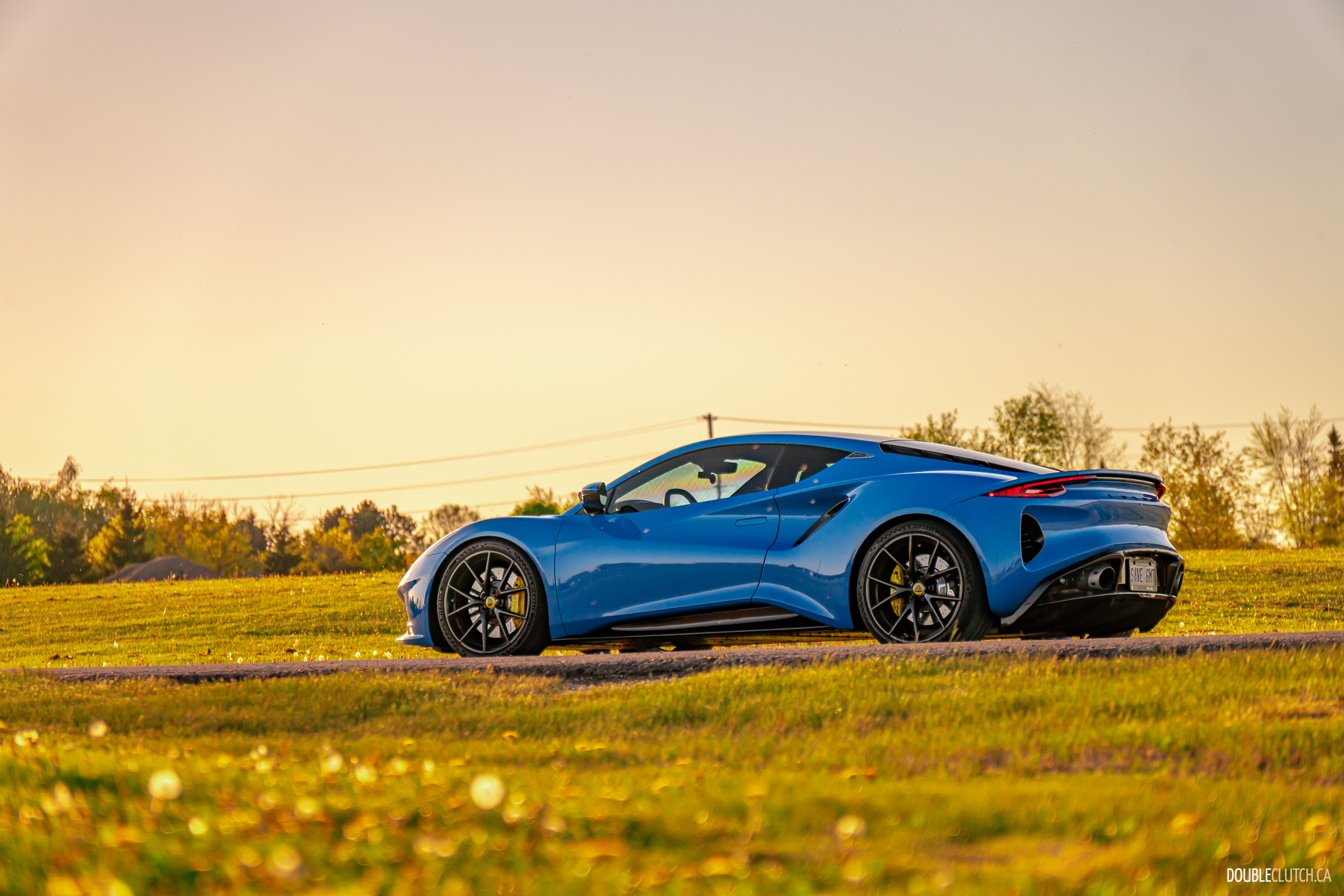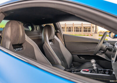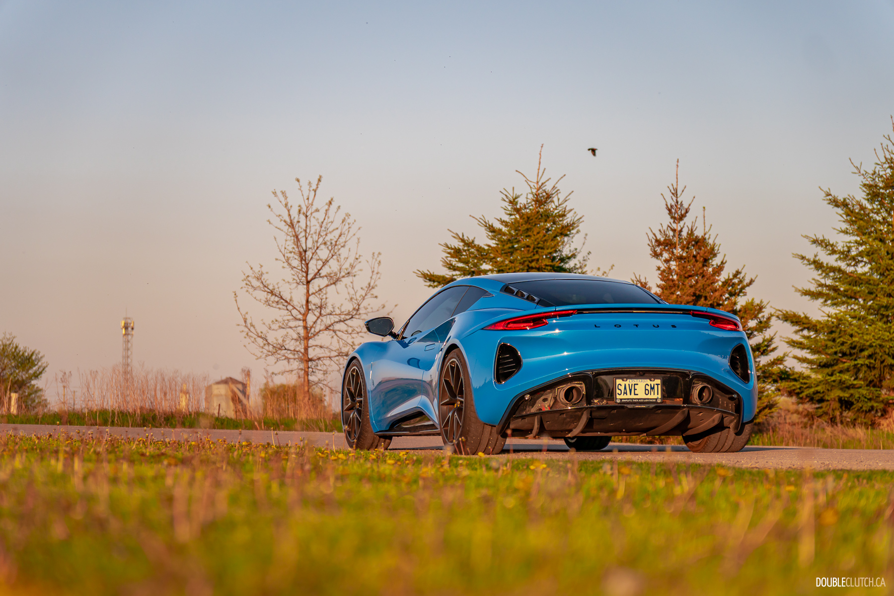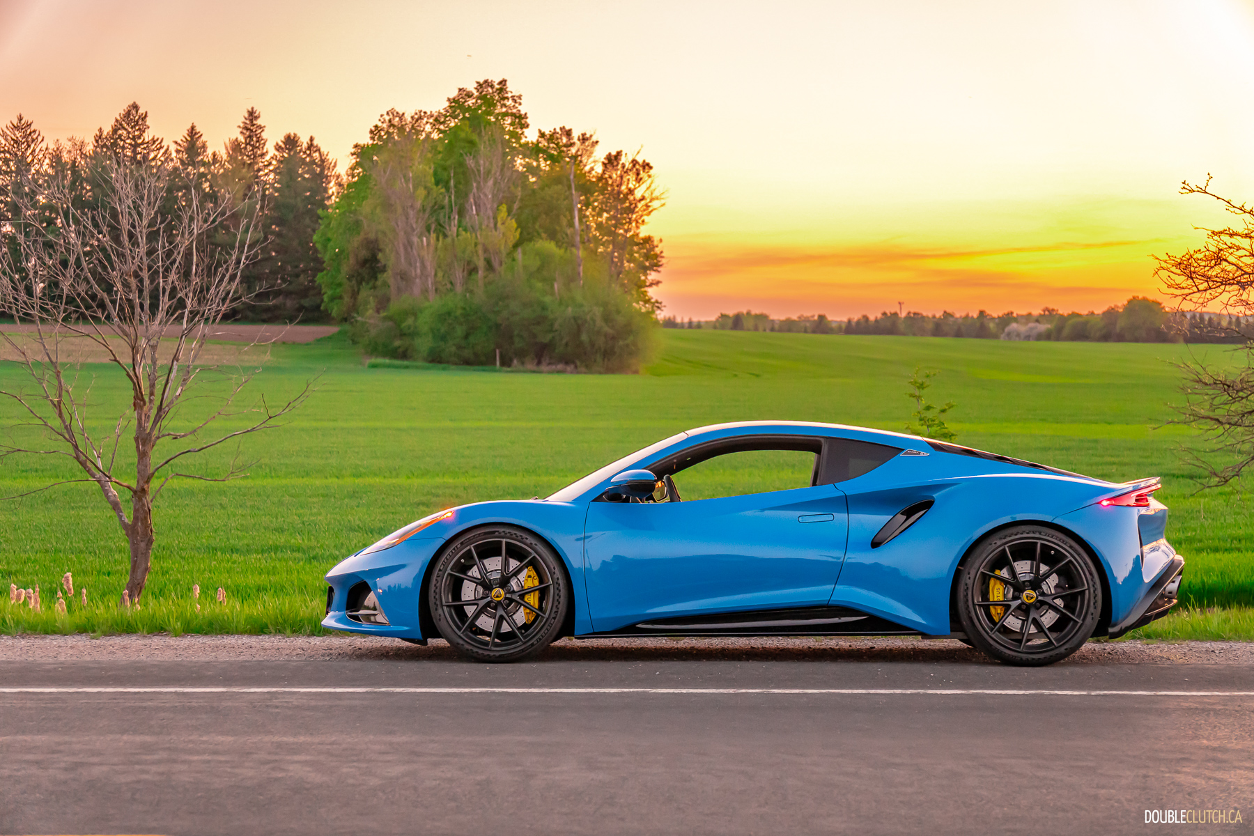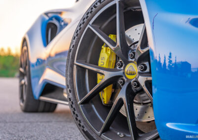 I pulled up at the location with the sun perched low over the tree line. I had lots of space to work with and little in the way of visual distraction, so I knew it was going to be a relatively straightforward shoot that made the most of the Emira’s natural curvature, intricate details, and sparkling Seneca Blue metallic paint. Shooting a car tends to reveal its beauty, and despite things going so well, I wish I had more time with more light. I kept finding new details and angles to play with, absorbing the car’s inspiration and falling more in love with every minute.