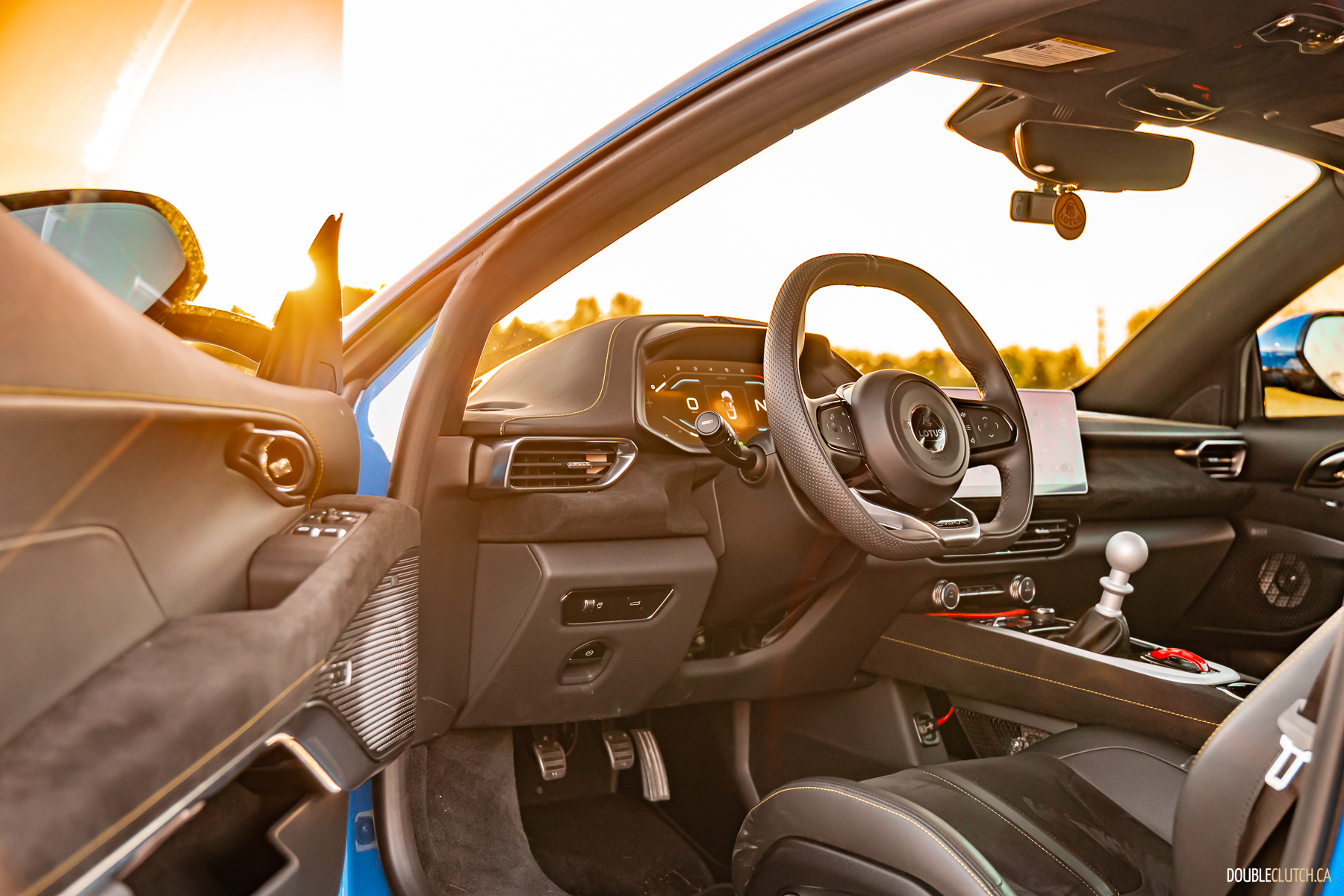 But the romance crept in quickly. That engine sounds good, especially when you’re on it, bellowing an exotic howl as it rises up the rev range. I hadn’t adjusted my mirrors yet, and doing so revealed a direct view of the engine perched right behind my head. I could plainly see the writhing throttle actuator responding to my inputs against the aluminum skinny pedal. It dawned on me that I didn’t really have to adjust to the clutch/shifter/throttle rhythm at all — we understood each other and fell into a natural cadence without having to think about it.