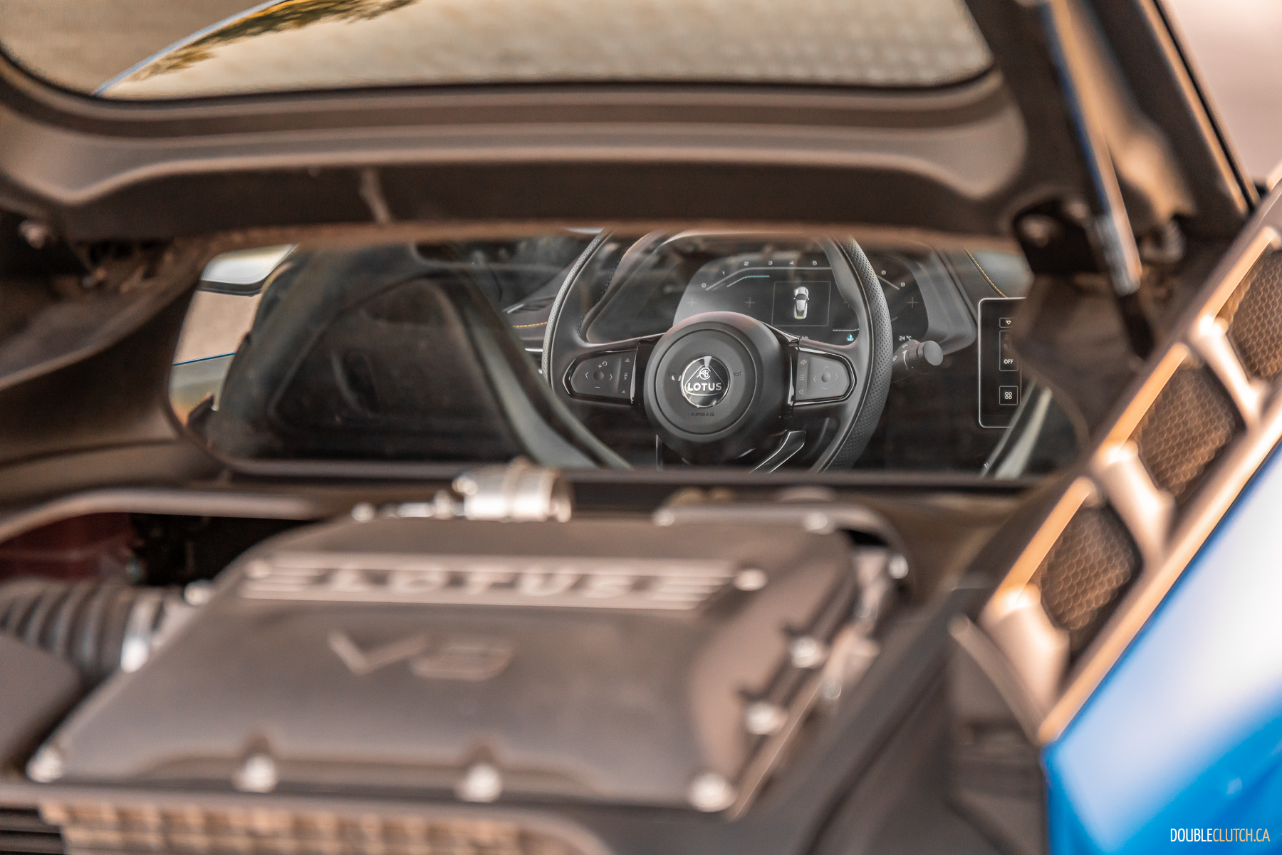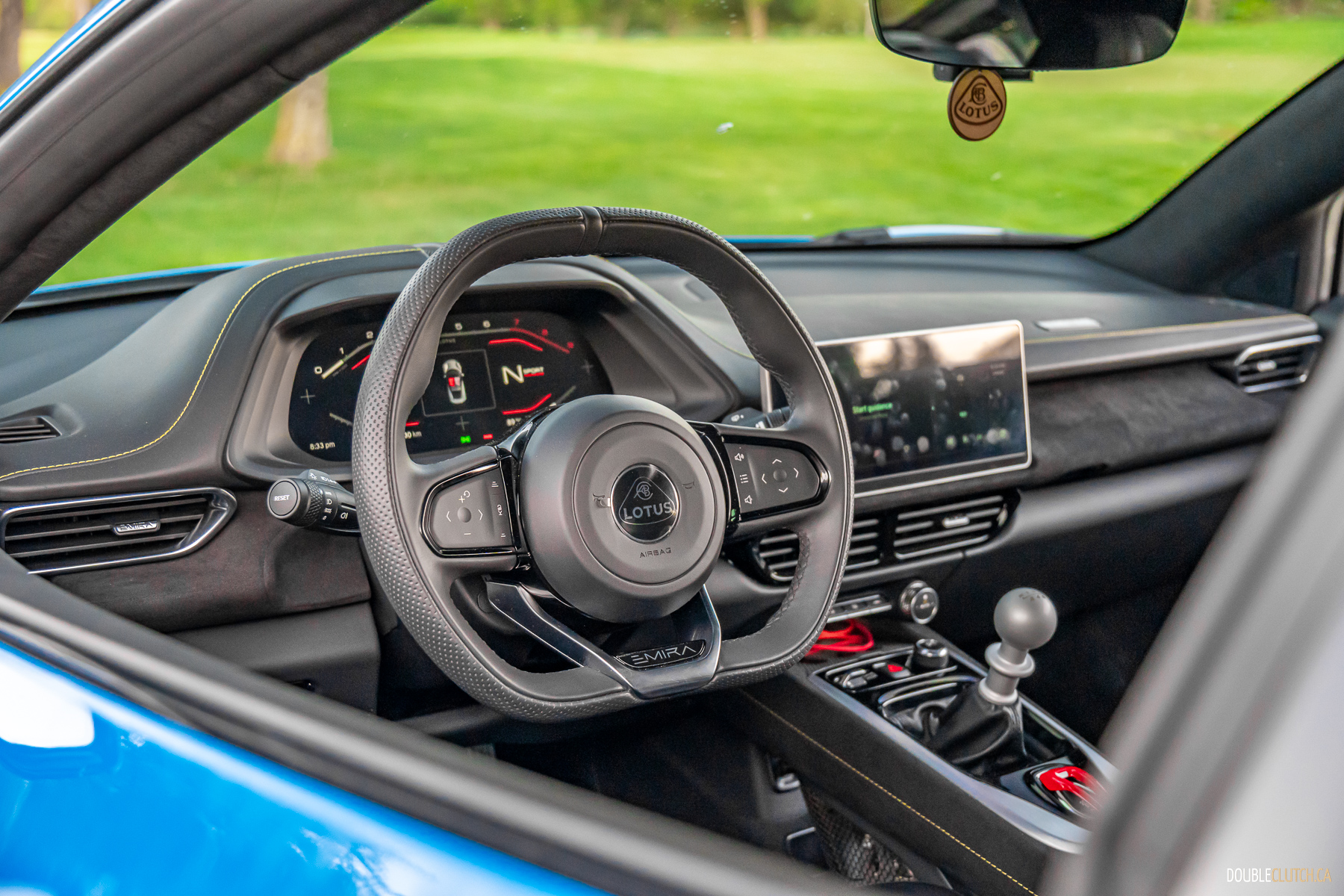 It’s loud, but not obnoxiously so, and it comes by it honestly. It’s not a loud, projected sound, but rather simply an inherent noise, a discordant mechanical muttering of a sublime car that just wants to run. It reminded me of the Ferrari Testarossa, which was a grouch of a car that made no sense if it wasn’t flying. The Emira is a tiny little thing with a big personality, and I haven’t even opened the door yet.