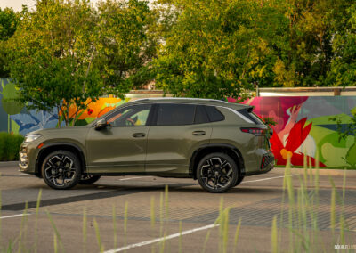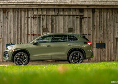The 2025 Tiguan is all new, built on the new MQB Evo platform. This new version offers more interior space and better driving dynamics by virtue of using a greater percentage of high-strength steel in the chassis and more aluminum suspension components to keep weight down. It’s new exterior styling takes cues from its bigger brother Atlas, and that extends to the elegant Avocado Green Pearl paint on our tester. It’s softer edged baby-Atlas styling is a little less distinct than the sharp-creased big-Golf styling of its predecessor, but it’s still handsome enough.