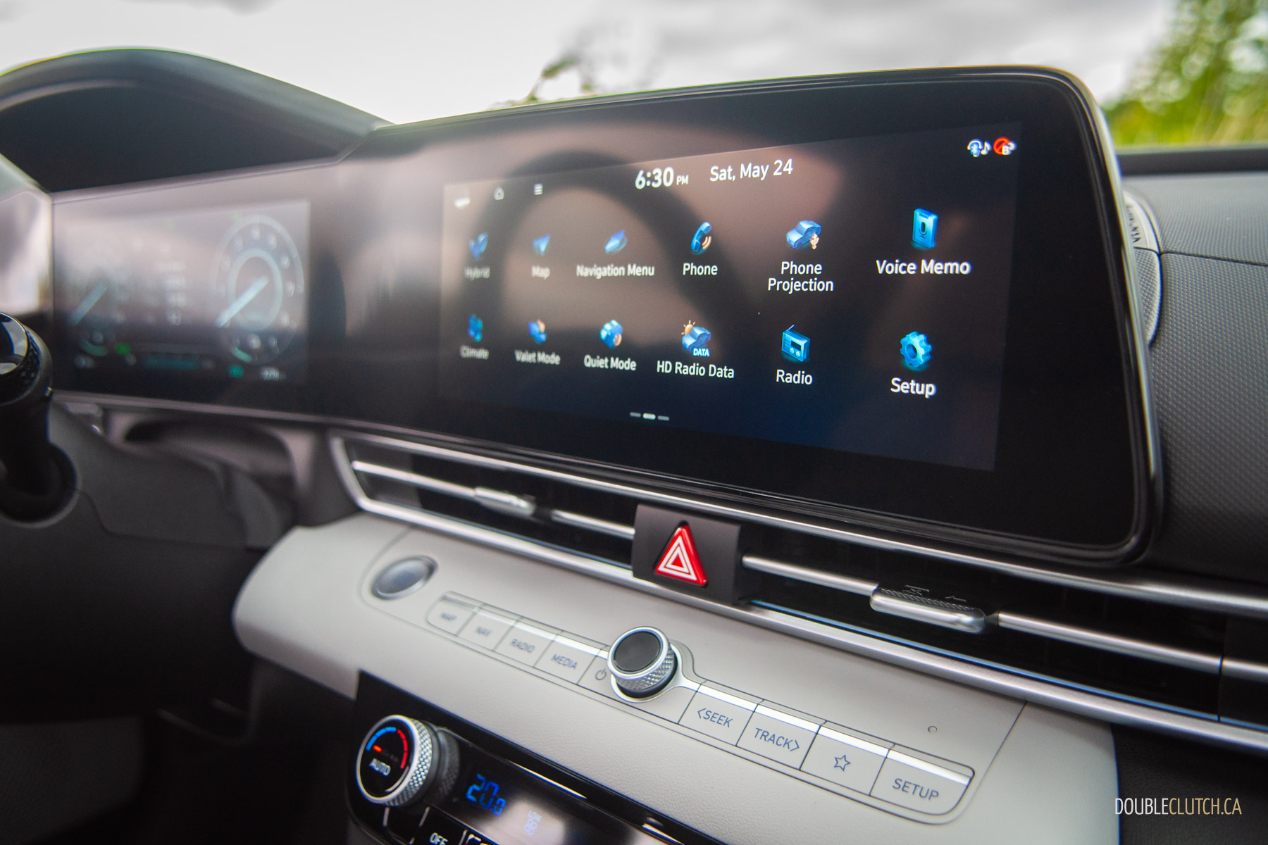That’s because fuel economy is the name of the game here. It uses a 1.6-litre four-cylinder gas engine, hooked up to an electric motor and a tiny 1.32 kWh lithium-ion battery pack. That’s all good for just 139 horsepower combined, but a punchy enough 195 pound-feet of torque. The Elantra Hybrid also uses a six-speed dual-clutch automatic, instead of a CVT. On the highway, 139 ponies is about as gutless as you’d expect, but the Elantra Hybrid feels surprisingly punchy around town.