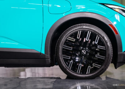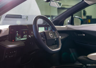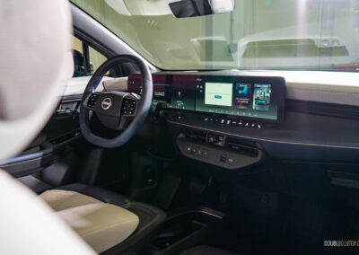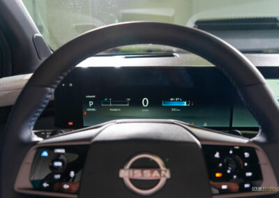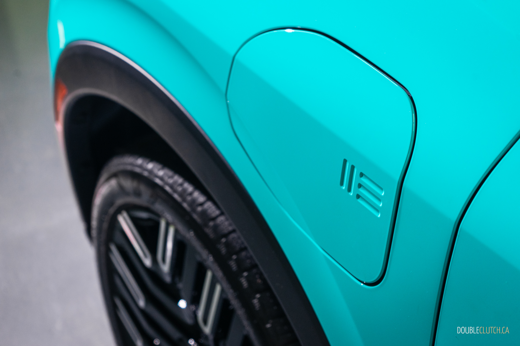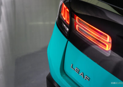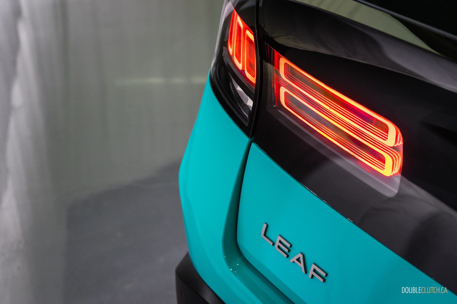 More interestingly, the 2026 Leaf says “Nissan” all over. Take a closer look at the tail lights: the lens design is made up of two horizontal rectangles in the inner portion, and three vertical rectangles in the outer portion. You’ll also notice this on the charge port door, the door sills, the floor mats, in the headlights, and a few other spots all over. This is a clever reference to Nissan, literally: in Japanese, “two” is pronounced “ni” and three is “san.” Very neat, Nissan.