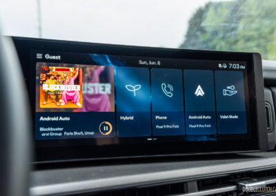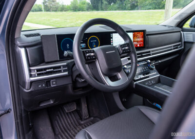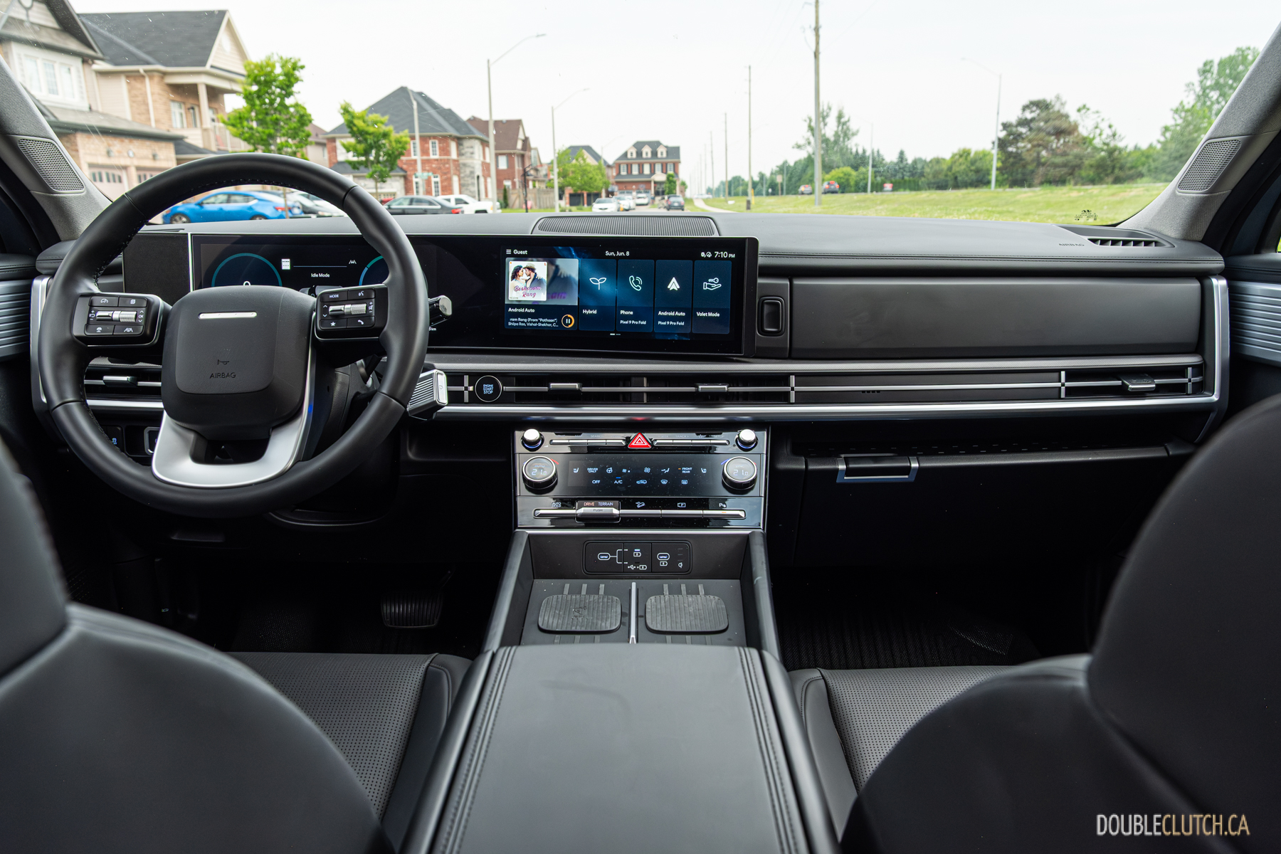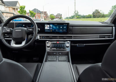 The Santa Fe’s interior is another design win, although not as groundbreaking as the exterior. Again, we see some Land Rover inspiration in the steering wheel design, and even some sections of the centre console if you squint hard enough. Like most new vehicles these days, there’s a dual-screen setup making up the gauge cluster and infotainment screen, but it doesn’t feel very inspired because Hyundai uses it in everything else they make. Still, Hyundai continues to create an easy-to-use and snappy UI presented on high-resolution screens with great contrast.