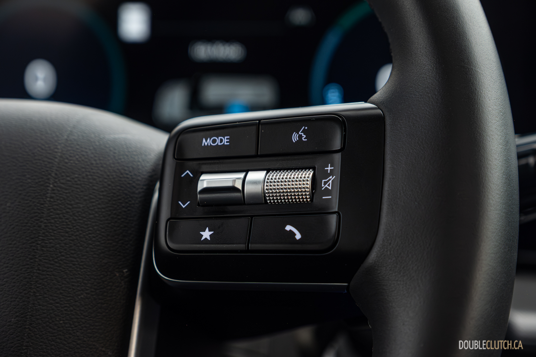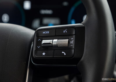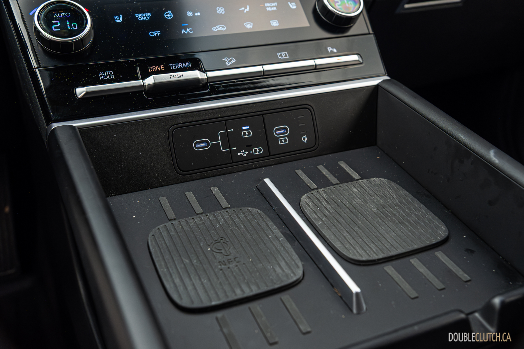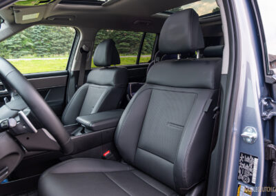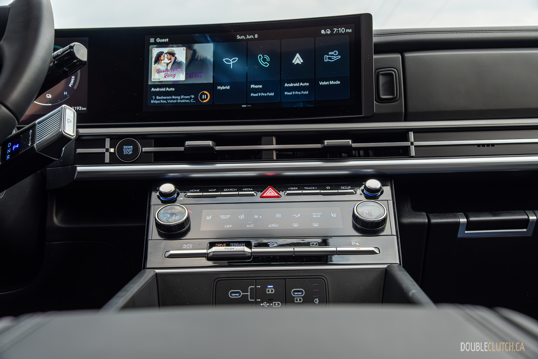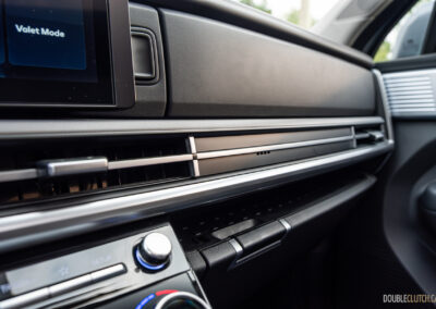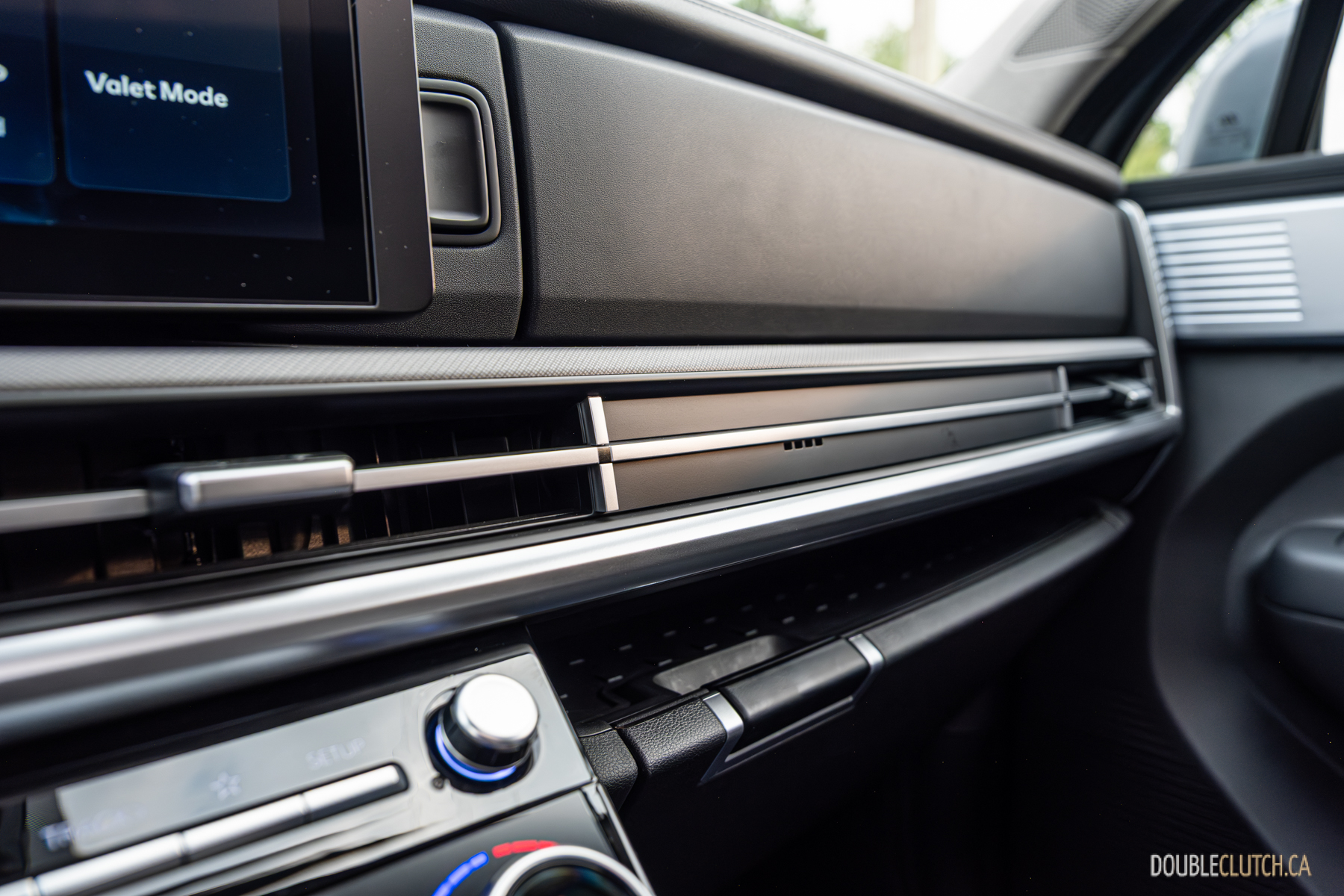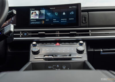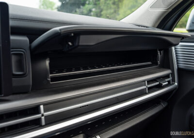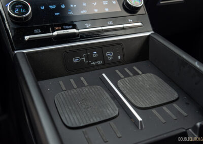Thankfully, the centre console features redundant physical controls beneath the 12.3-inch infotainment touchscreen. Further down the center console is a place to drop your cell phone on a grippy rubberized wireless charger. On the passenger side you have quite a bit of storage space in the form of a high-mounted glove box which doubles as a UV-C sanitizer, and an open parcel shelf for all those receipts you swear you’ll need later. There’s also a conventional glove box where you expect it to be, along with a large storage area under the centre console. There’s even some innovation to the centre console storage box; it opens one of two ways, so front-seat and second-row passengers can access it easily.