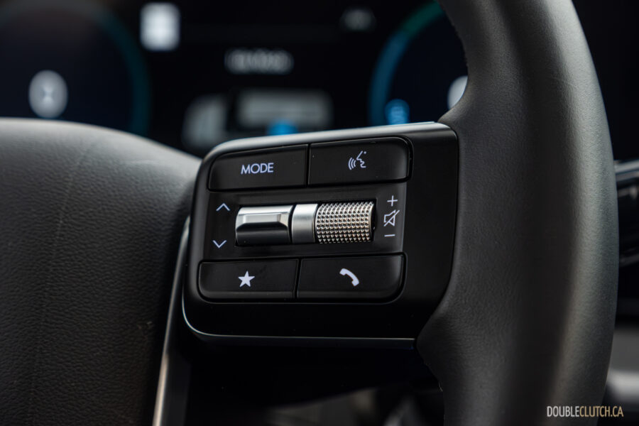 2025 Hyundai Santa Fe Hybrid steering wheel audio control close-up