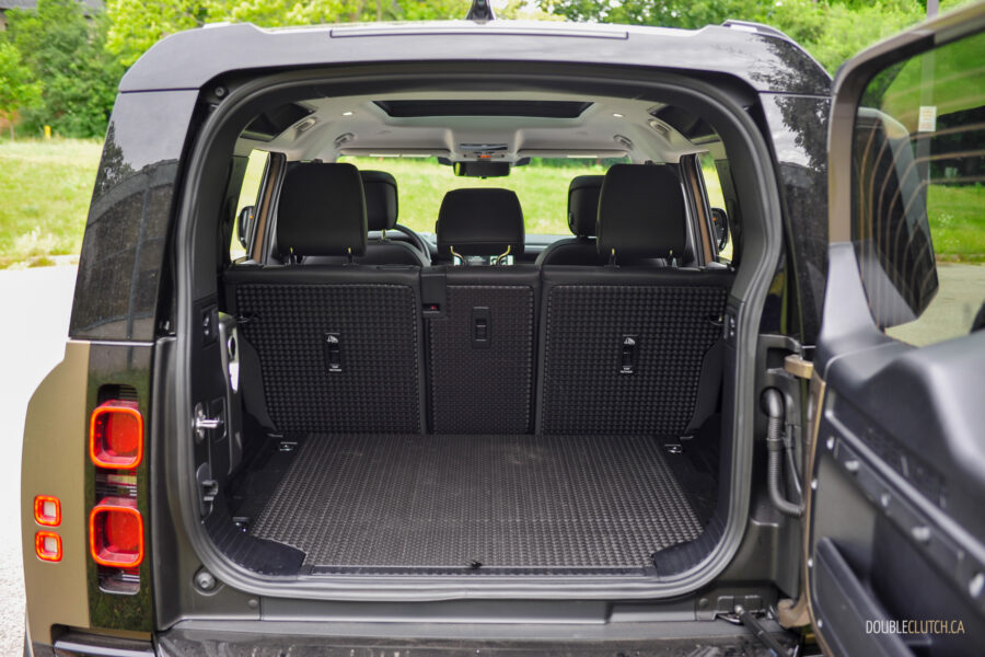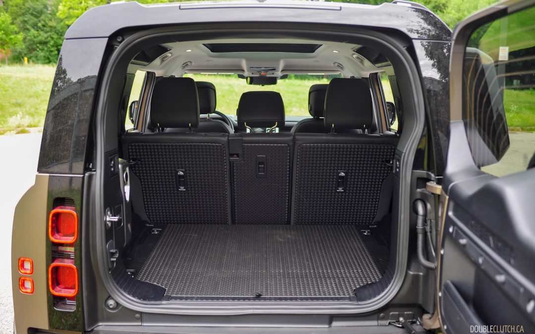 2025 Land Rover Defender 110 rear cargo area view with seats up