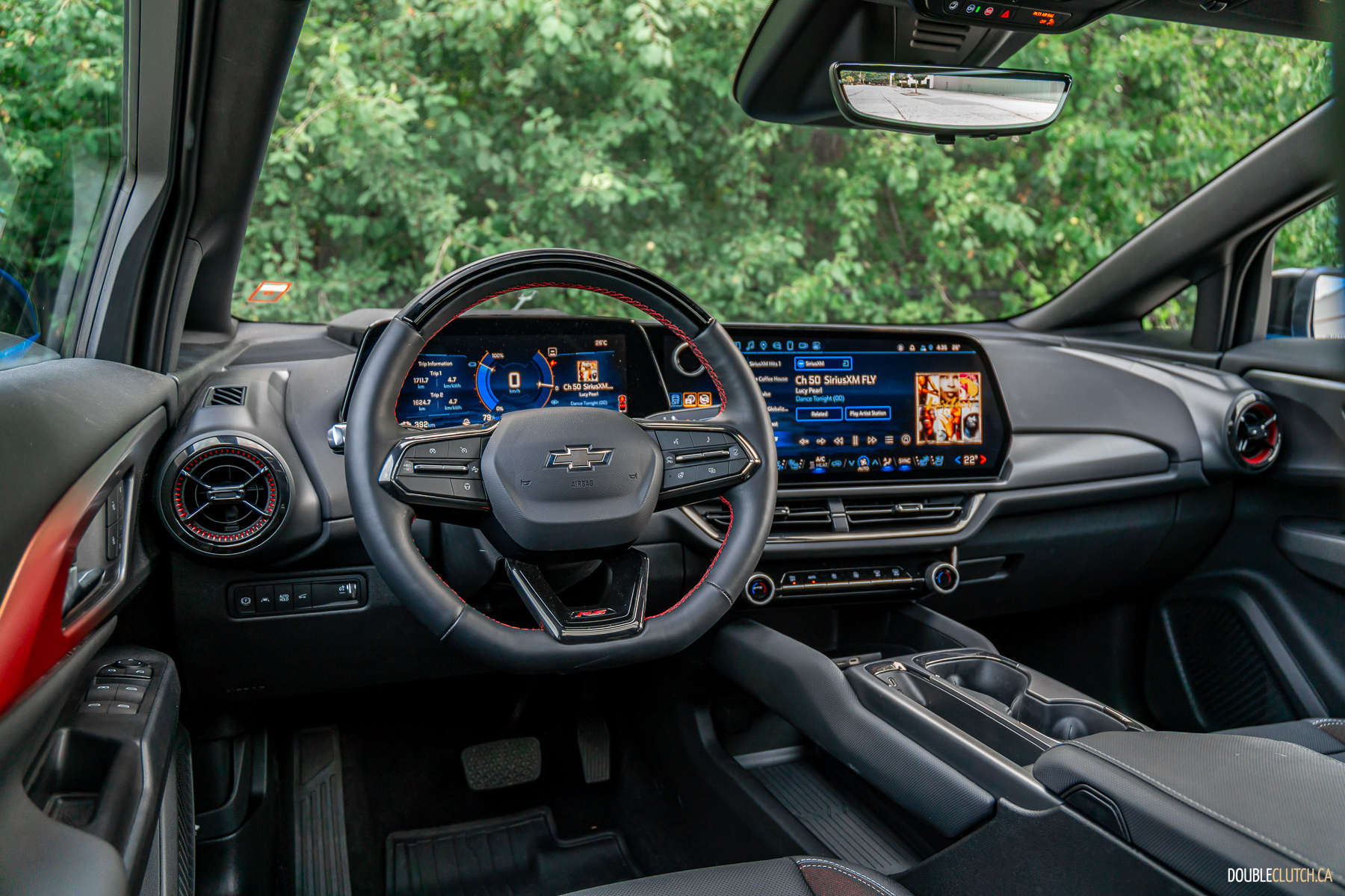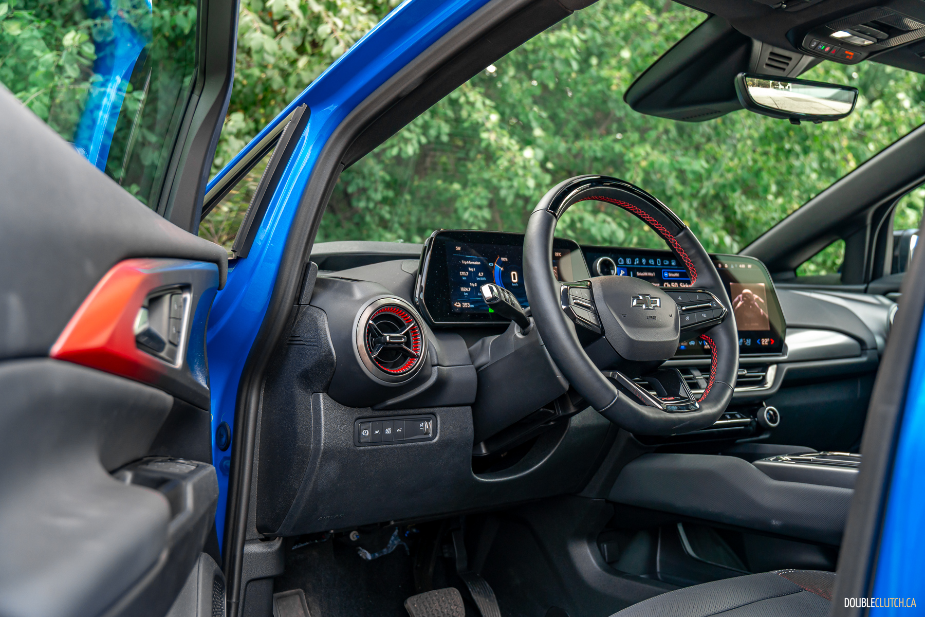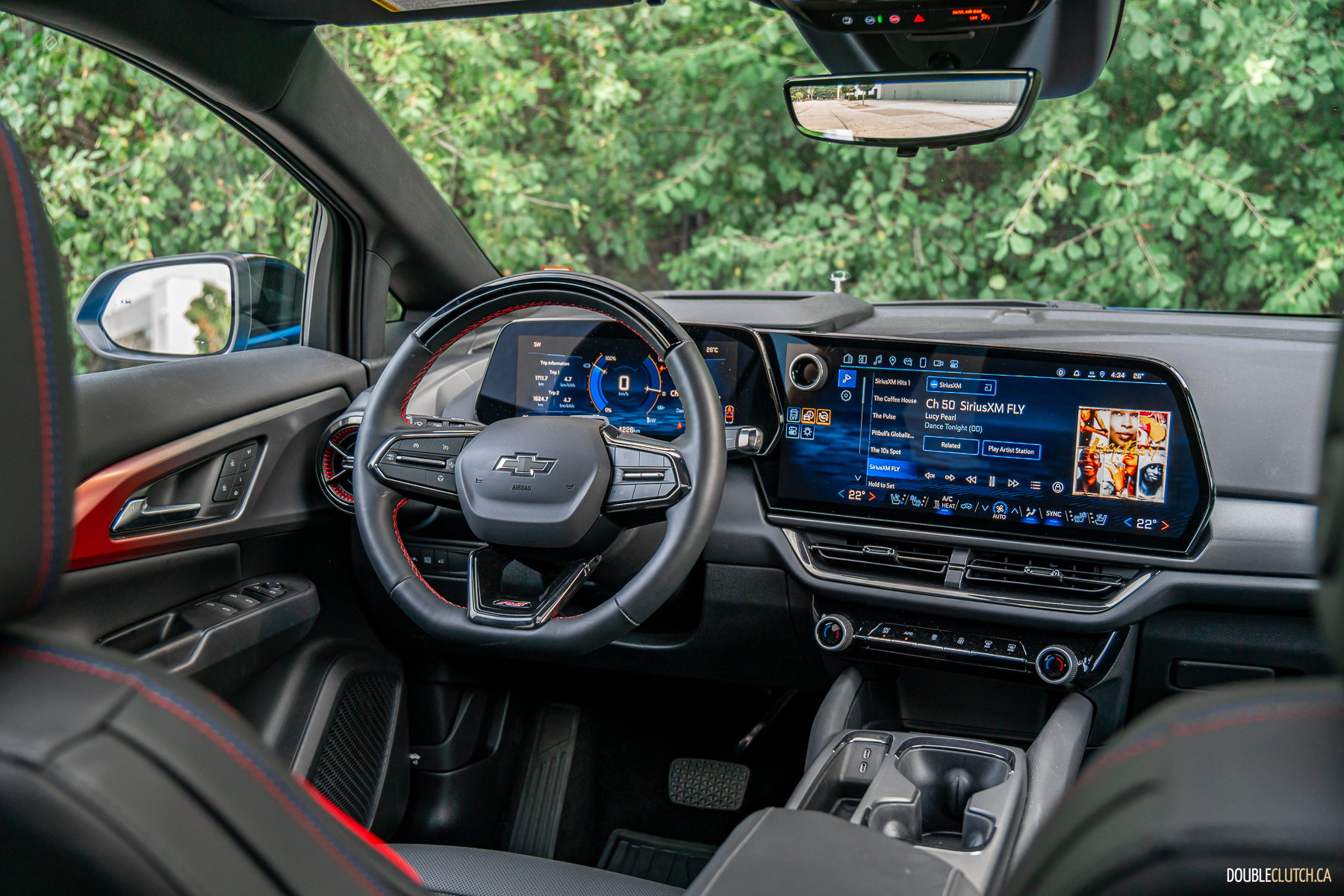 Our Equinox EV RS tester is powered by two electric motors and an 85 kWh battery pack, giving it all-wheel-drive. Output jumps to 300 horsepower — up from 288 compared to last year — and 355 pound-feet of torque. This configuration allows the Equinox EV to sprint from zero to 100 km/h in six seconds; it lags behind the EV6 and Ioniq 5’s brisk 4.5-second runs, but it feels more than quick enough in the real world, and much more bearable compared to the FWD version.
