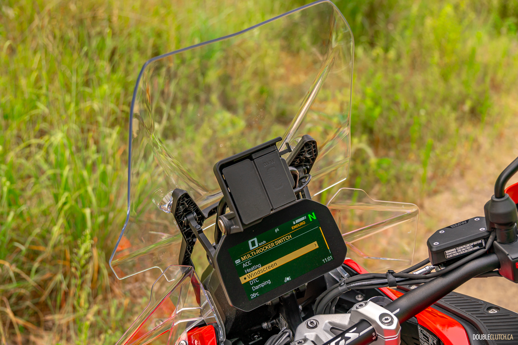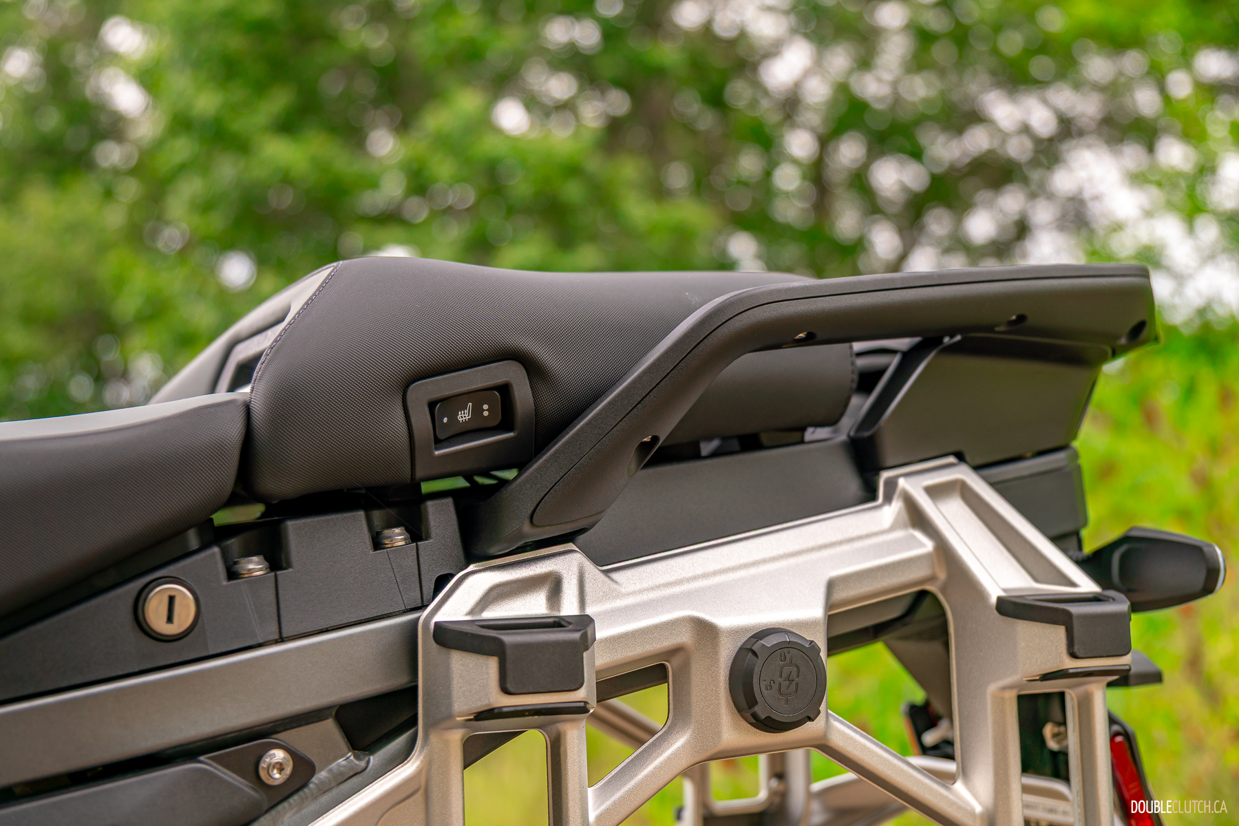 Another trick that’s accessible via the quick menu is the windscreen, which can raise or lower on the fly. There is almost no reason you’d want it to be other than to look fly, so that’s what I did whenever I wasn’t on the highway. Whether it’s up or down, wind turbulence is exceptionally well-controlled. There’s hardly any buffeting making its way to you, and it’s to a relative nil with the windscreen extended. If we weren’t in the middle of a heatwave, I might’ve appreciated it more. Speaking of, the grips are heated as you’d expect, but so is the front and rear seat. A very real part of me wants to re-book this bike in the fall, to see how viable it’d be at the chilly end of riding season. Or to see how viable it’d be, adventuring across cold continents. For science.