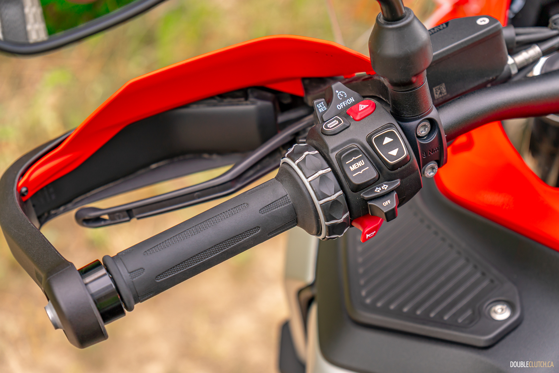 Yes, really. I couldn’t believe it. I thought the GSA was misbehaving when it refused to follow the speed I set. It took me a minute to realize it wasn’t a bug, but actually a feature! And one that works really well, at that. Part and parcel with a system like this is blind-spot monitoring, which sounds redundant on a bike, but I quickly grew to appreciate the little light in the mirrors letting me know when they could see something I couldn’t. I would have seen that Civic beside me when I did my shoulder check anyway, but I liked being told it was there ahead of time. More awareness is always good.