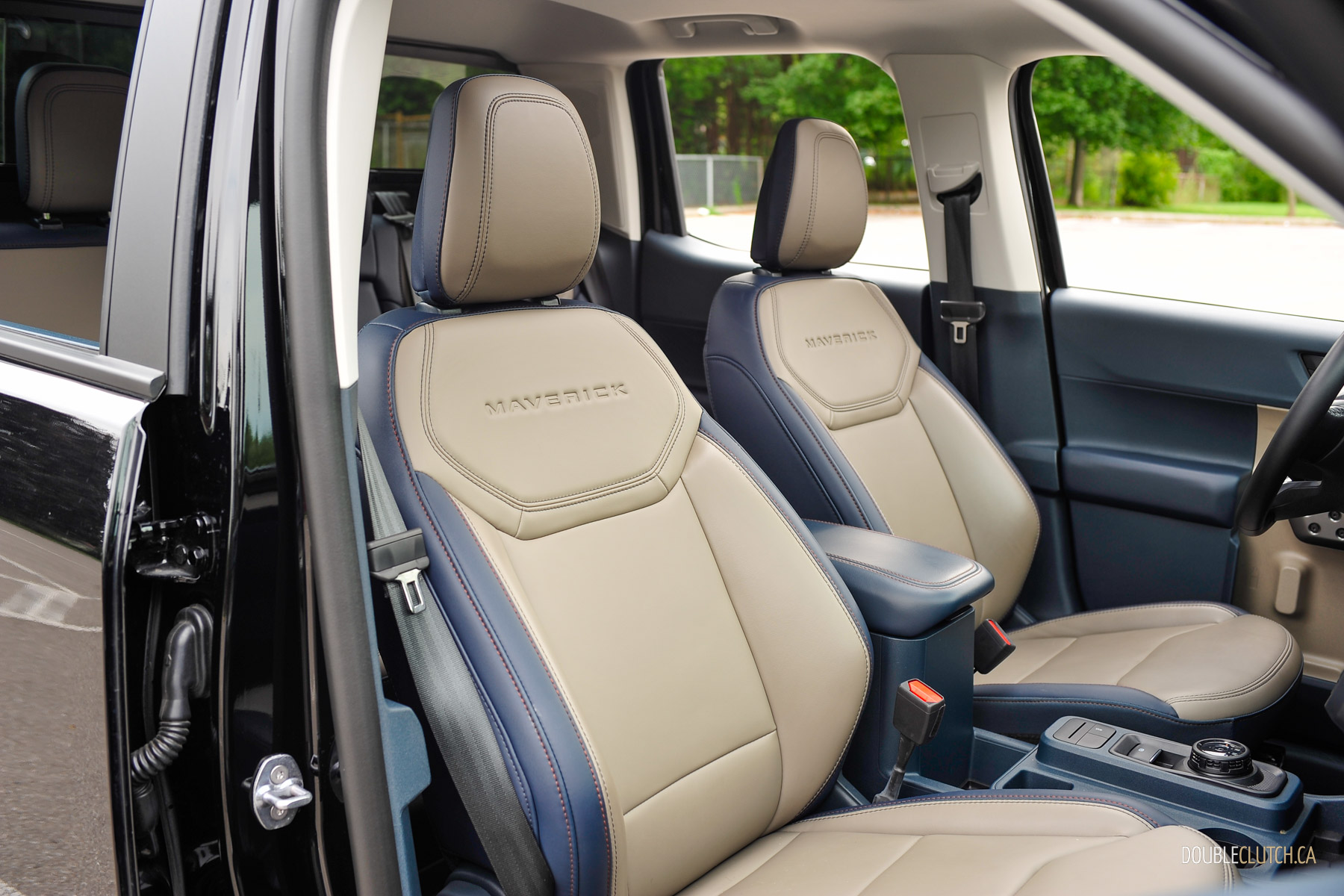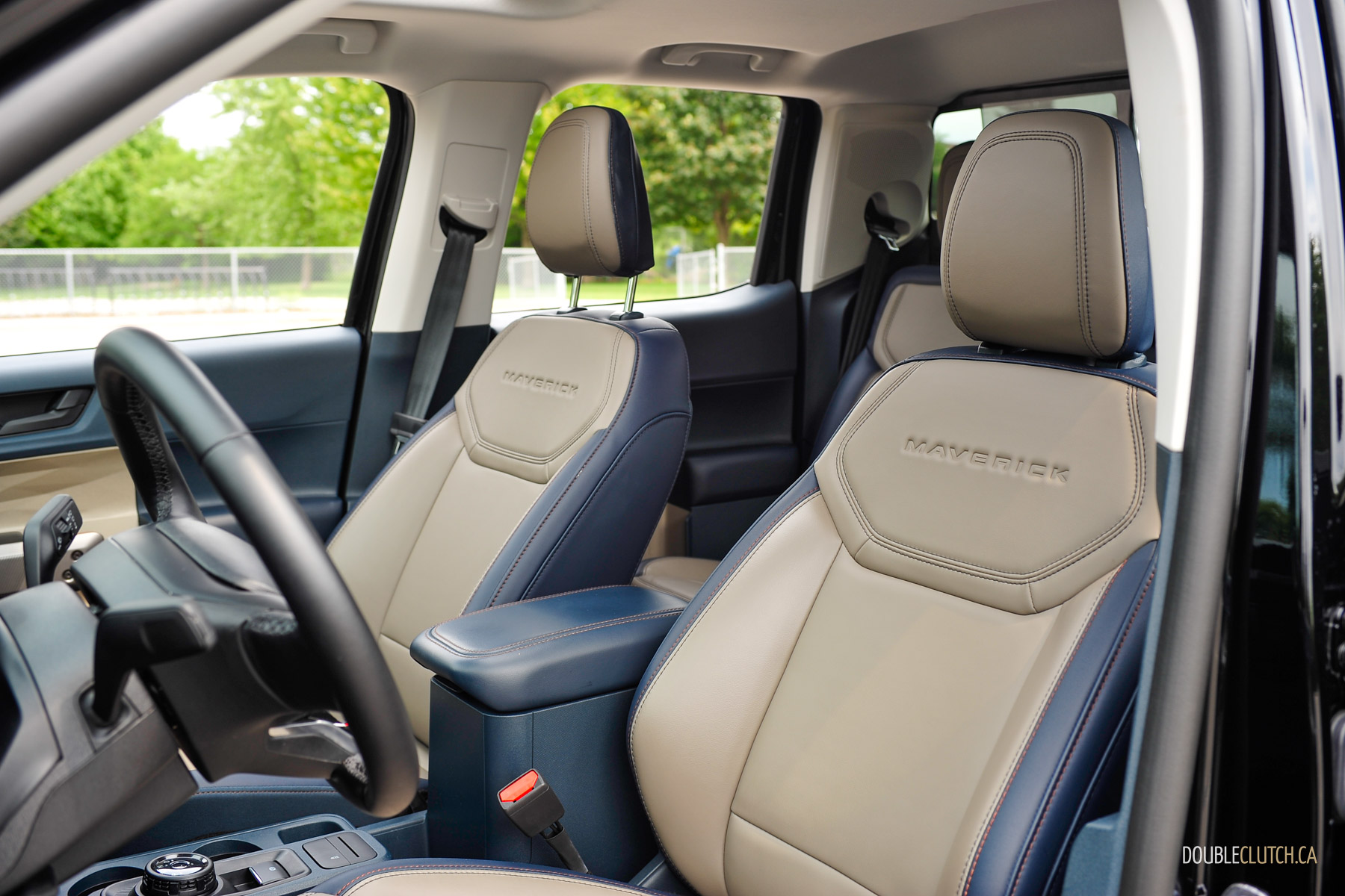 Step into the Lariat, and the cabin immediately signals that this isn’t just a budget-friendly workhorse. The Lariat trim emphasizes a few touches, such as leather-trimmed seating and increased sound deadening, even if most of its interior is primarily hard-touch plastic with textured accents. It’s a bit bit underwhelming considering this Lariat is supposed to be the luxury-oriented top trim of the Maverick lineup.