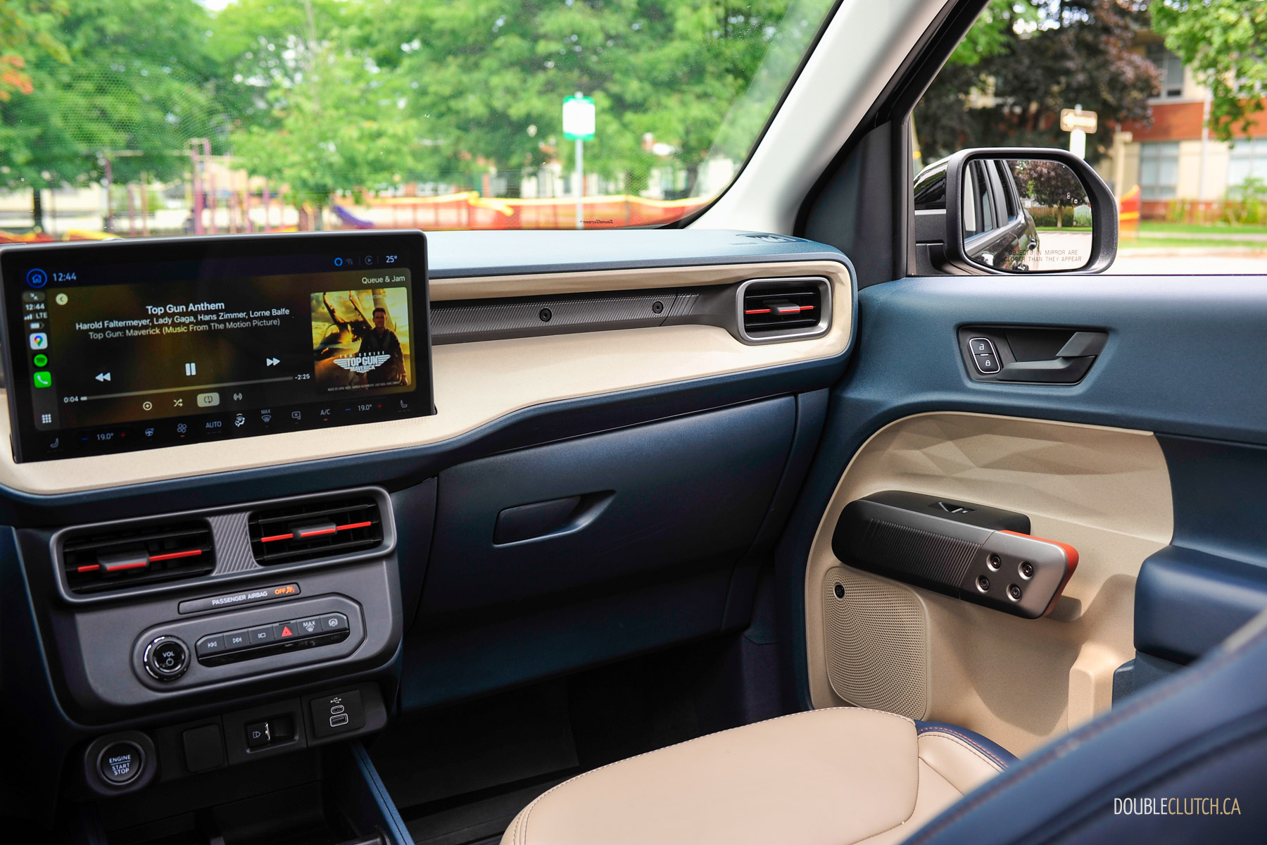 The bed remains one of the Maverick’s highlights—compact at 4.5 feet yet cleverly designed with tie-downs, cubbies, and the ability to accommodate four-by-eight sheets of plywood with the tailgate down. It’s small enough to parallel-park with confidence in places like downtown Toronto, Vancouver, or Montreal, but versatile enough to haul weekend gear for the cottage or even use as a work truck due to the inherent utility of a pickup bed.
