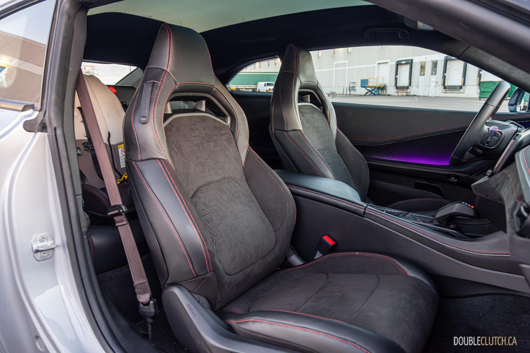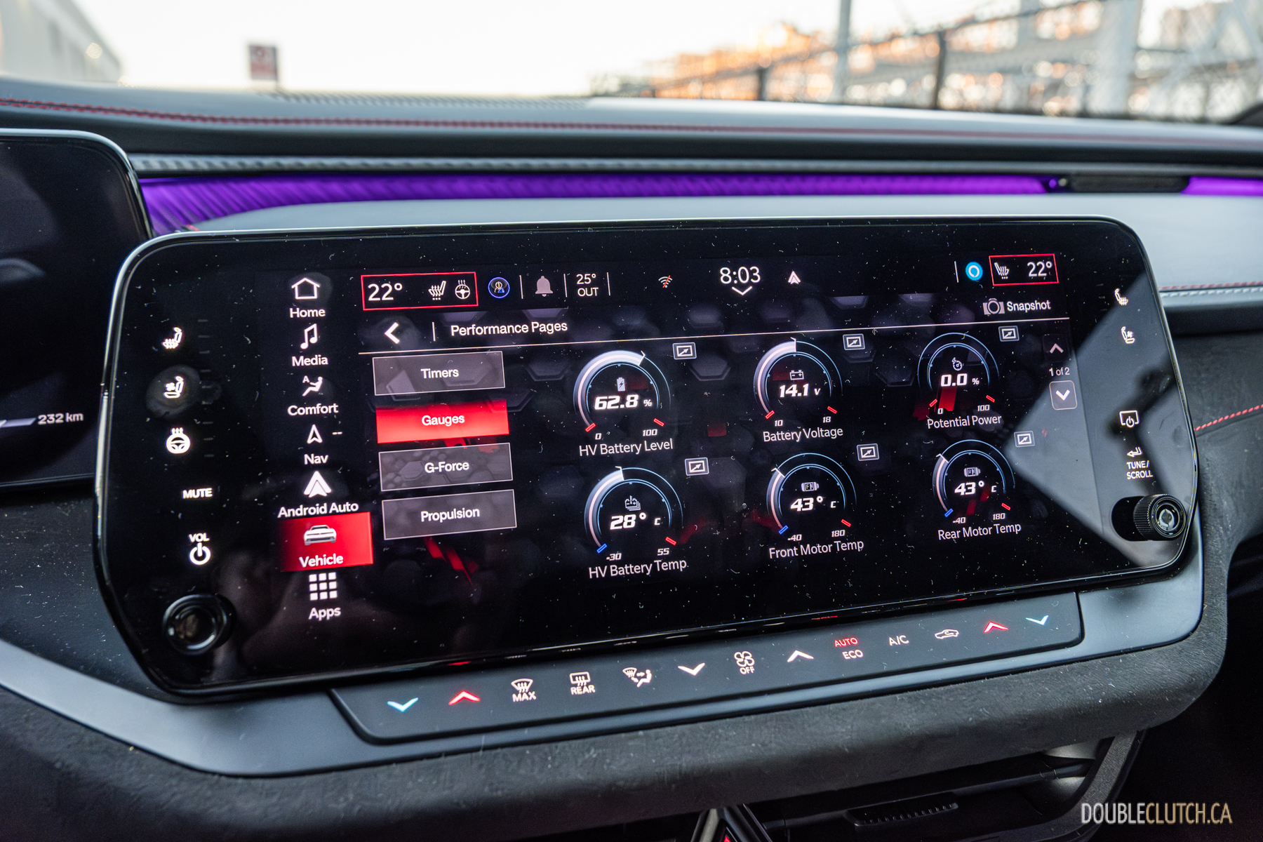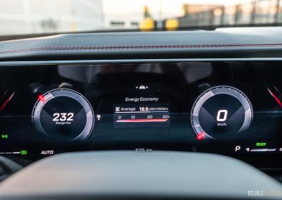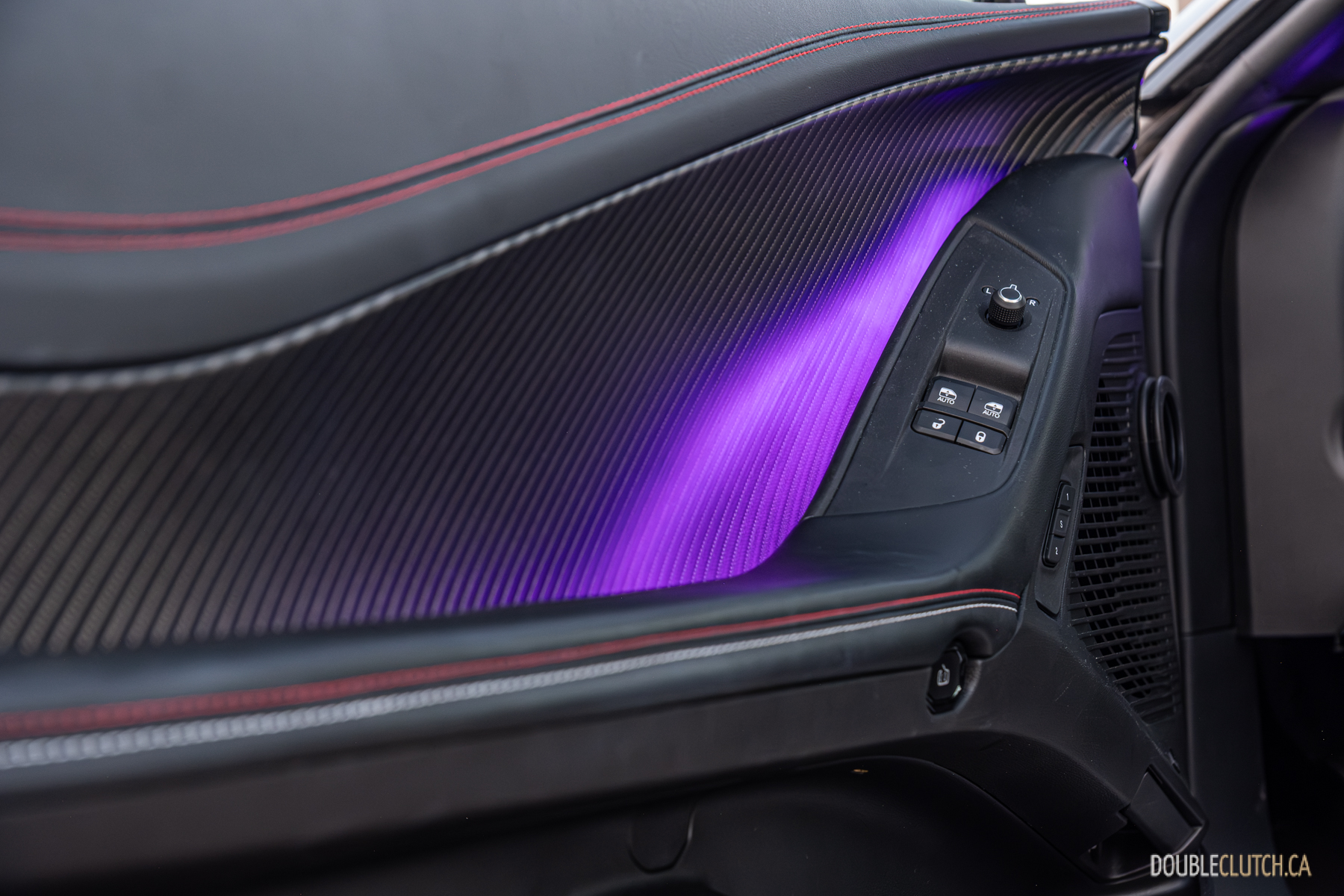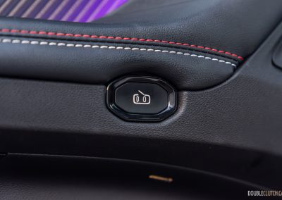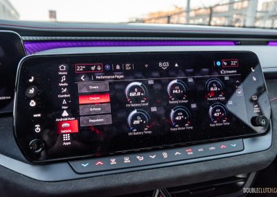 The result is….mixed. The startup sound is LOUD, and blends a bit of an old school V8 sound with a spaceship whirr. I’ll admit it sounds kind of cool but it’s hard not to feel a bit embarrassed knowing it’s completely fake. Idle sound and vibration varies in different drive modes, with track mode resulting in a loud “burble” that reverberates throughout the cabin. From the inside it doesn’t sound half bad, from the outside it sounds a tad too synthesized. Same goes for when you’re on throttle, it sounds pretty good from the inside but a little too fake on the outside, unless you’re at a distance from the car.