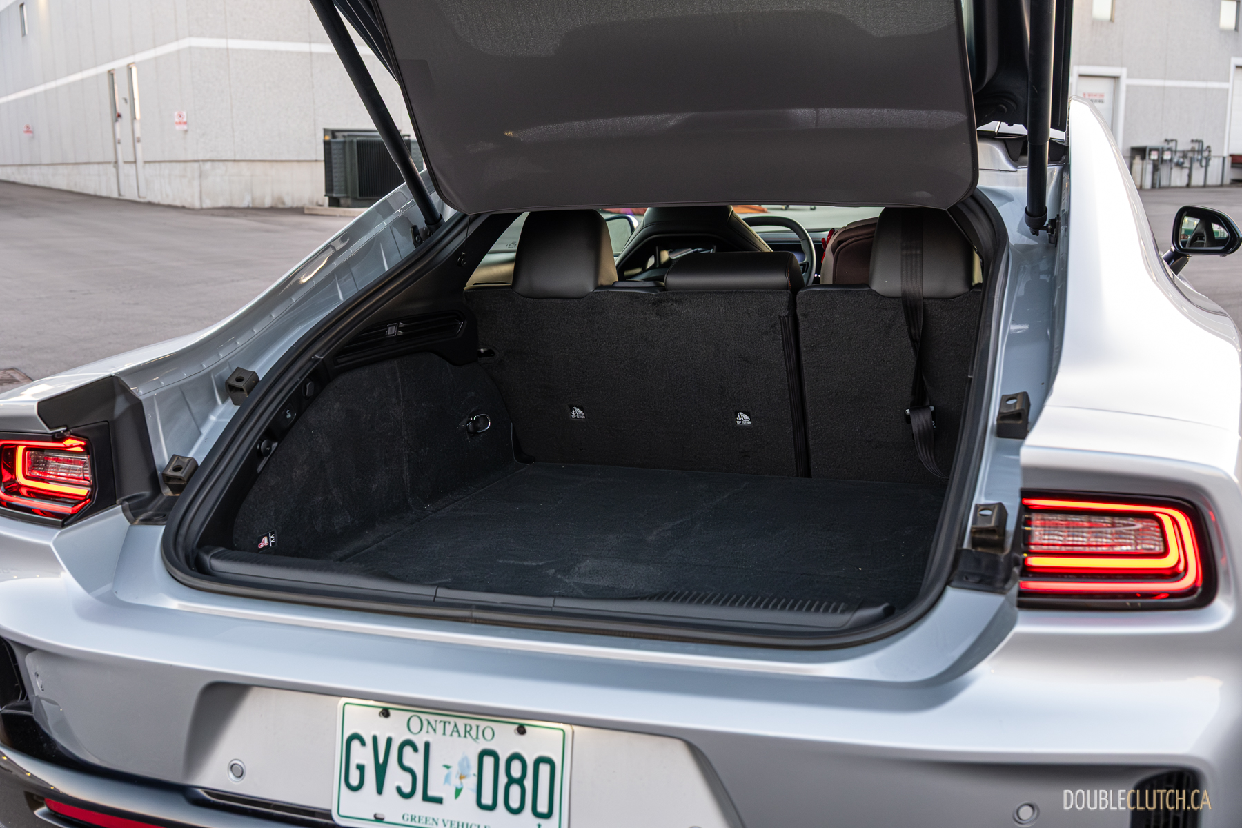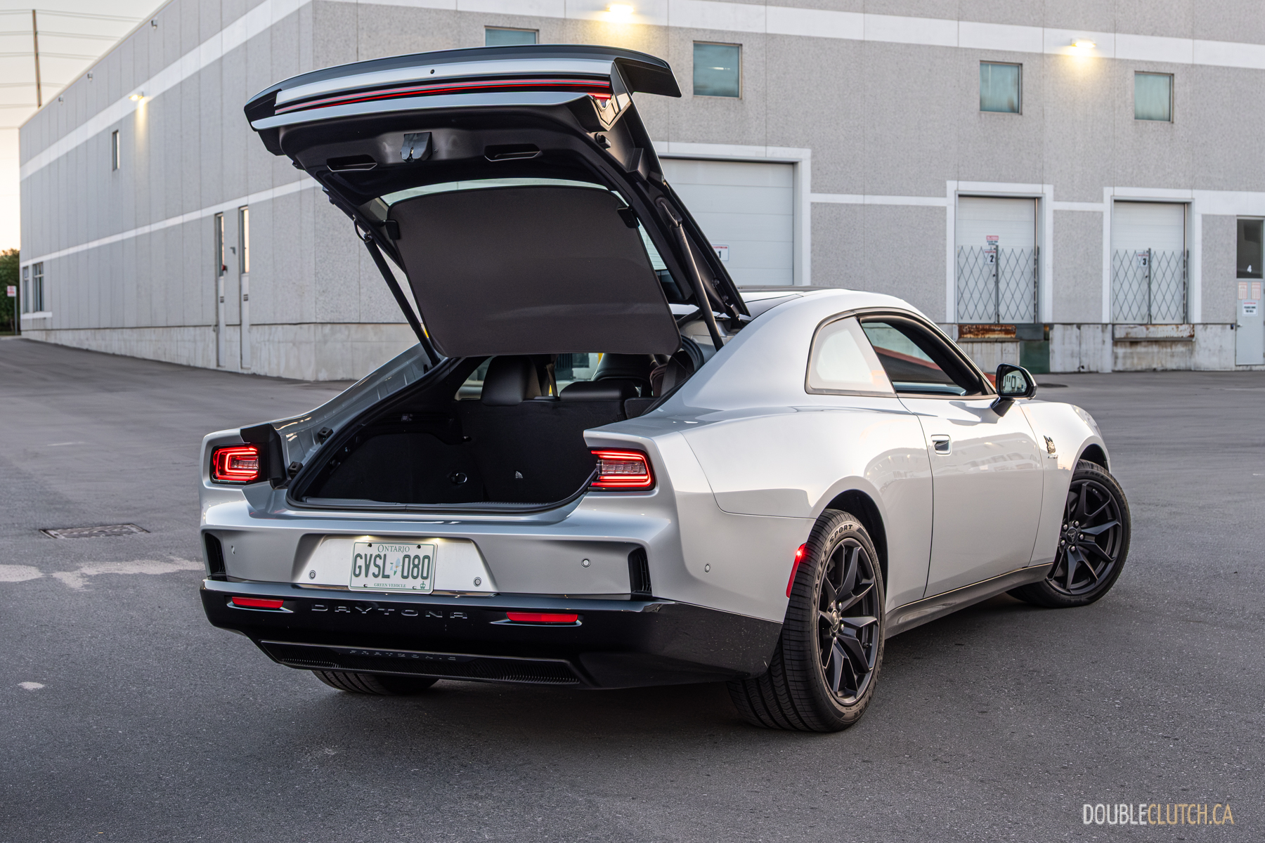 The Charger Daytona Scat Pack turns heads. It’s a rather masterful execution of a modern day Charger, not straying too far from its roots but coming off clean and futuristic all the same. The front end features a long hood, a rectangular headlight design with a clean DRL LED outline. The back end is unmistakably Dodge, with a similar rectangular illuminated light signature. The sportback design means there’s plenty of trunk space, which is somewhat compromised by the high floor. The 20” wheels manage to look small on such a large car, but the 305 and 325 width tires are certainly chunky. The overall look is a home run, with lots of compliments coming its way during my time with it.