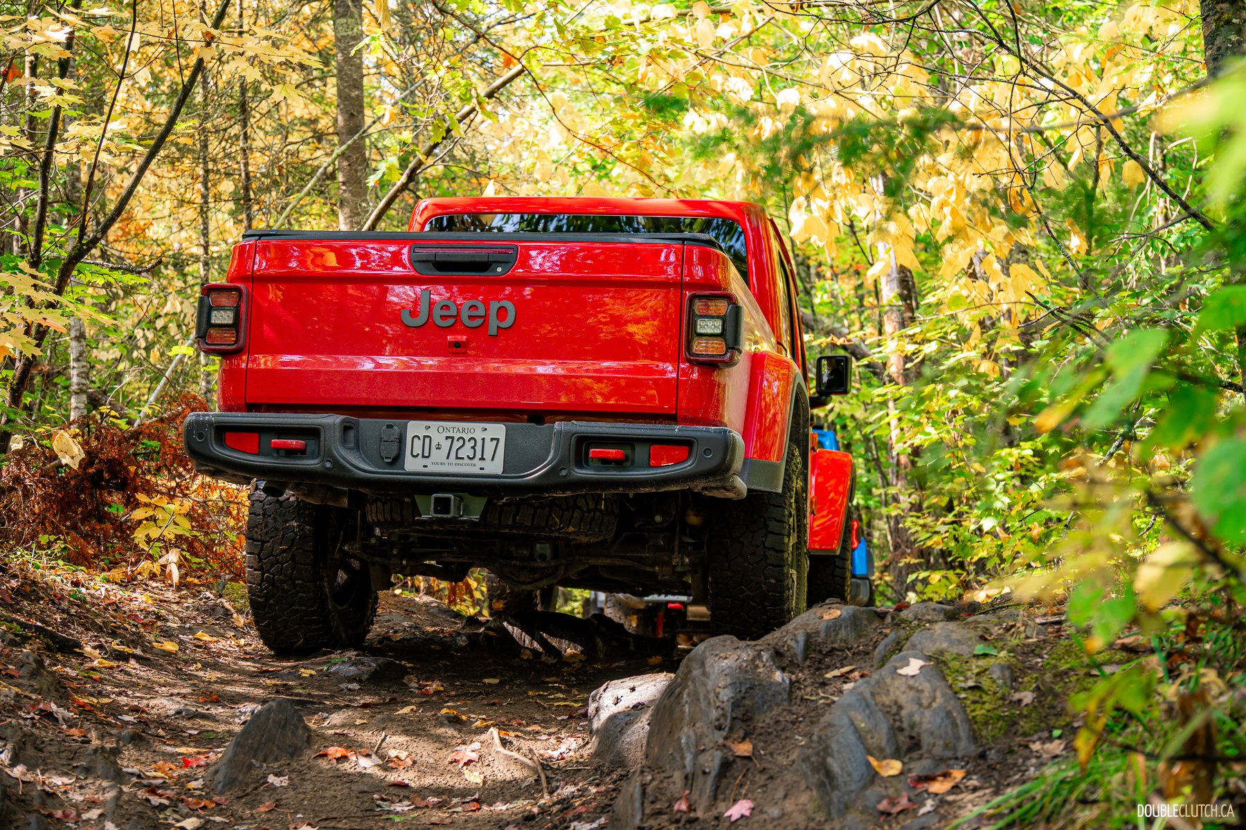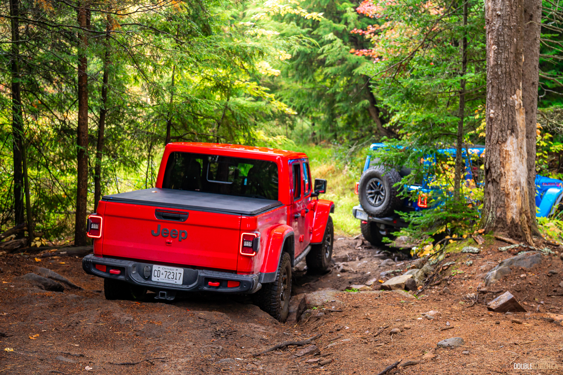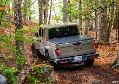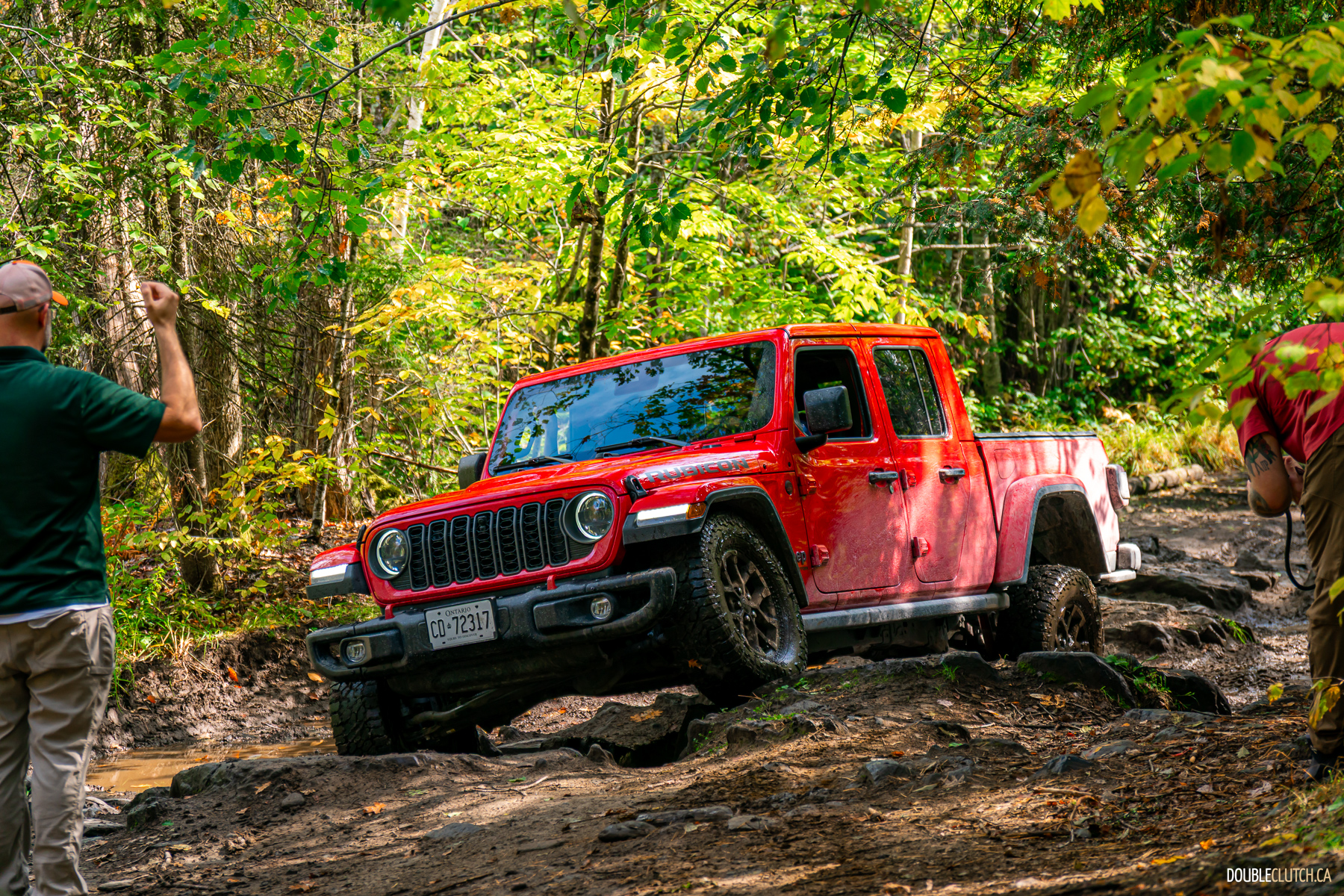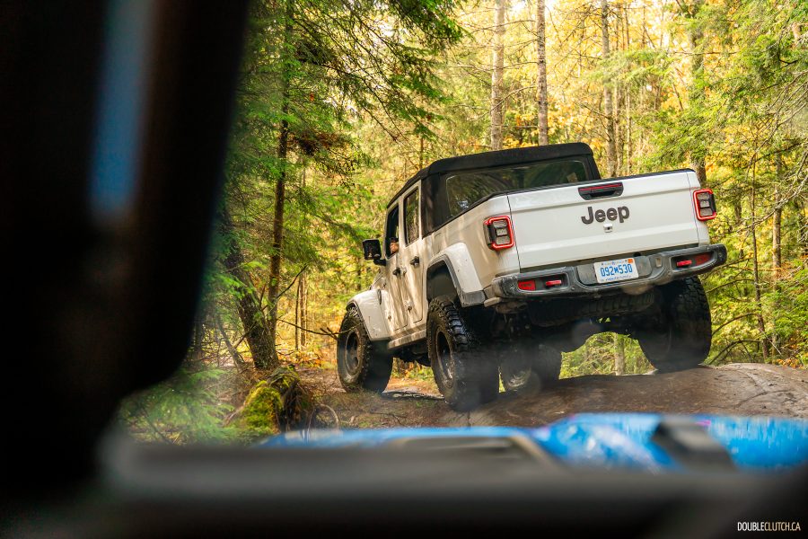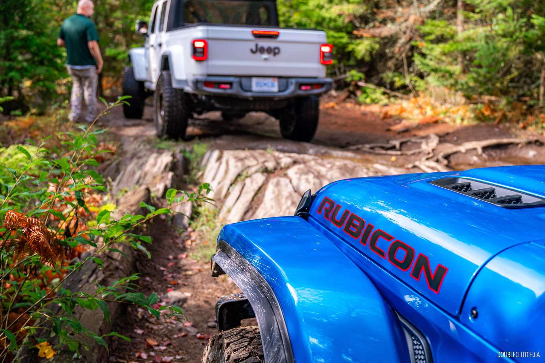 The long wheelbase Gladiators were riding on their protective barriers all day, and even the four-door Wrangler Rubicon that I was piloting made more than a few sickening crunches as it crawled over the abutments of the Canadian shield. No one from Jeep seemed to care at all; this is exactly what these things were made to do.