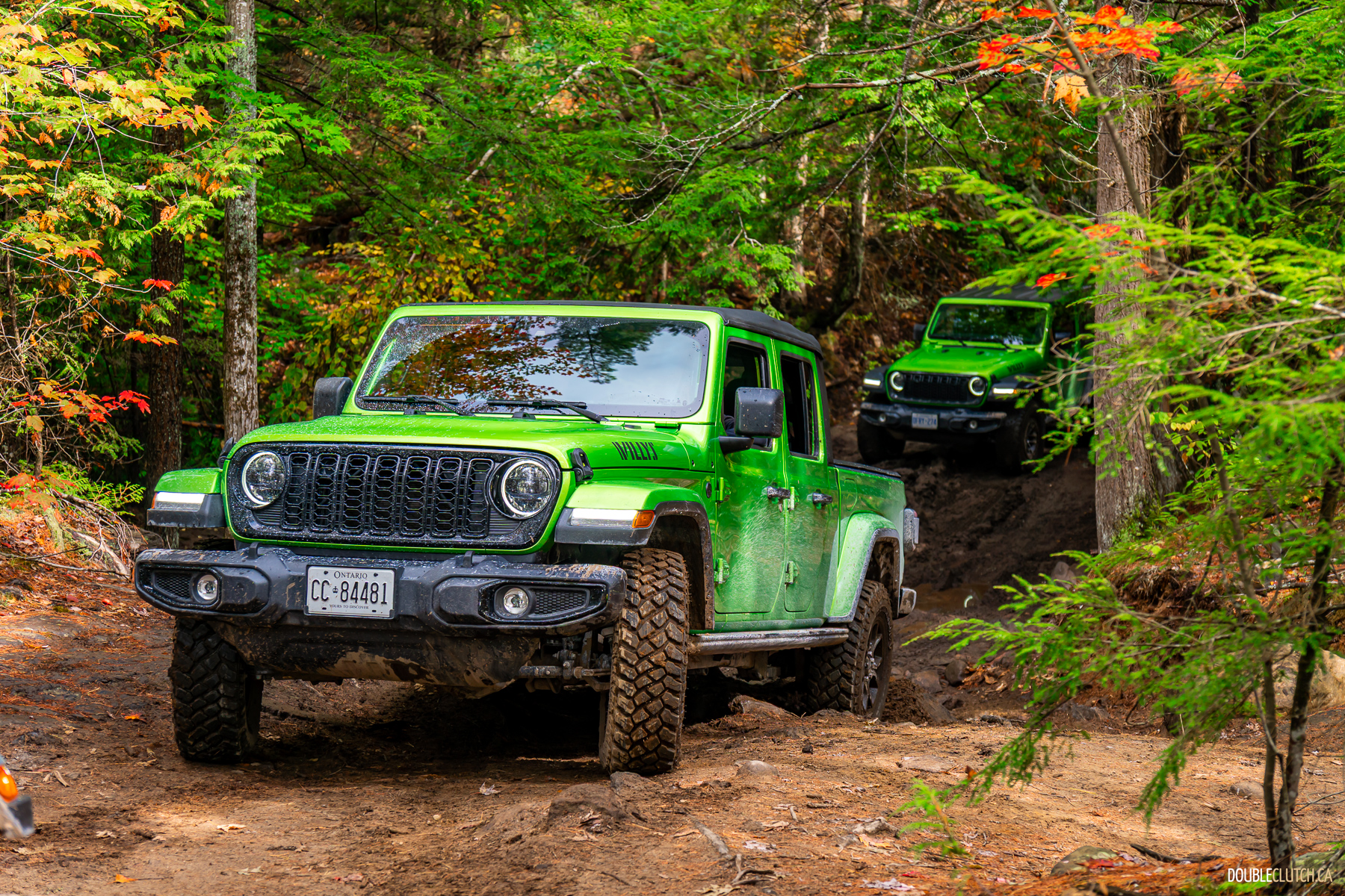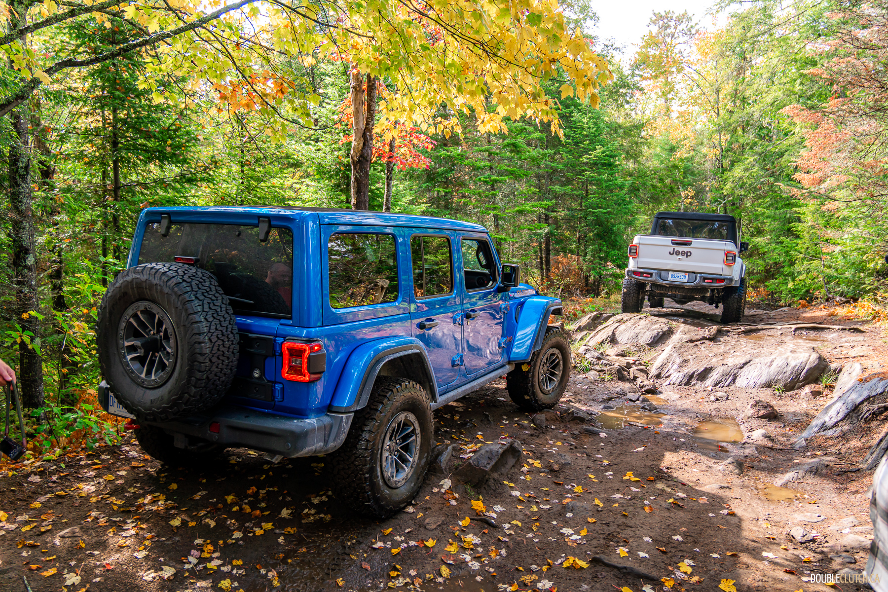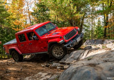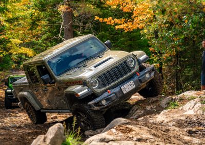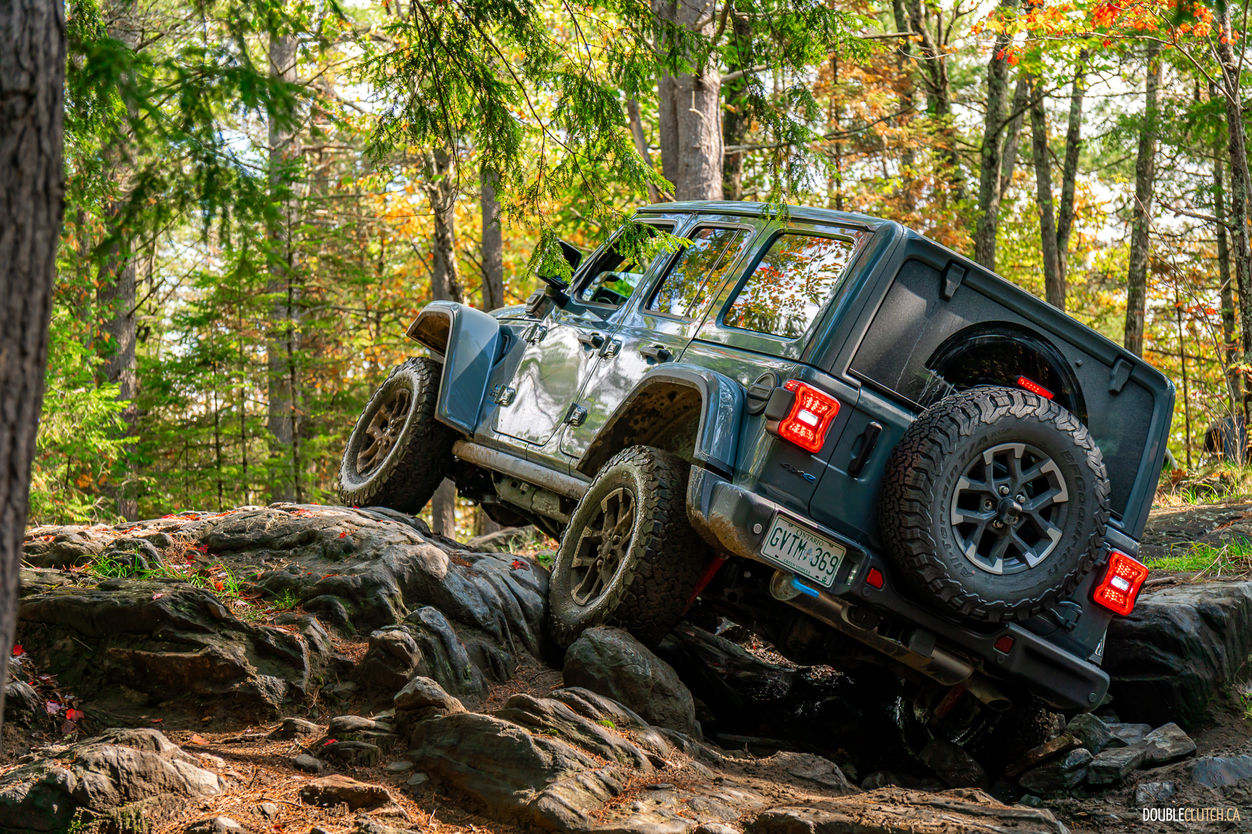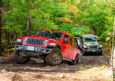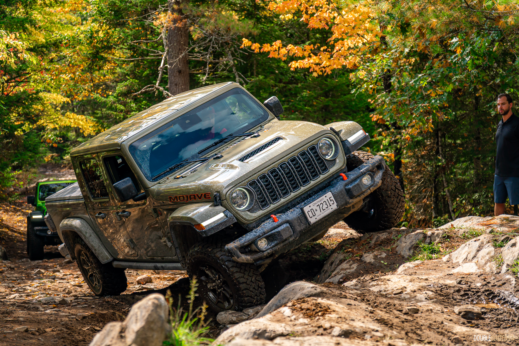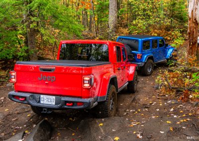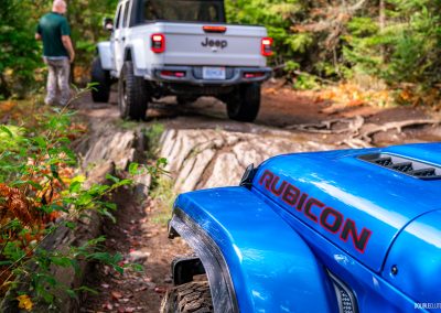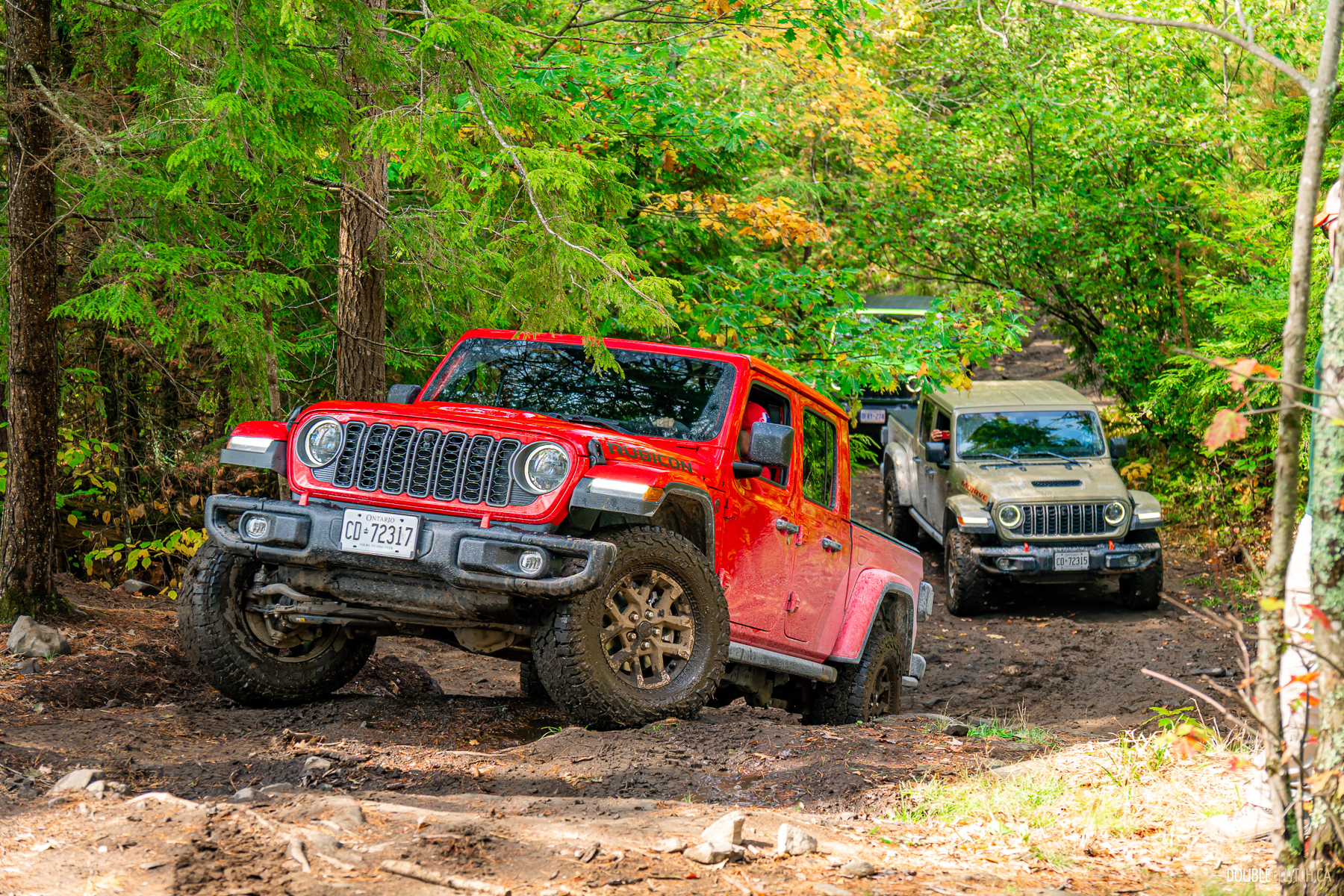 The long wheelbase Gladiators were riding on their protective barriers all day, and even the four-door Wrangler Rubicon that I was piloting made more than a few sickening crunches as it crawled over the abutments of the Canadian shield. No one from Jeep seemed to care at all; this is exactly what these things were made to do.