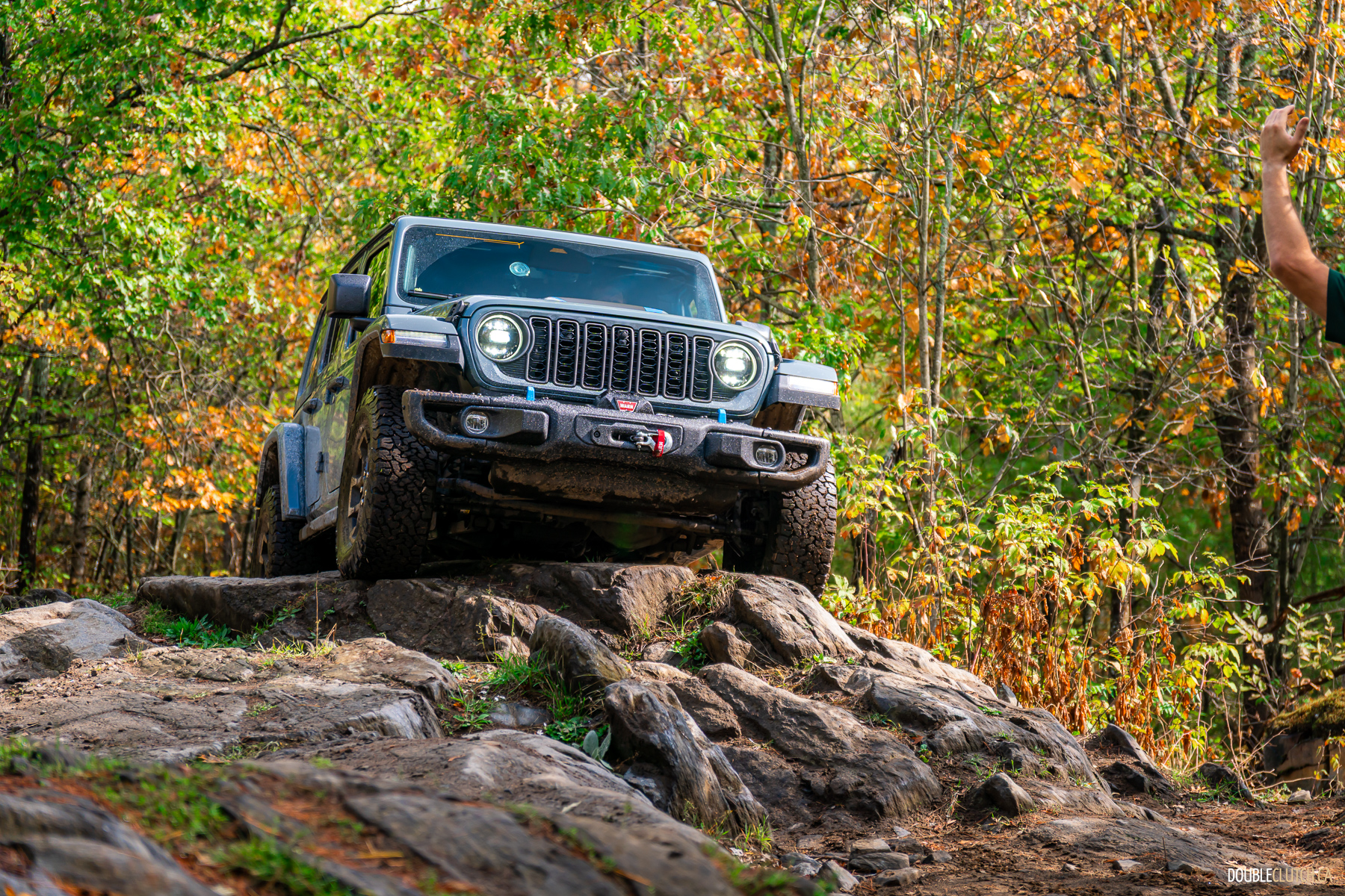 “You’re gonna hear some very expensive-sounding noises today. Don’t worry about it, that’s the skid plates and rock rails doing their job.” No kidding; that’s from Aleks Tonkovich, the director of vehicle development for the Jeep Wrangler and Gladiator. He proudly has “the coolest job in the world,” and didn’t flinch at any point watching a bunch of amateurs bash his babies on boulders. He’s done this once or twice before, I guess.