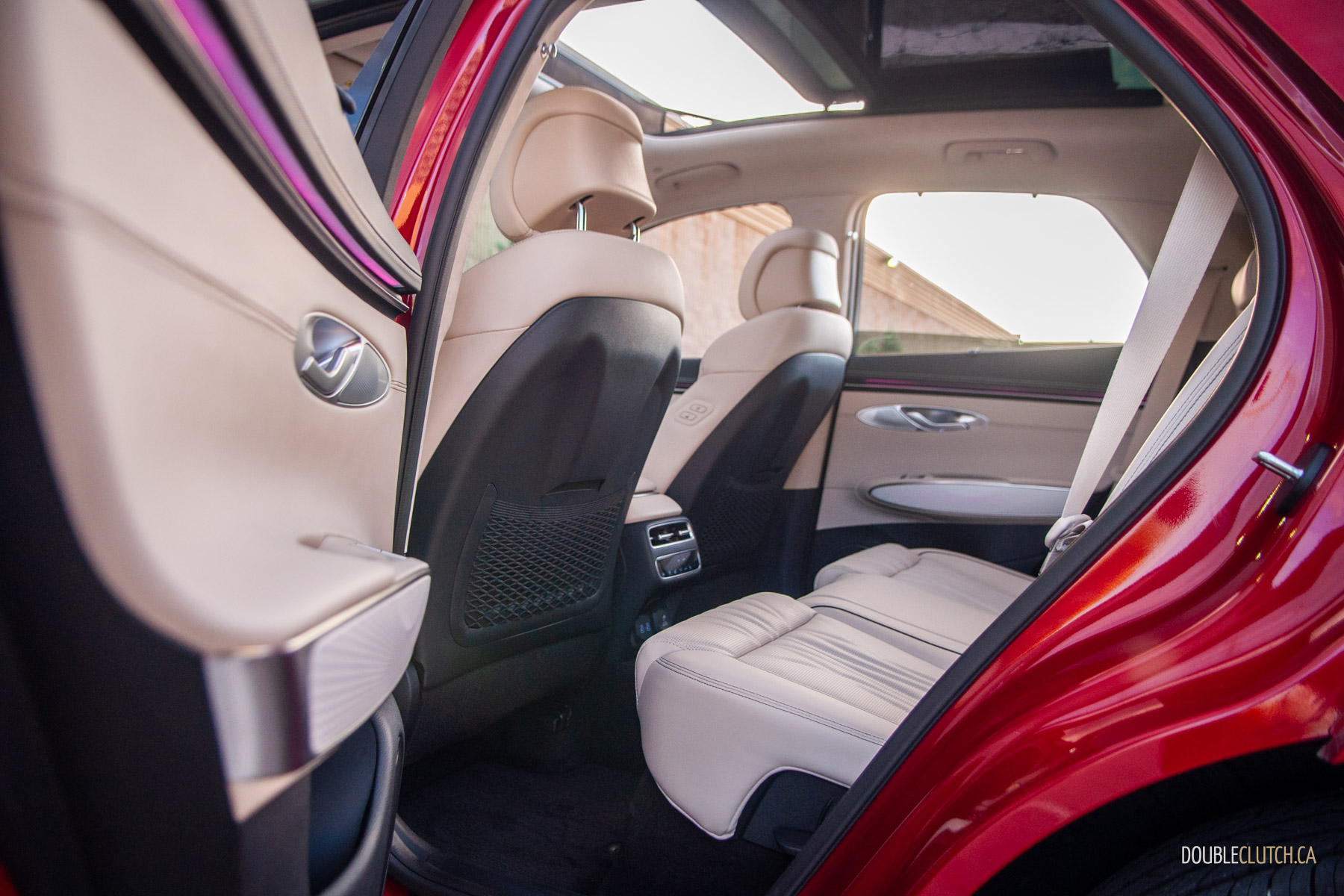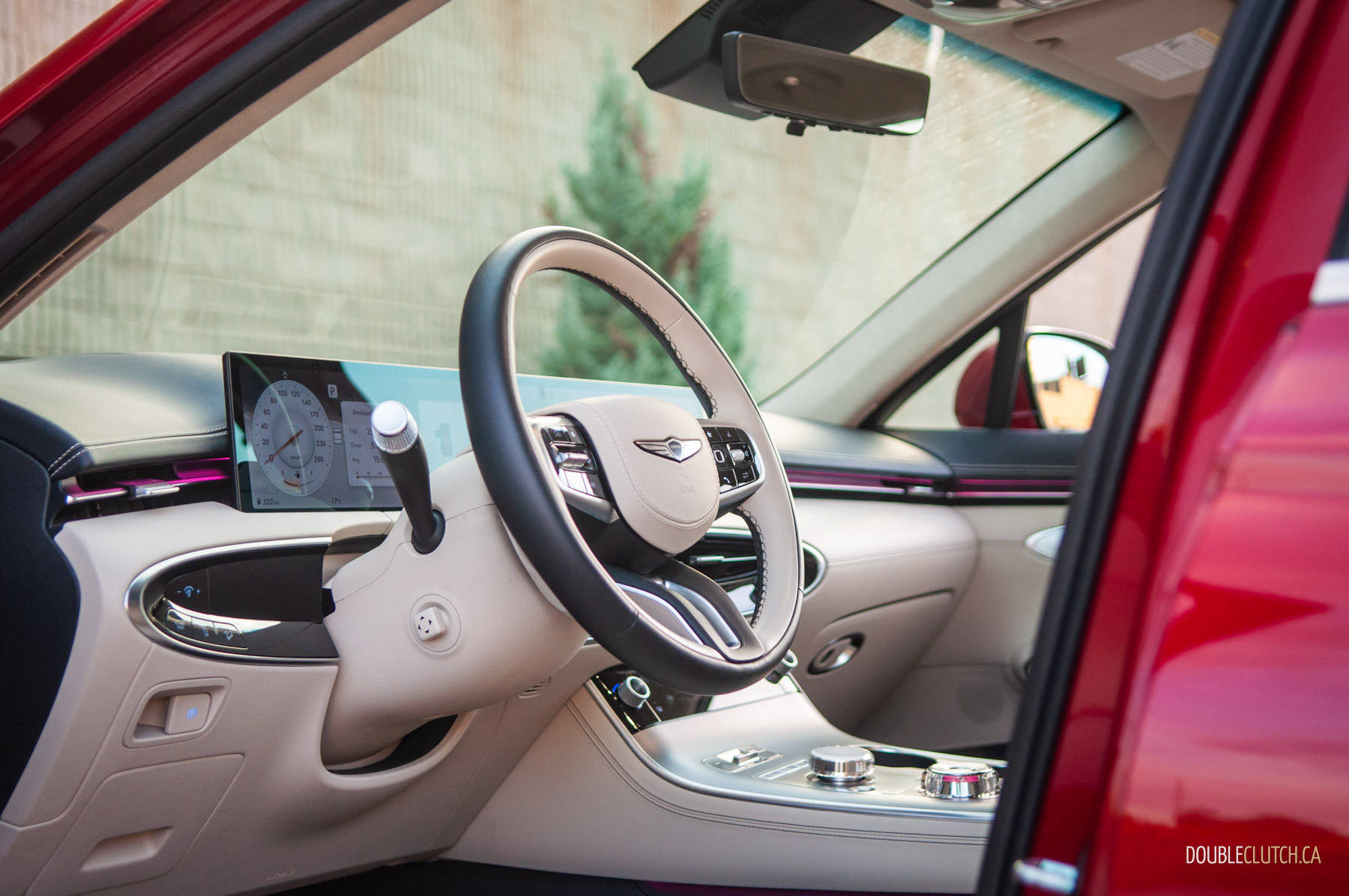 Since launch, you could choose between one of two gas powertrains. Obviously the one that gets the blood pumping is the range-topping GV70 Sport Plus and its 375-horsepower twin-turbo V6, but this one has the base 2.5-litre turbo-four under the hood. That’d normally be a letdown, but it isn’t. With 300 hp and 311 lb-ft of torque on tap through an eight-speed automatic and all-wheel-drive, it feels surprisingly smooth, refined, and punchy. Genesis says they’ve made some suspension and chassis tweaks—namely new hydraulic bushings and the adaptive suspension now uses the car’s nav data and cameras to anticipate bumps and imperfections—but we’ll need a track day with the Sport Plus, the upcoming Magma, and a previous-model-year Sport Plus to really suss out those differences.