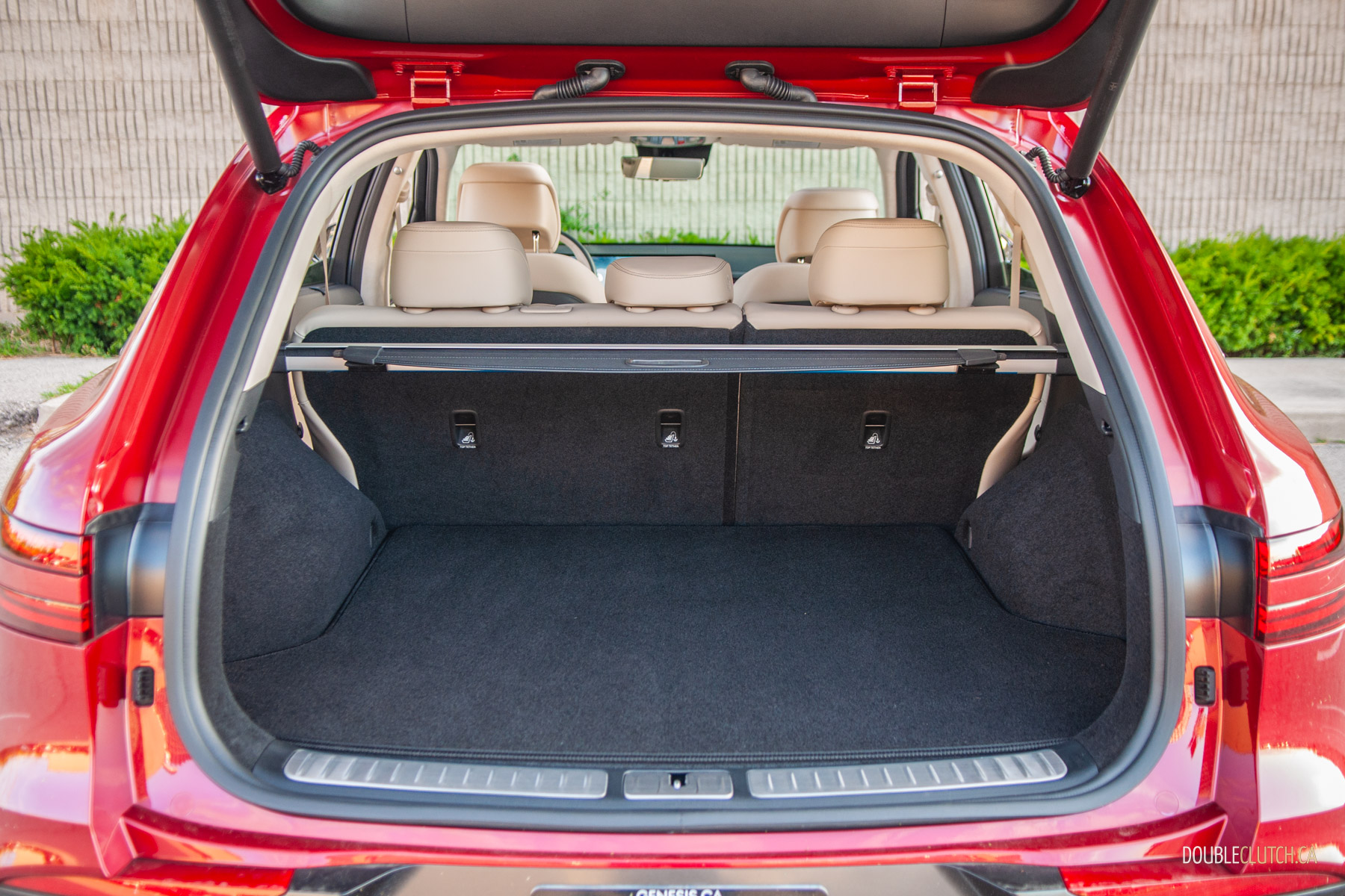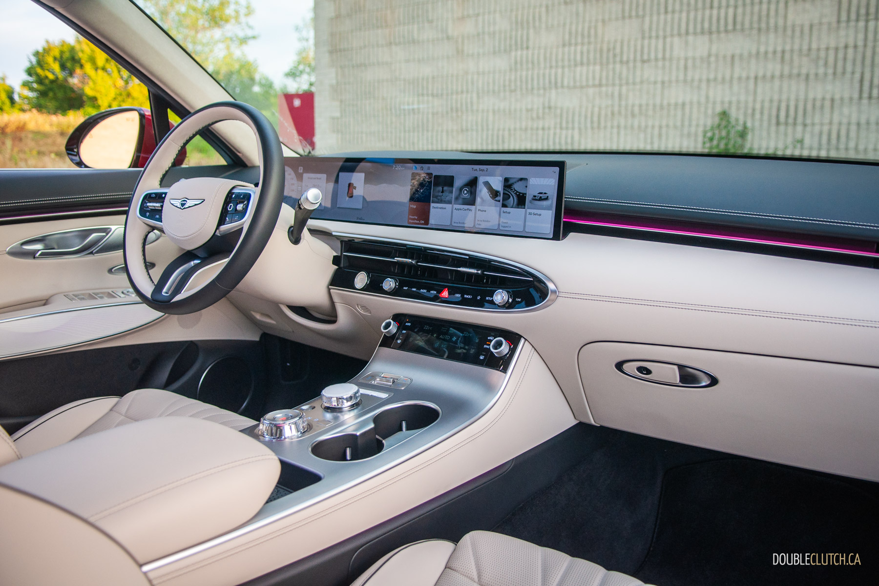 You probably won’t pick up the revised front and rear fascias right away, unless you’re parked next to a 2025 model at Whole Foods. The front fascia takes cues from the recently updated GV80, with a similar grille design and headlight treatment. A strip of chrome trim runs across the lower portion of the front bumper, flowing nicely into the side profile, which remains largely unchanged. That’s a very good thing; the swooping silhouette and flowing lines play into the coupe-ish motif without impinging on headroom and cargo space, and the C-pillar still gives us shades of Porsche 928. The updated rear end is equally subtle, with the only noteworthy change being the lower bumper and concealed exhaust-tip treatment. The base Advanced and top-trim Sport models roll on new wheel designs; our tester’s handsome-looking 20s are a carryover from last year.