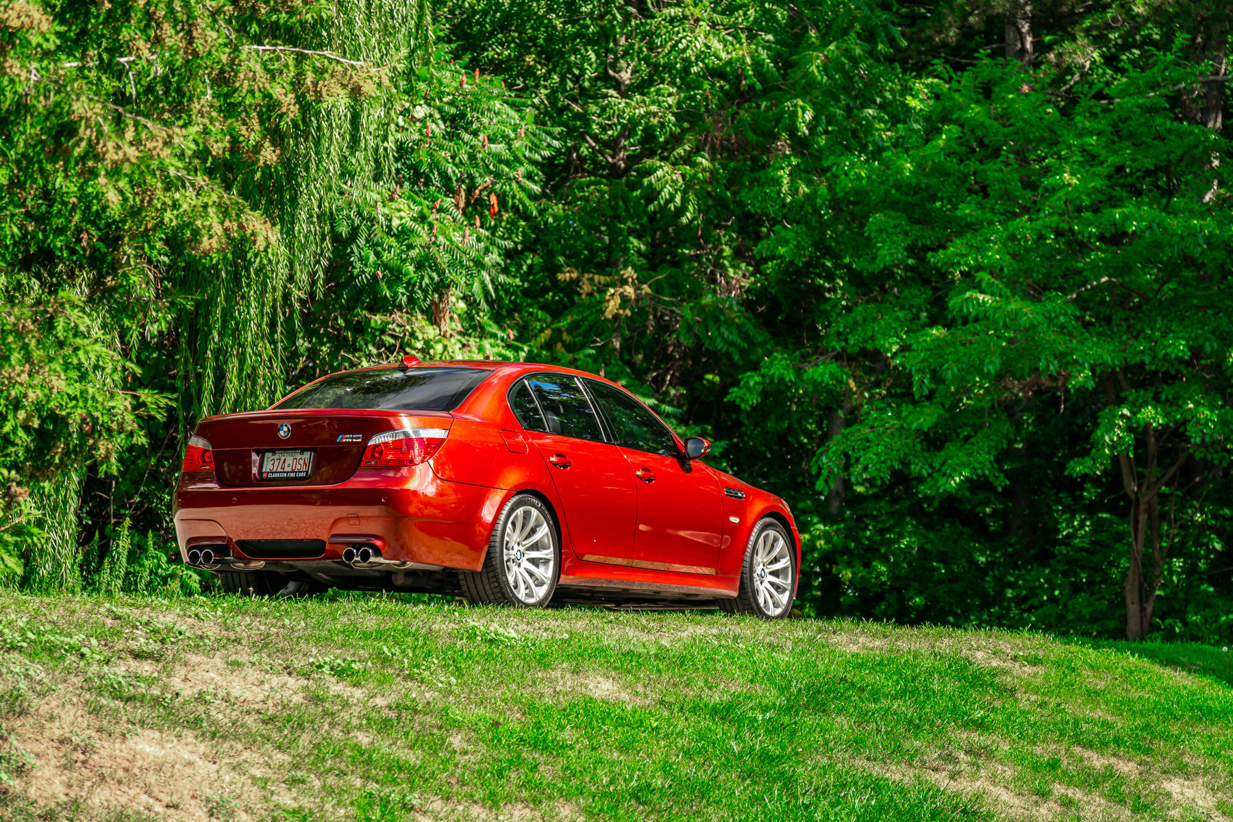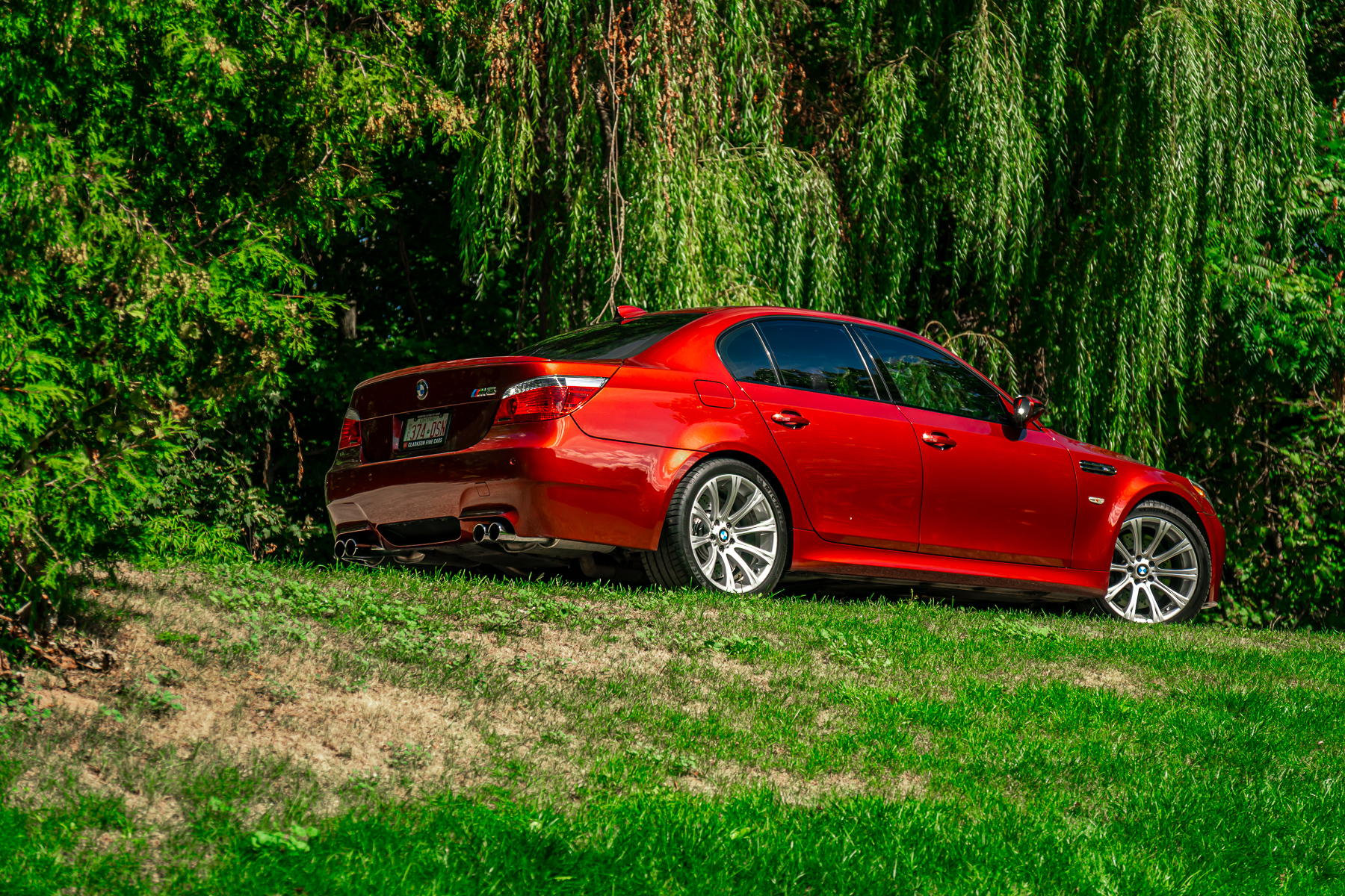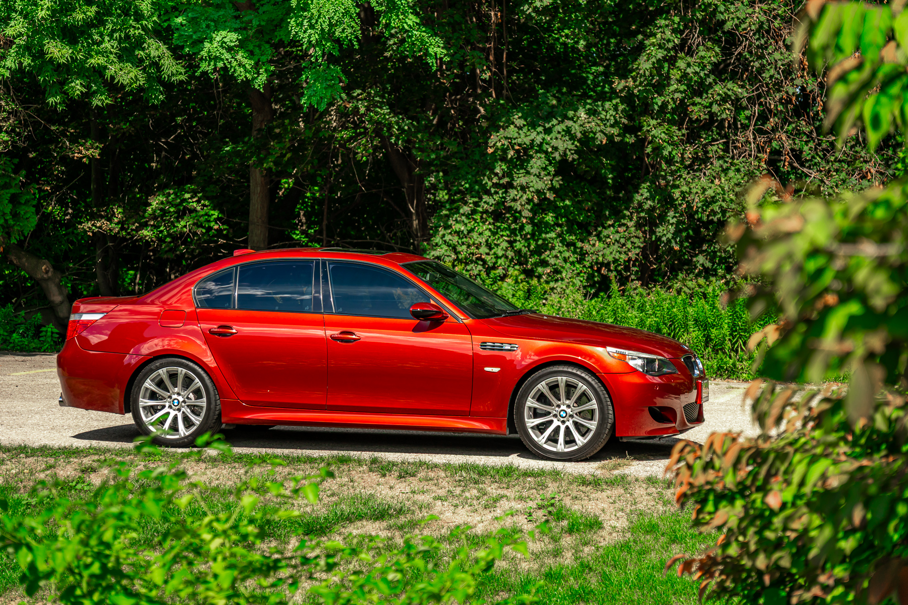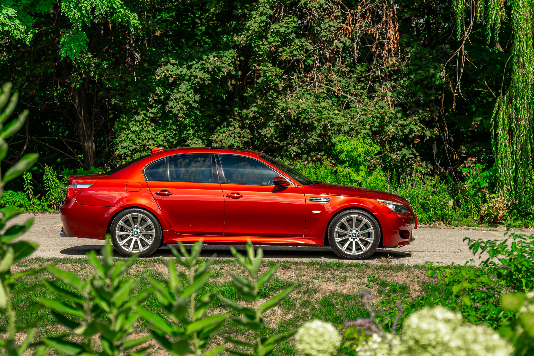 I am flying down a back road. The tachometer rises to soaring heights, six, seven, eight thousand rpms, ten cylinders furiously howling a siren song, before a slam-bang a click of the right shift paddle commands a robotized manual gearbox to pound into the next gear and beginning the whole thing again, sailing away into surreal speeds on a tidal wave of sinuous screams. This is not an Italian exotic, this is a used BMW sedan – specifically, a 2006 BMW E60 M5. A product of its time, a misunderstood monster with manners, the closest thing to a real supercar the brand has ever built, in all ways good and bad.