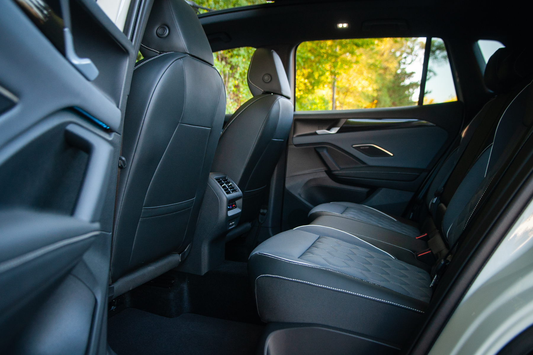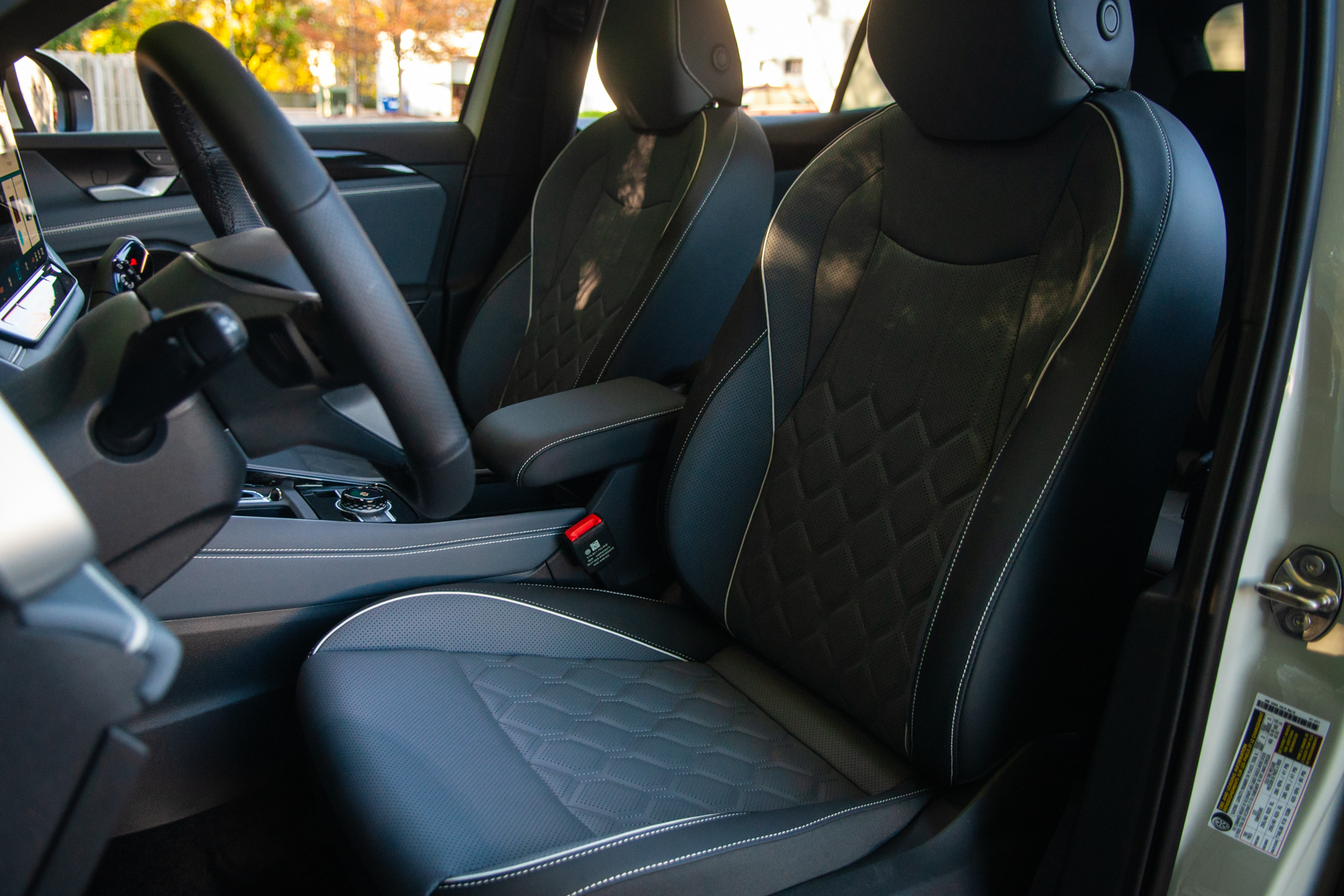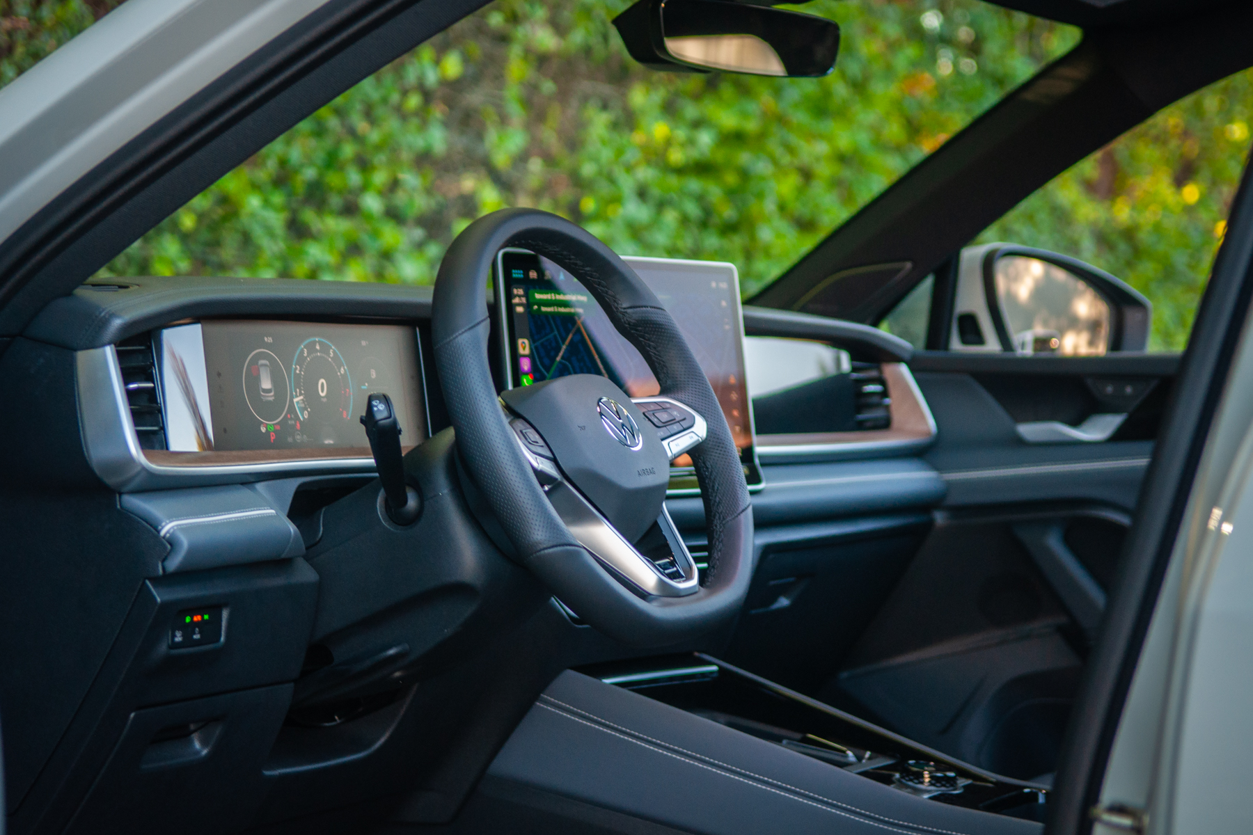 The Tiguan Turbo keeps all the updates we saw with this third-gen Tiguan. That is to say, it’s very nice. The layout is vaguely Porsche-ish, with the way the wood trim runs up the sides of the dash. Fit-and-finish feels excellent, and Volkswagen offers some classy two-tone interior colour combinations. Tech is handled by a 12.9- or 15-inch touchscreen jutting out the dash, plus a 10.25-inch digital gauge cluster.