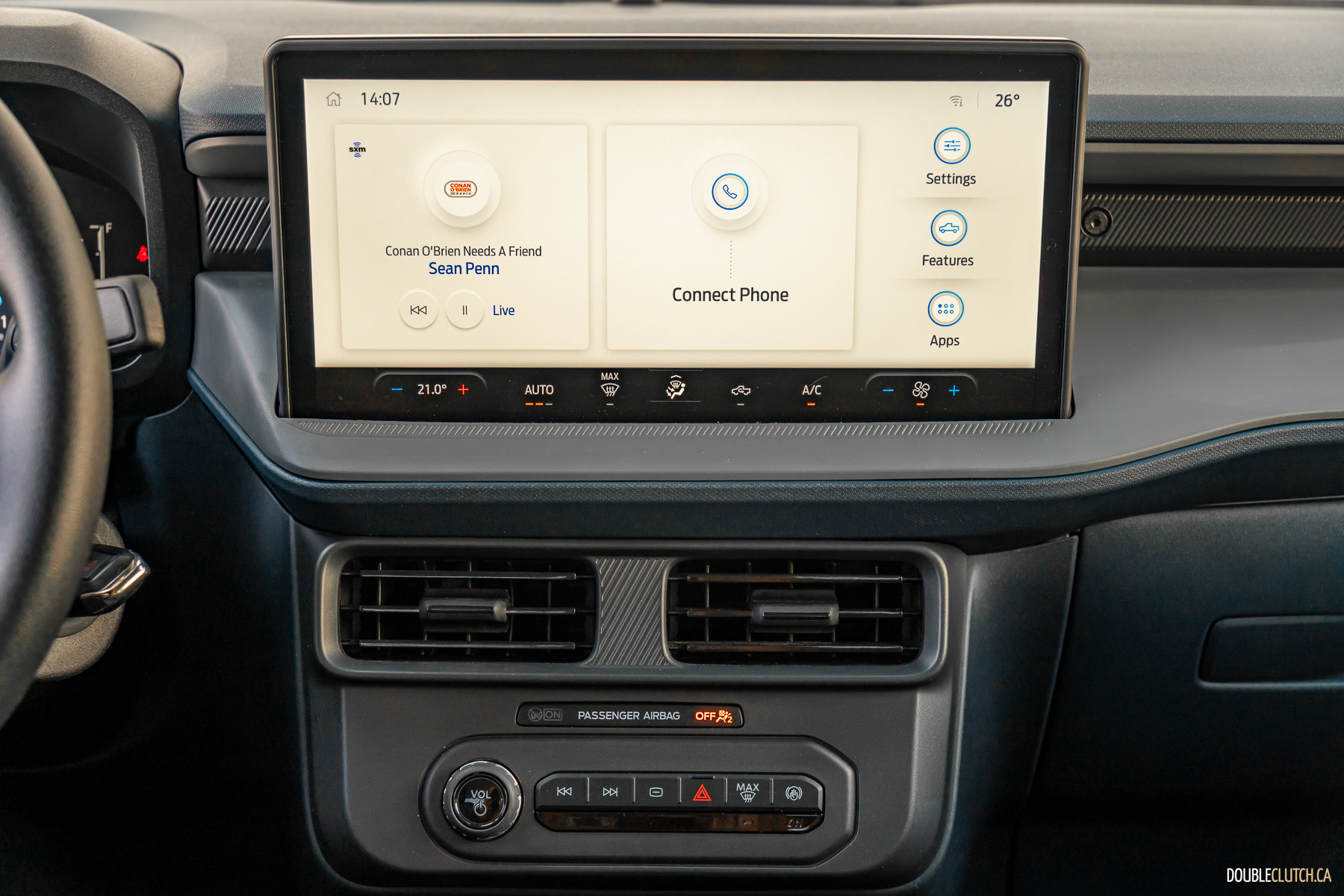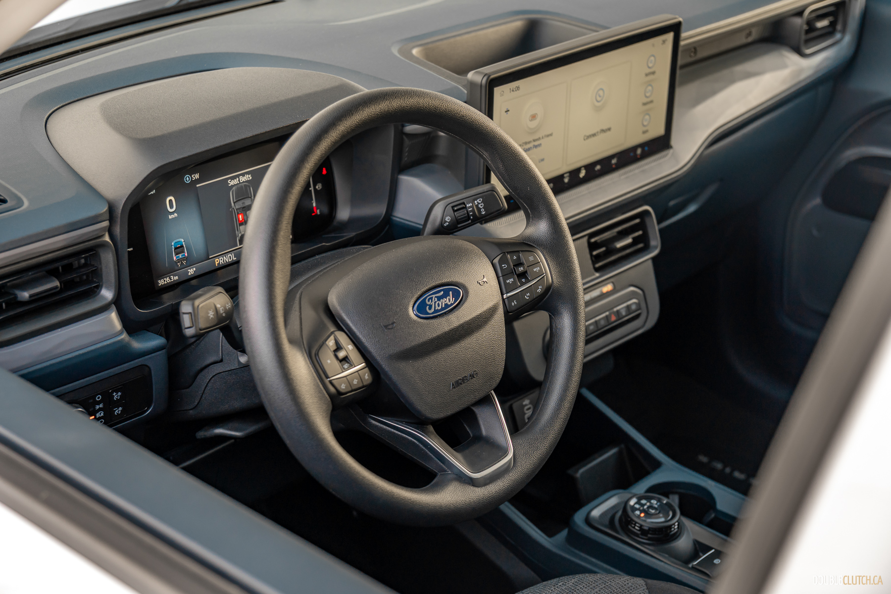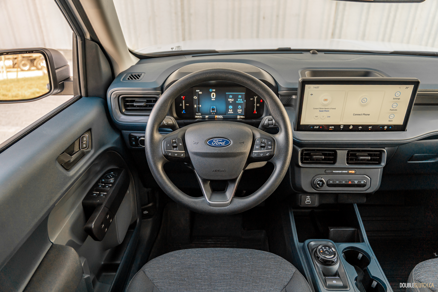 Inside, there’s a much larger infotainment screen when compared to last year’s 8-inch screen. Now at 13.2 inches, the increase is significant. The analog gauge cluster has now been replaced with an 8-inch digital cluster, with typical Ford graphics. Our 2025 Ford Maverick XL is covered in hard plastics, which is expected at this price point, as are the manual cloth seats, which are reasonably comfortable. Wireless Apple CarPlay and Android Auto have also been added as standard. I was able to connect easily and the operation was smooth. Over the week, the system worked as expected without any hiccups or delays, unlike some other, costlier vehicles I’ve tested recently.