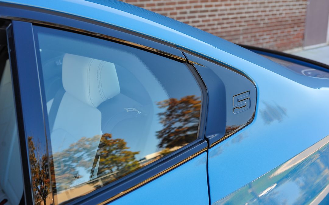 2025 BMW 540i Legacy Edition in Maldives Blue close up C-pillar