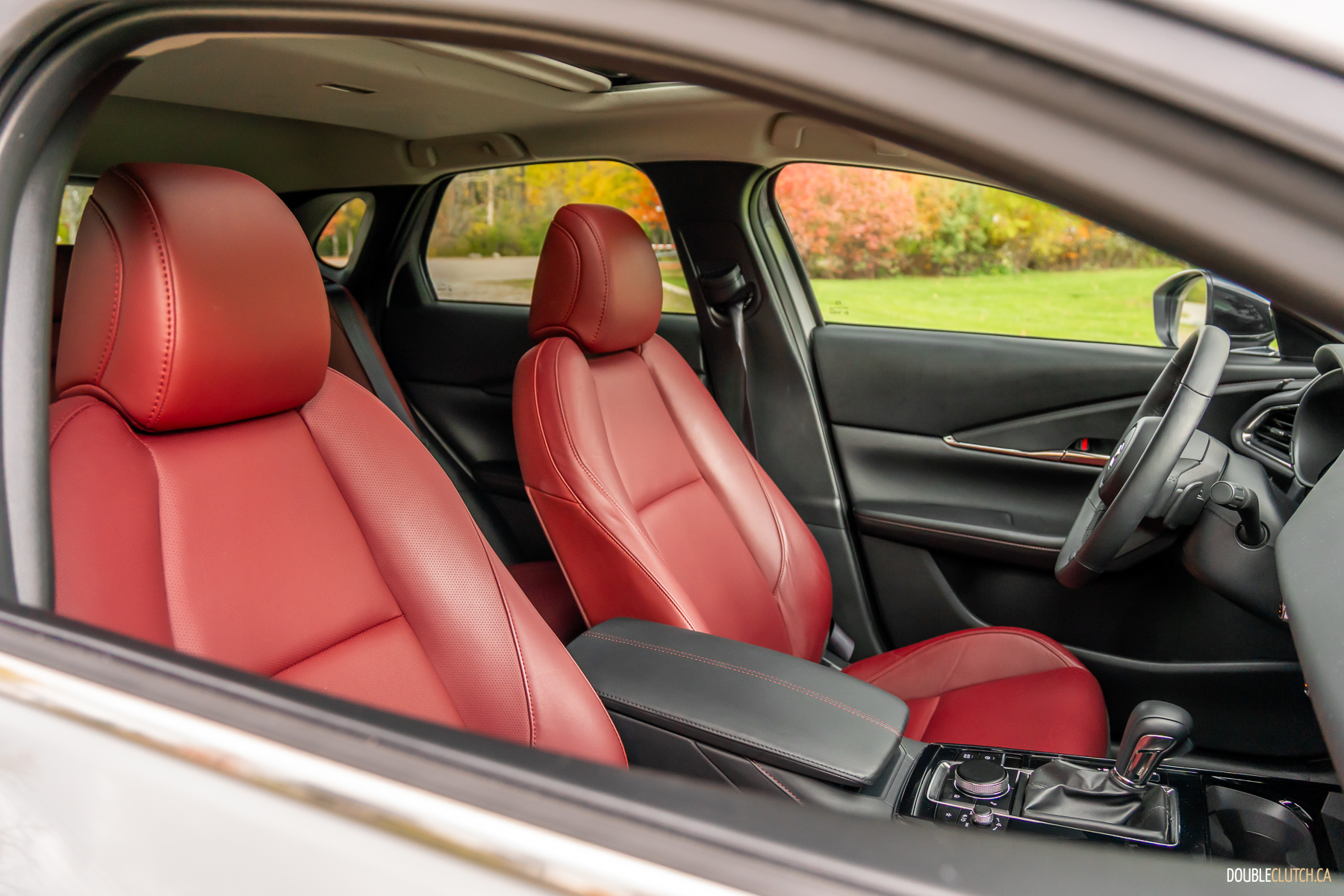 Even after almost six years of looking pretty much the same, the CX-30 still looks great. It’s easy on the eyes and some design cues, like the almost invisible swoosh along the side that plays tricks on your eyes using reflections, or the way the LED turn signals softly fade out like incadescent bulbs, are clever. Our tester is finished in Aero Grey, a new addition to the CX-30’s colour palette which we first saw on the “ND3” Miata. It pairs well with the red leather interior.