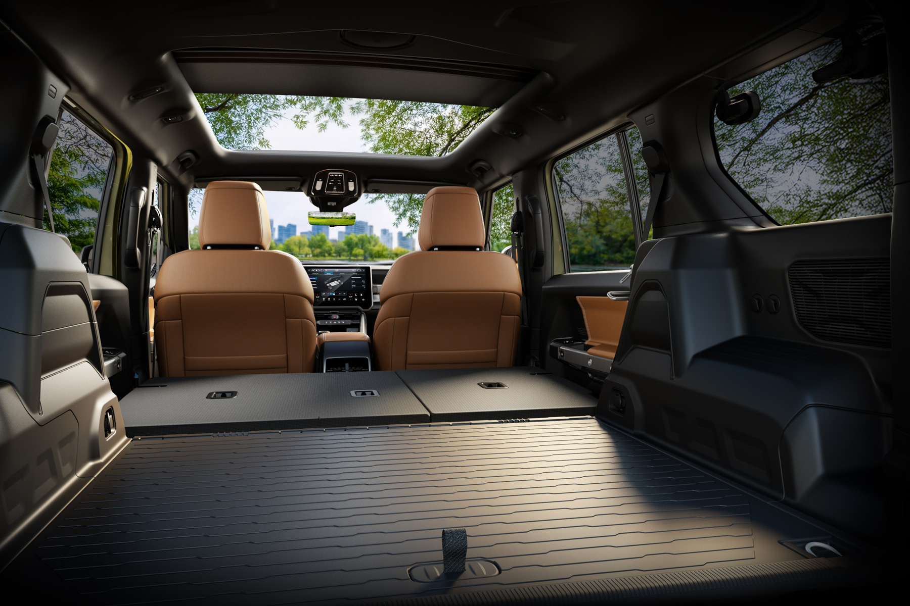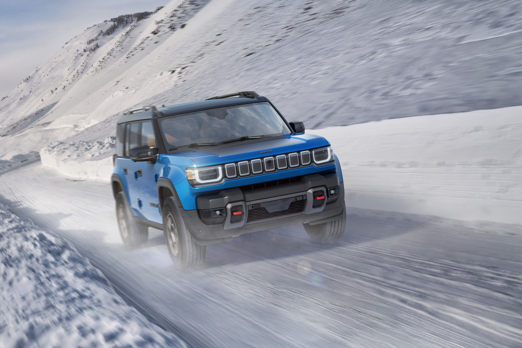 The Recon Moab takes a slight range hit — it’s rated at about 370 km — but makes up for that with enough beefed-up, off-road-ready components to make it Jeep’s first “trail-rated” EV. Among the extras are a locking electronic rear differential, larger-diameter half shafts, 33-inch all-terrain tires, different final-drive ratios for the electric motors for smoother throttle applications and more grunt off-road, and a Rock drive mode for, well, rocks.